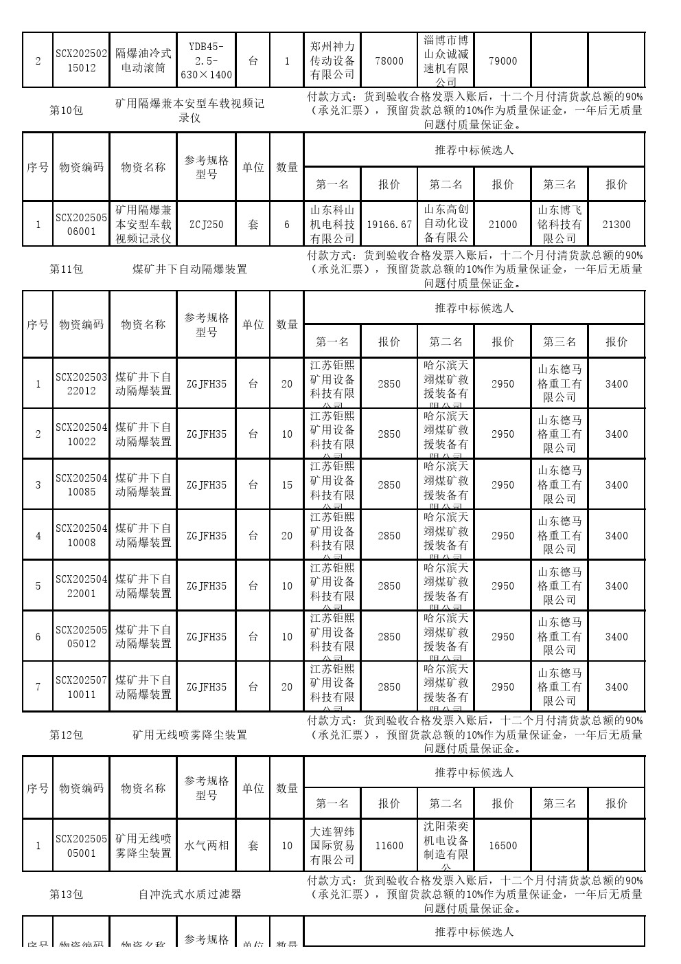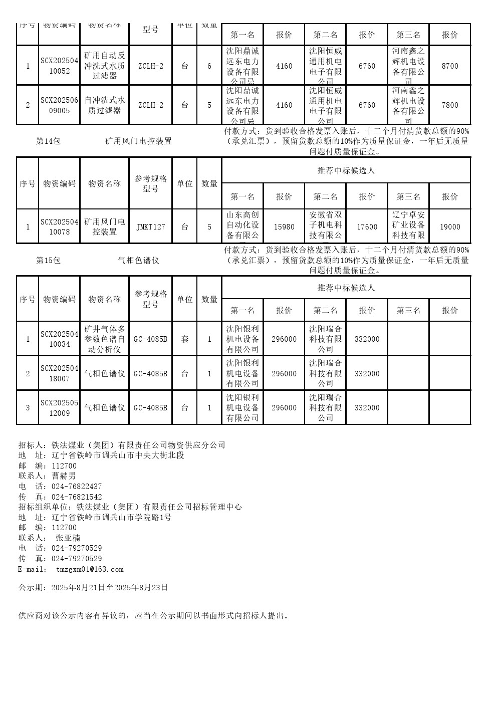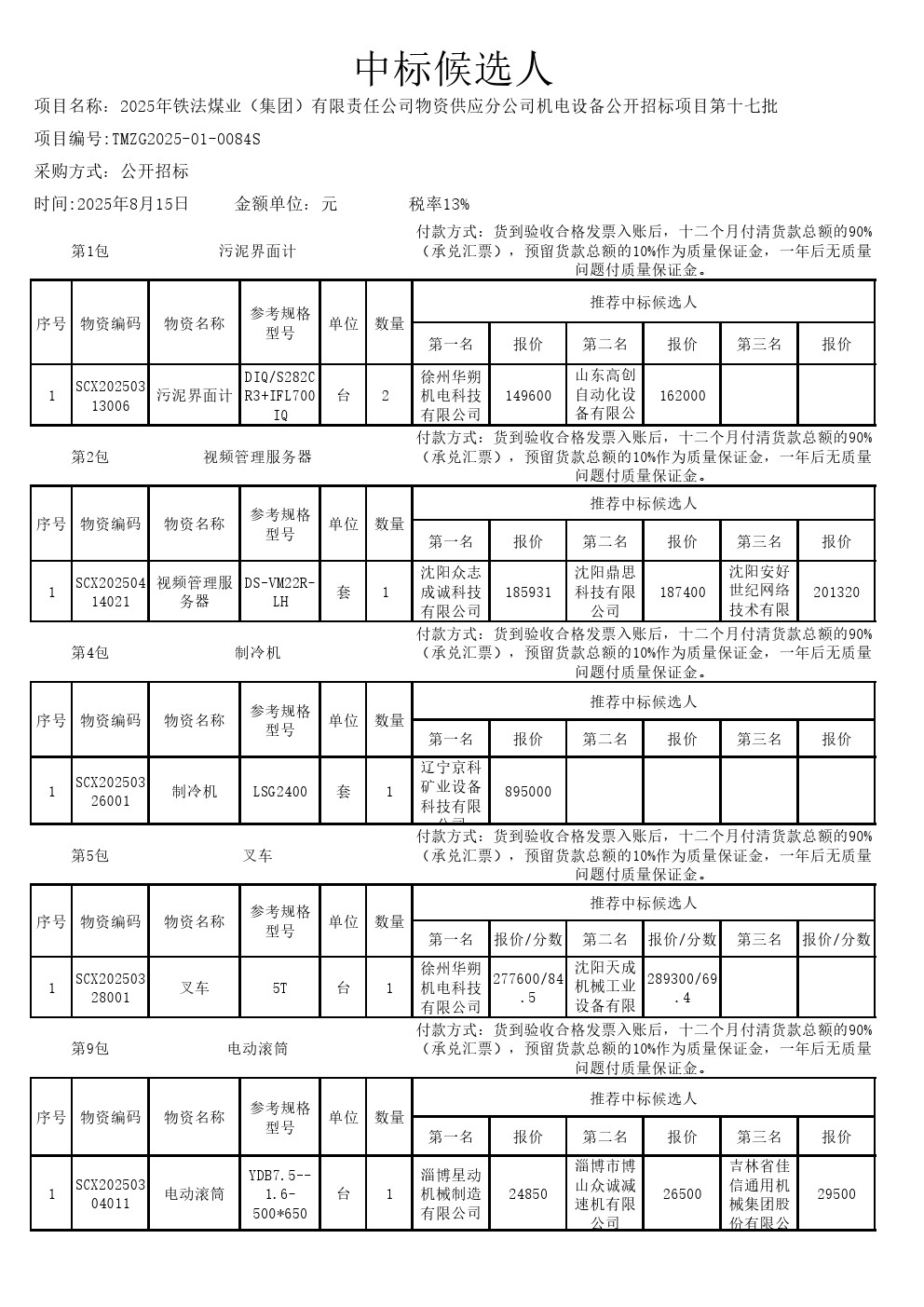 2025年8月15日机电设备公开招标中标候选人公示(0084S)