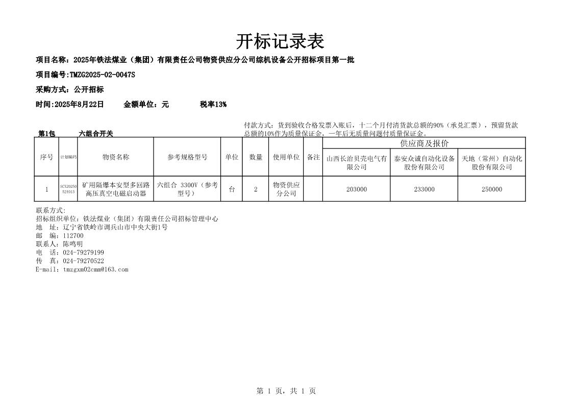 2025年8月22日综机设备公开招标开标记录表(0047S)