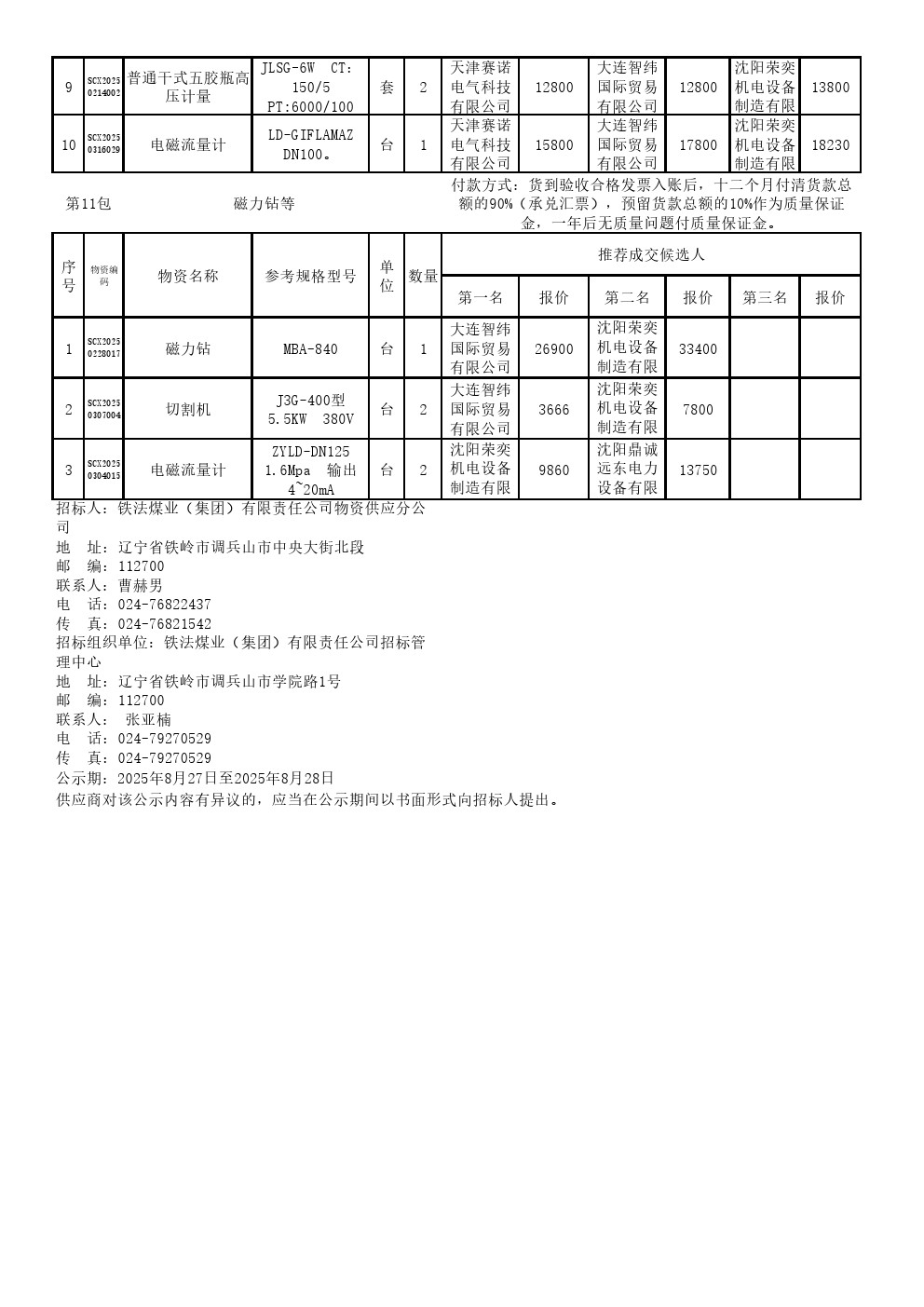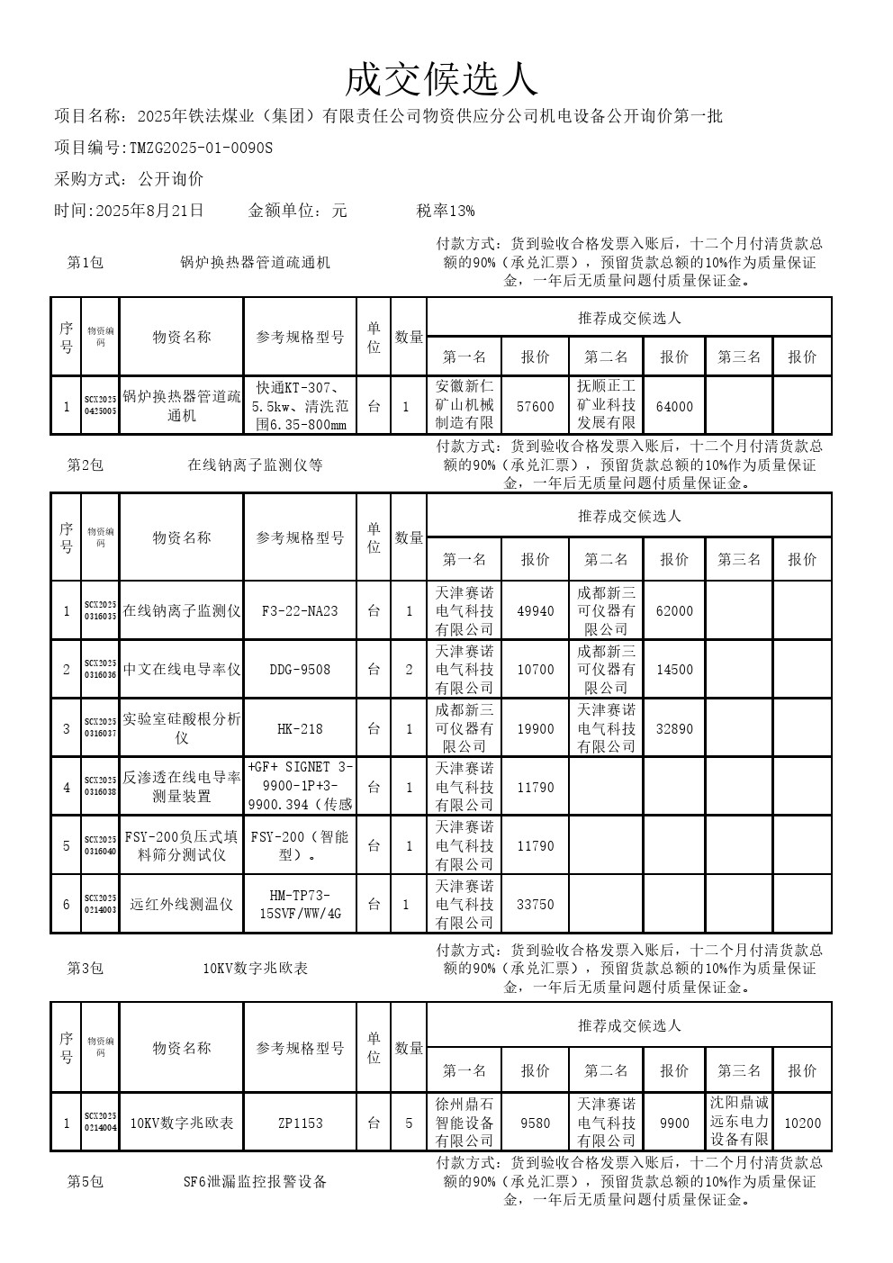 2025年8月21日机电设备公开询价成交候选人公示(0090S)