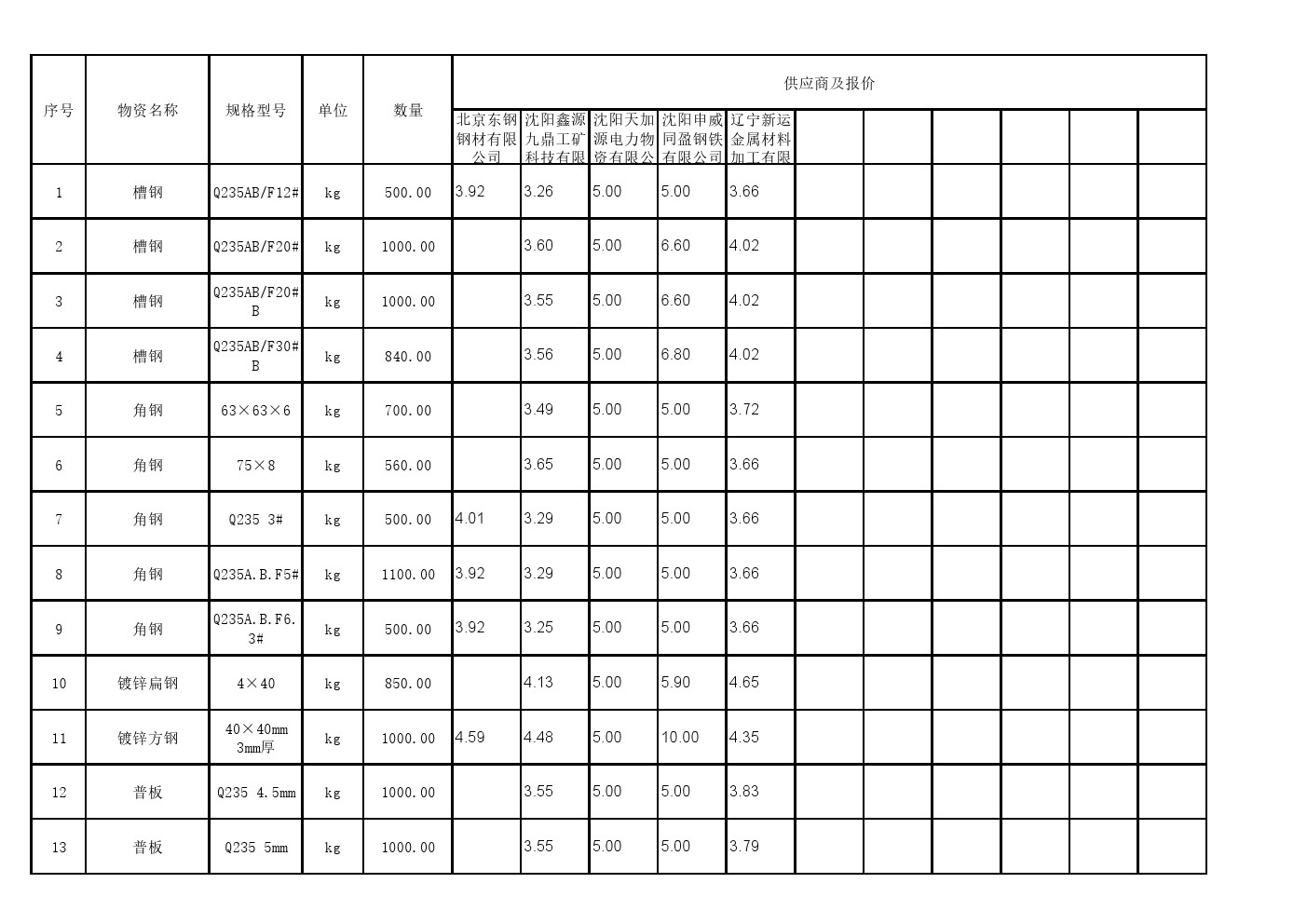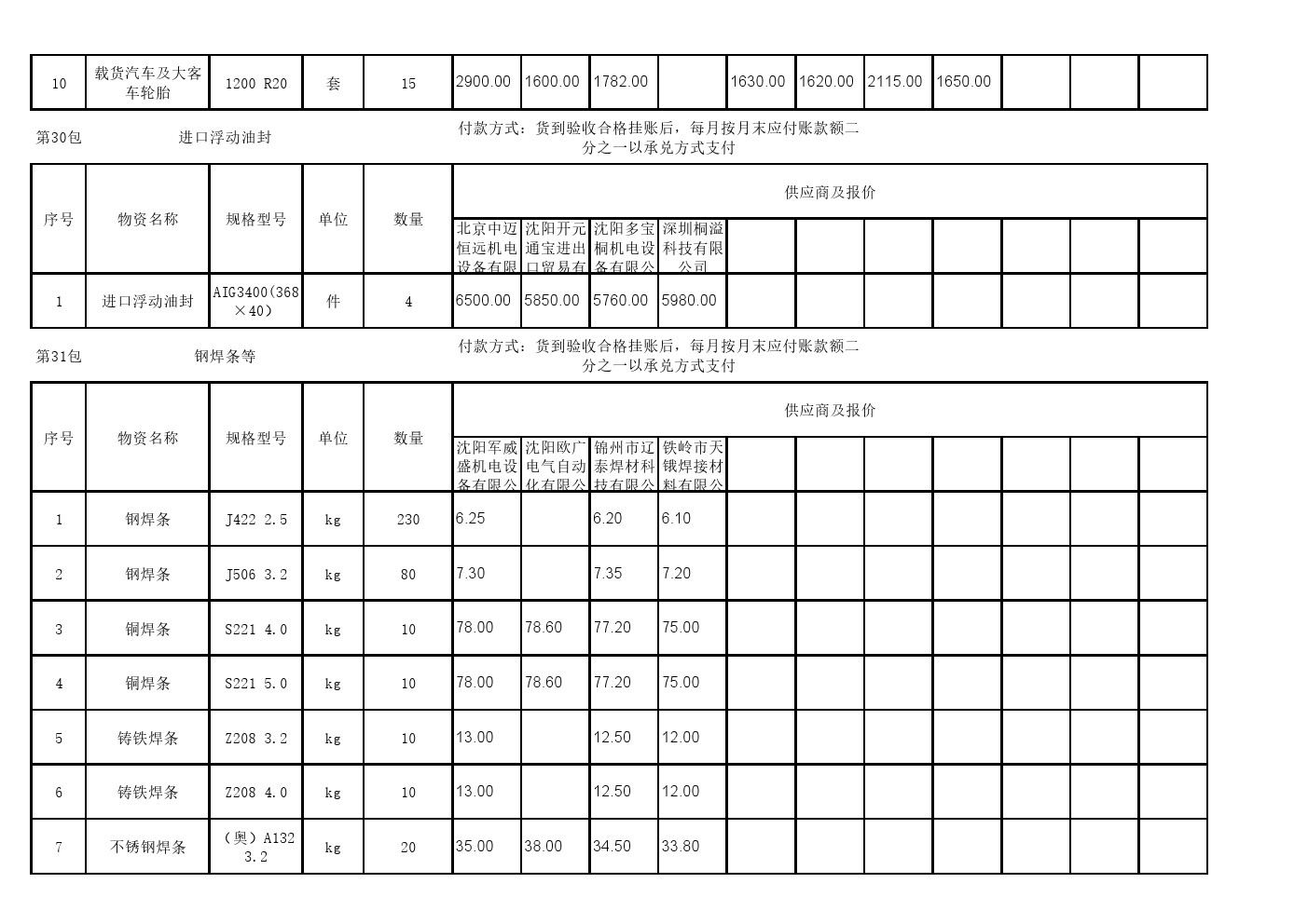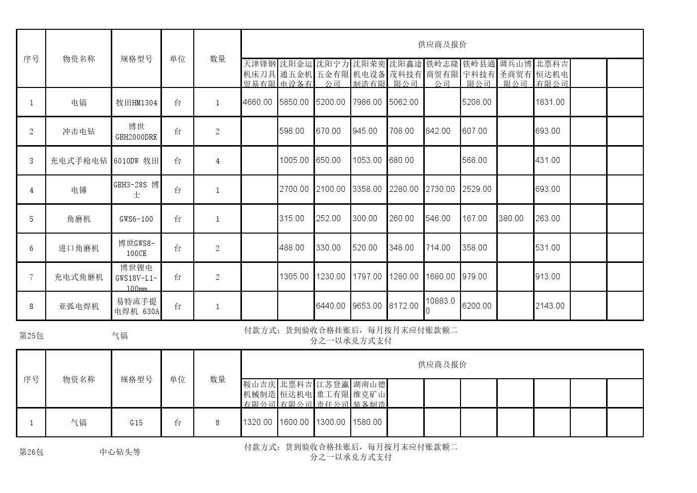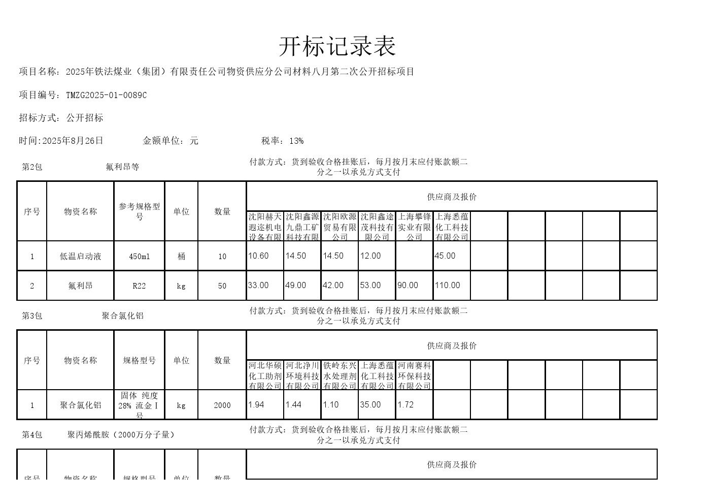 2025年8月26日材料公开招标开标记录表(0089C)