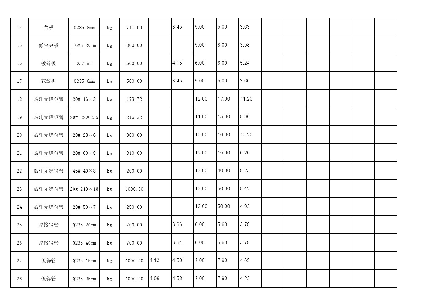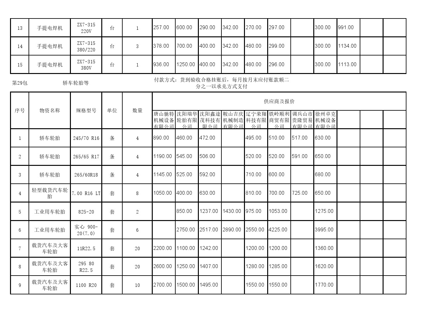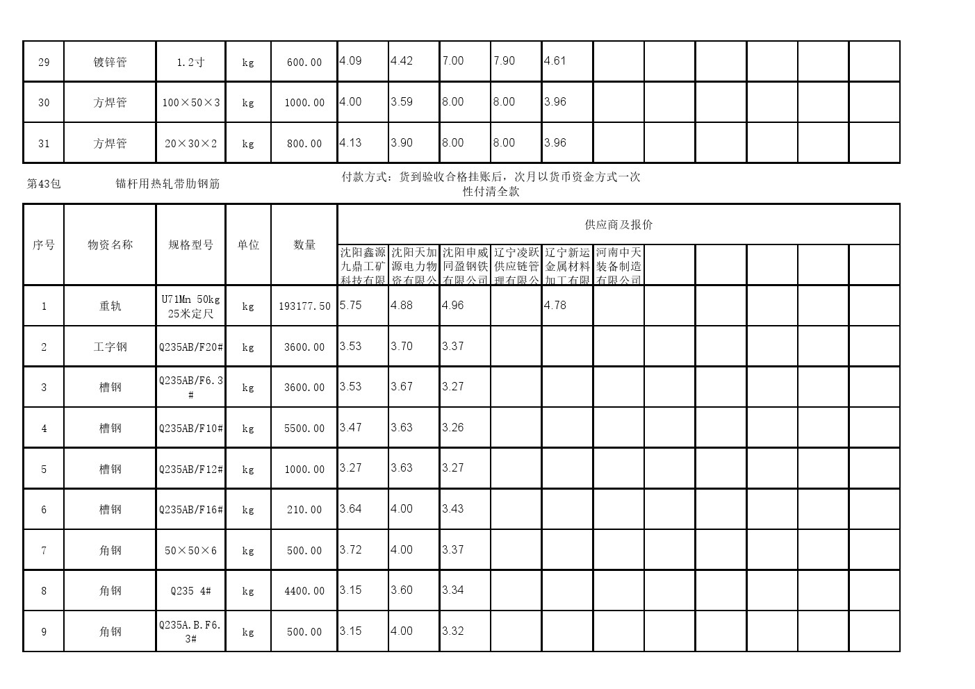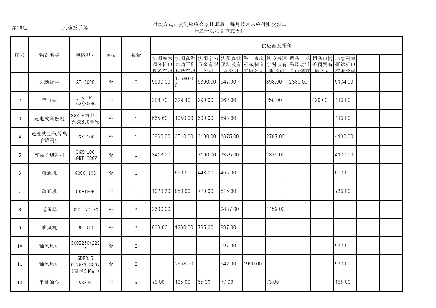 2025年8月26日材料公开招标开标记录表(0089C)