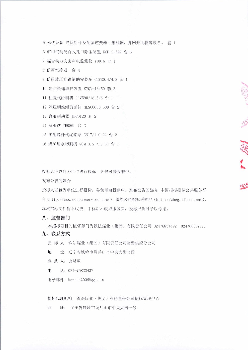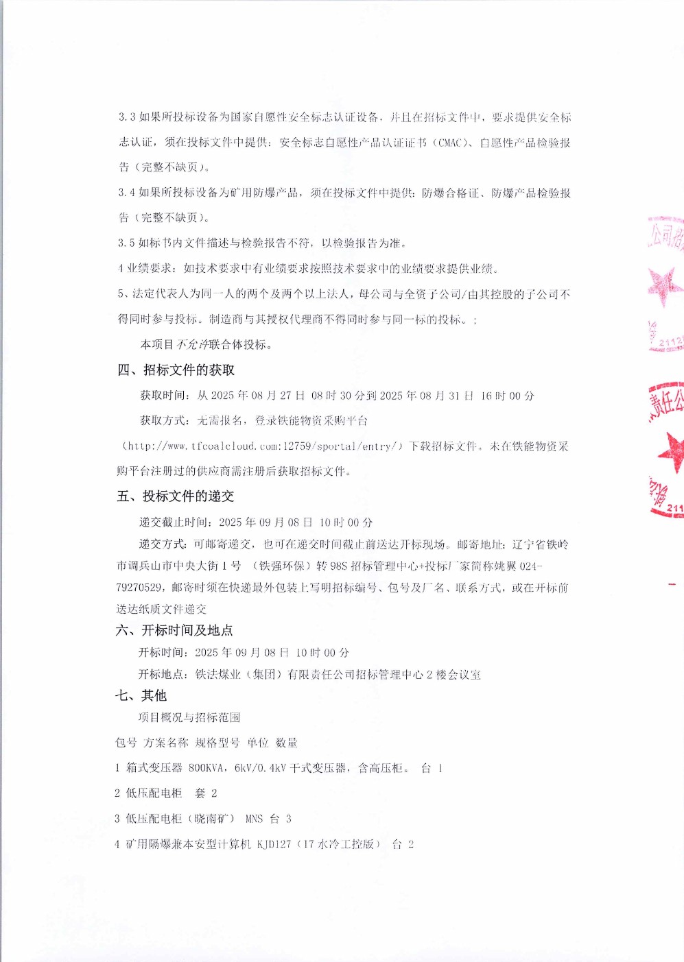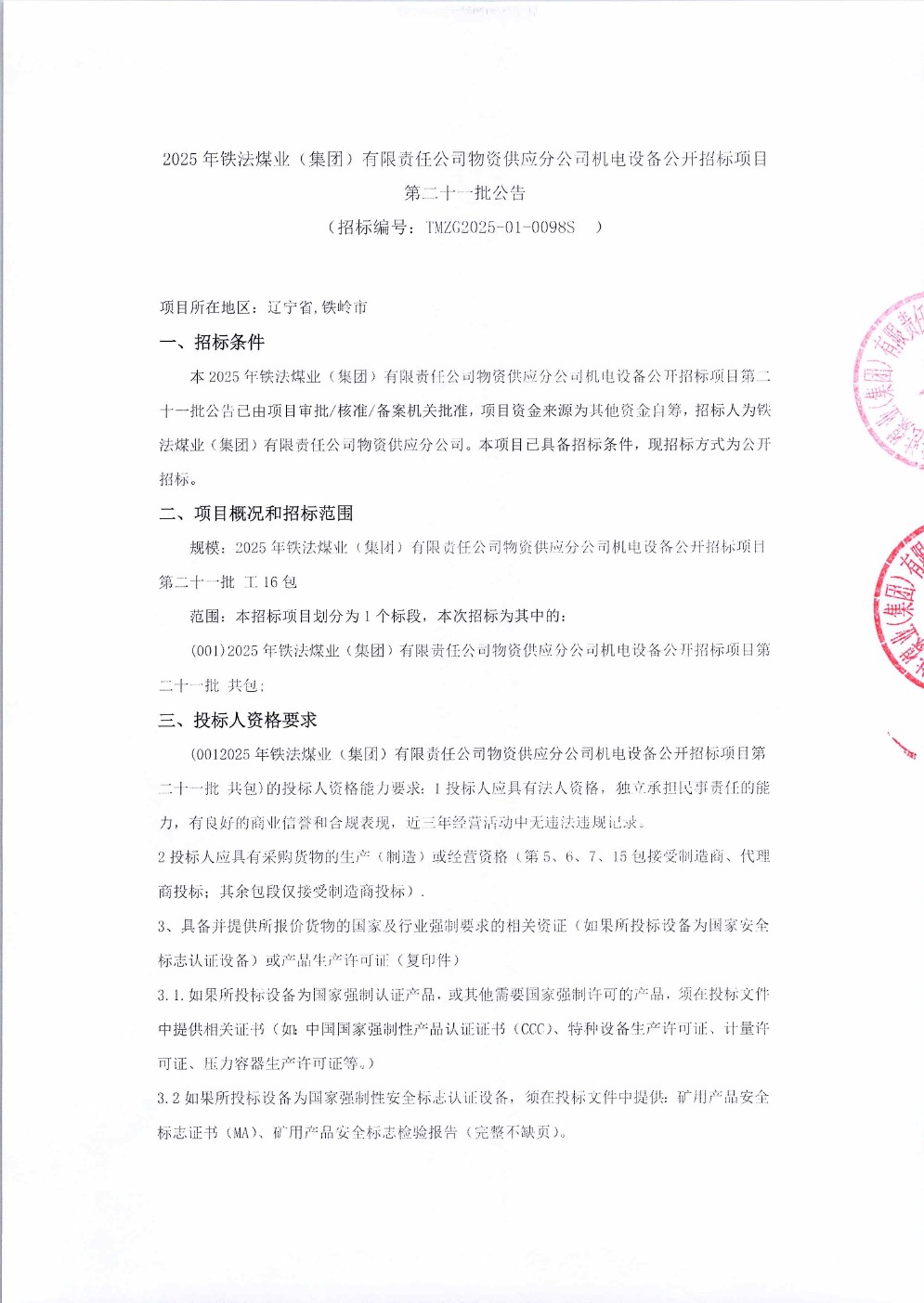 2025年9月8日设备第二十一批公开招标公告(0098S)