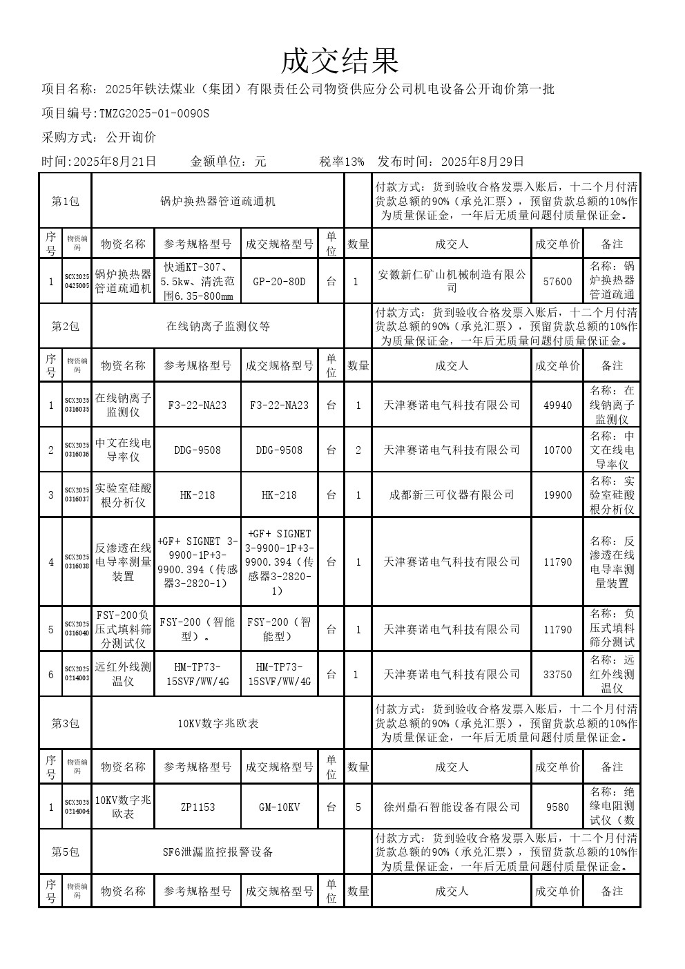 2025年8月21日机电设备公开询价成交结果公示(0090S)