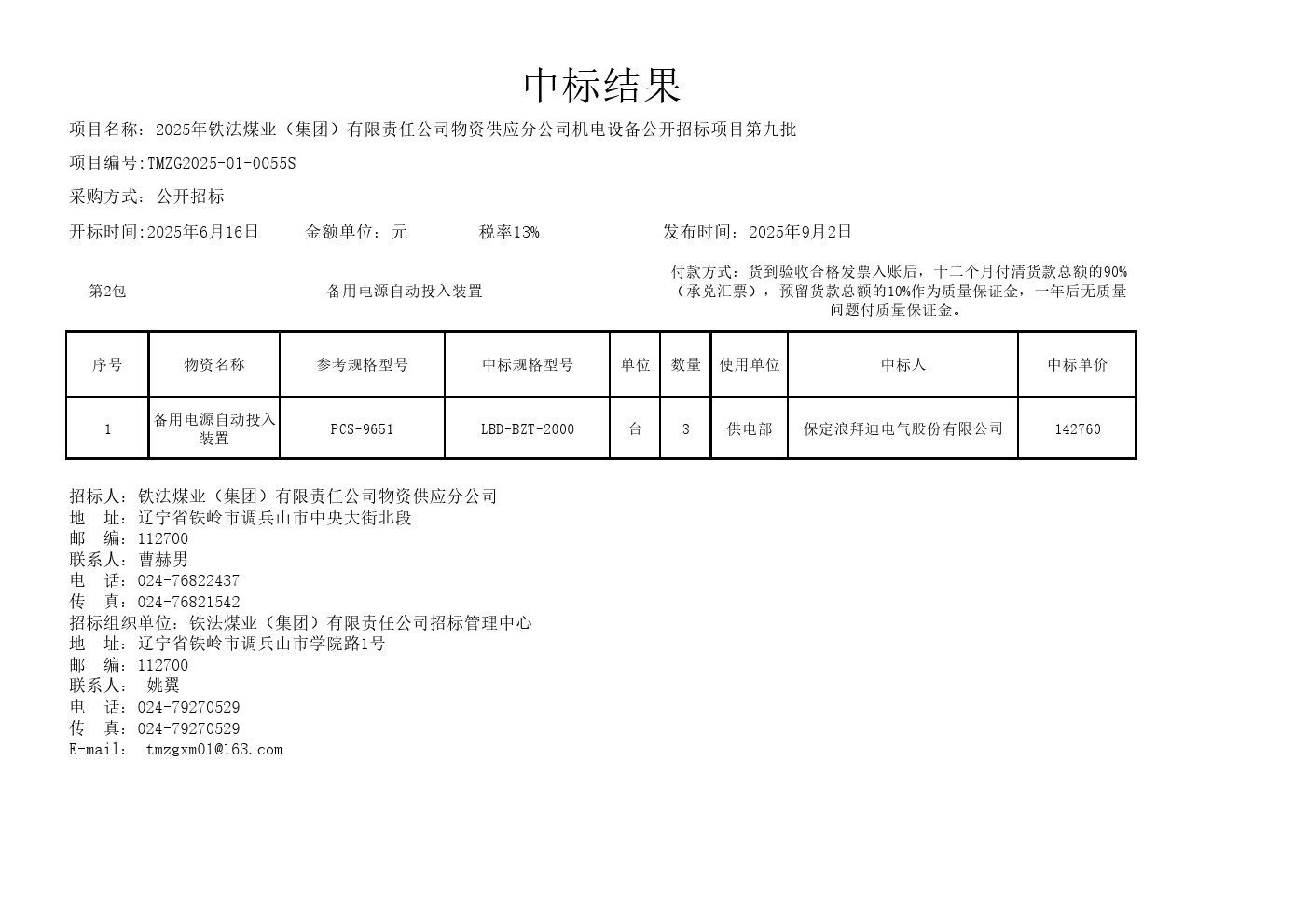 2025年6月16日设备公开招标中标结果公告(0055S)