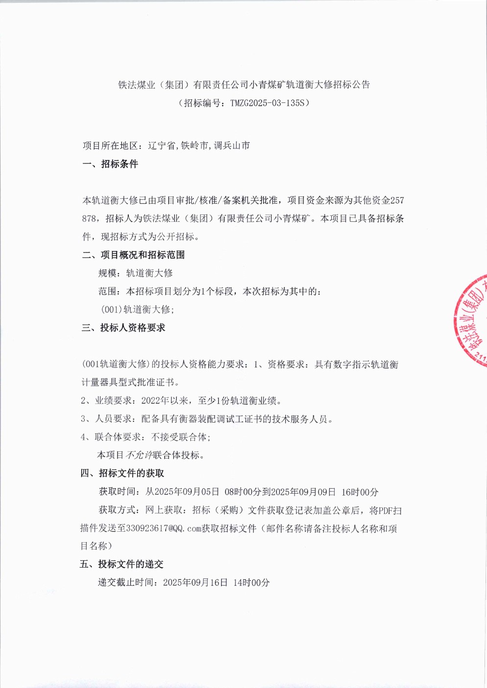 铁法煤业(集团)有限责任公司小青煤矿 轨道衡大修招标公告