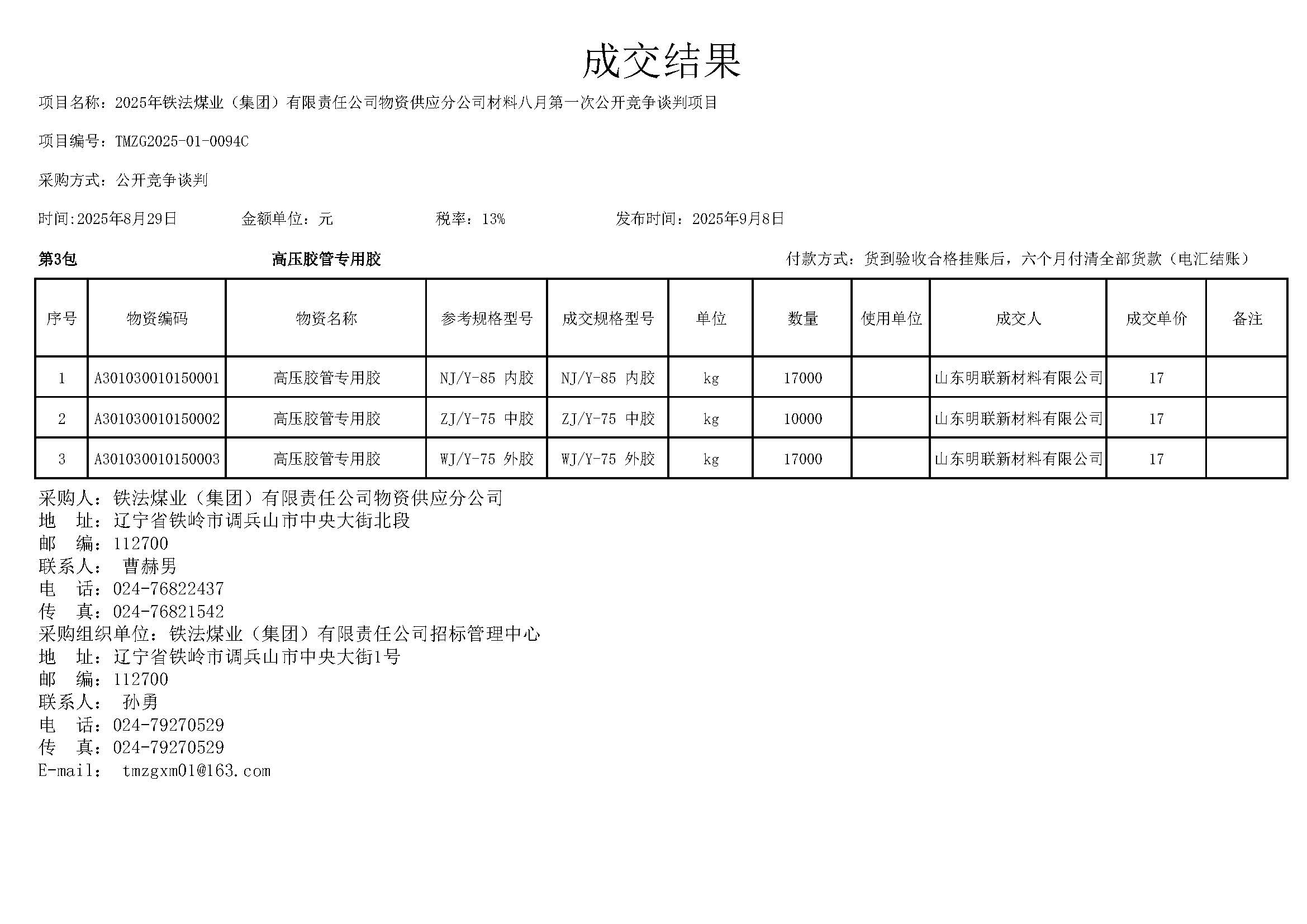 2025年8月29日材料成交结果(0094C) - 2