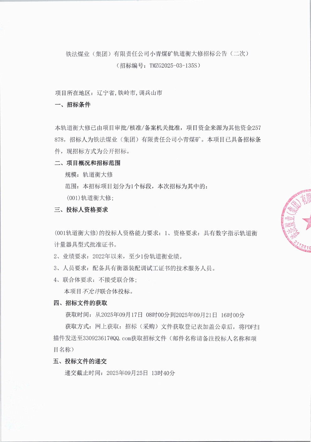 铁法煤业(集团)有限责任公司小青煤矿 轨道衡大修招标公告(二次)