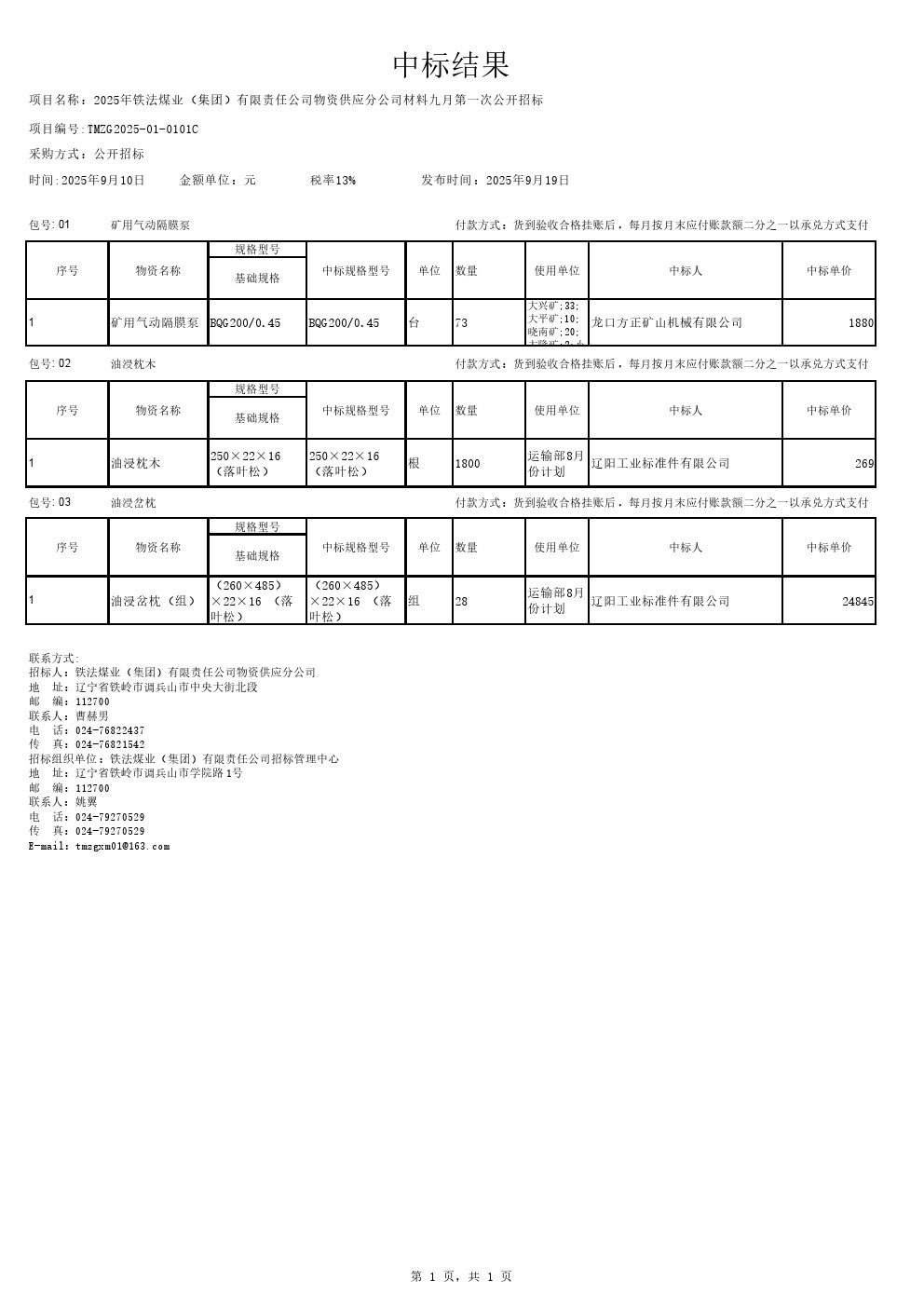 2025年9月10日材料公开招标中标结果公告(0101C)