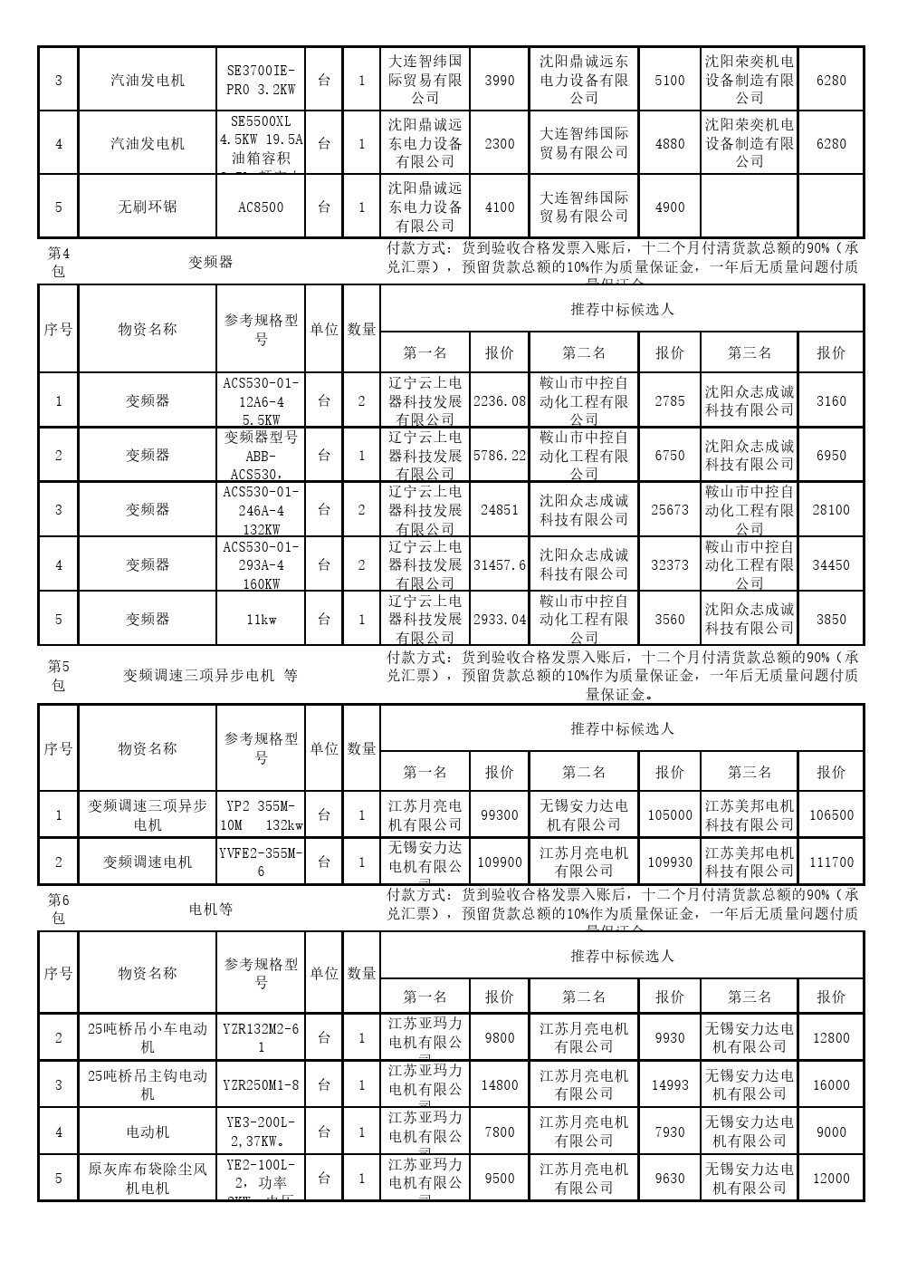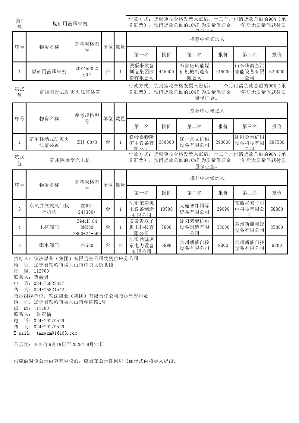 2025年9月11日机电设备公开招标中标候选人公示(0099S)