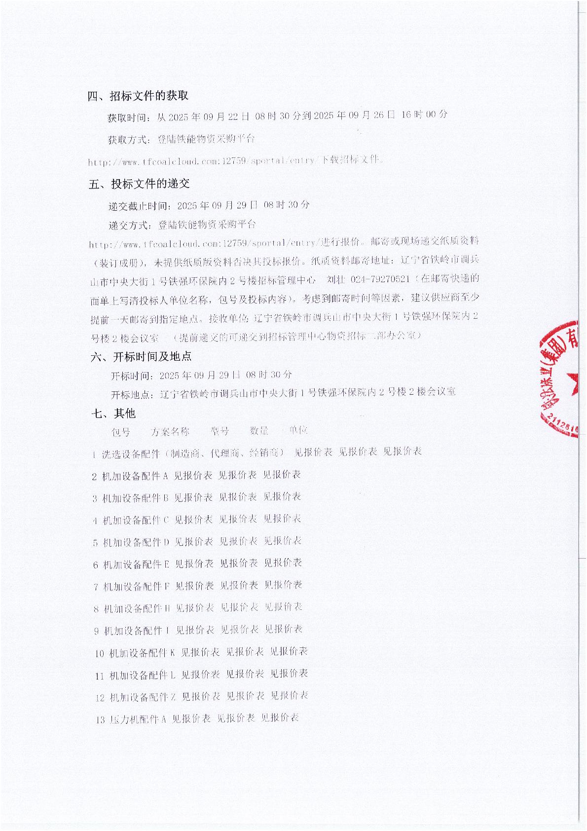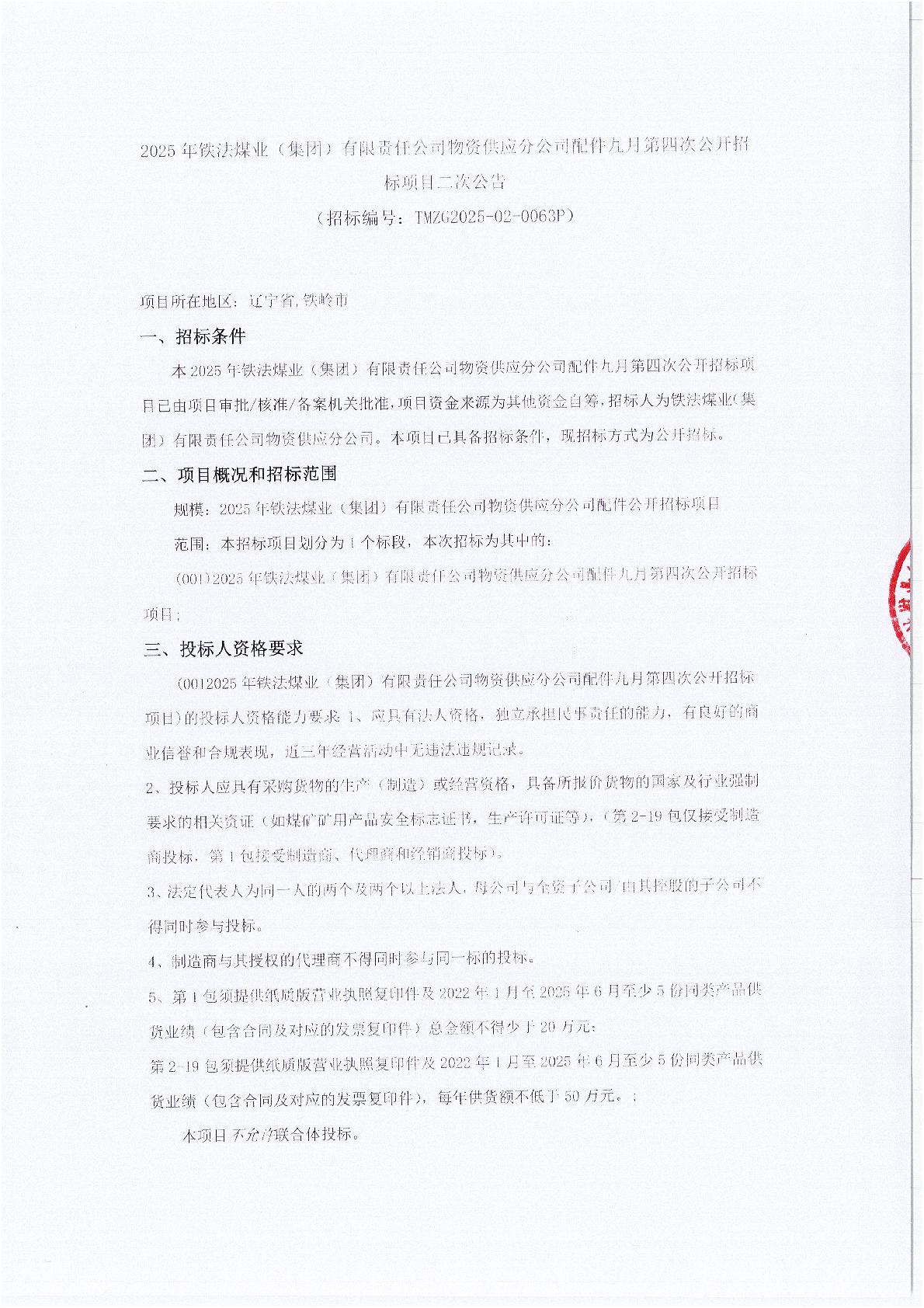 2025年9月29日配件公开招标项目二次公告(0063P)