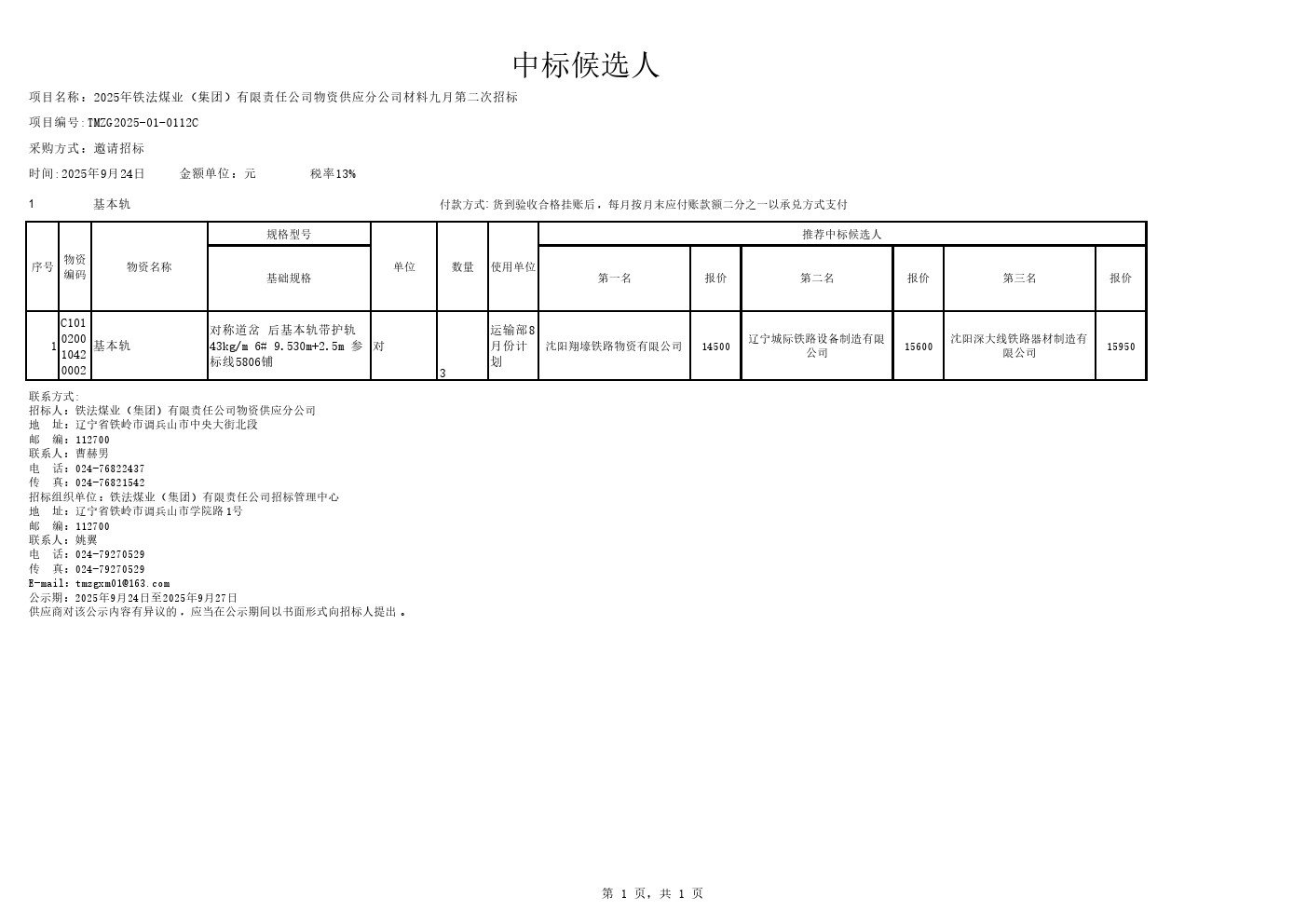 2025年9月24日材料邀请招标中标候选人公示(0112C)