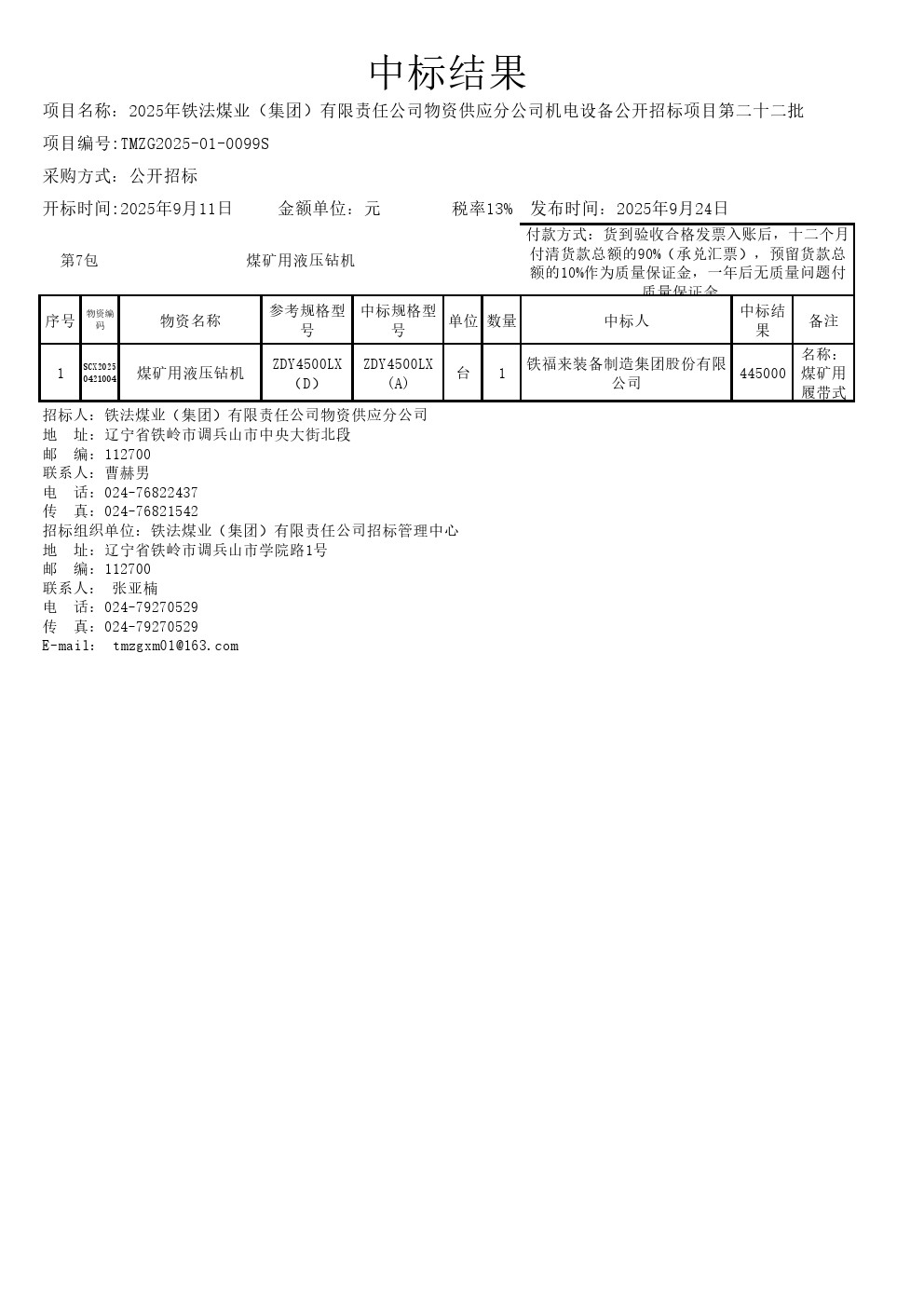 2025年9月11日机电设备公开招标第7包型号变更(0099S)