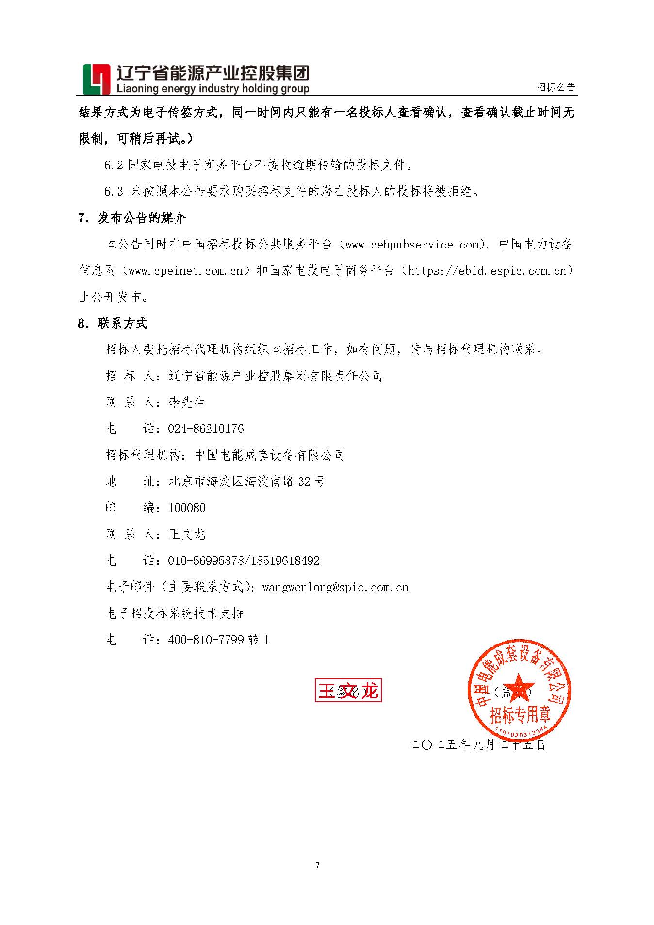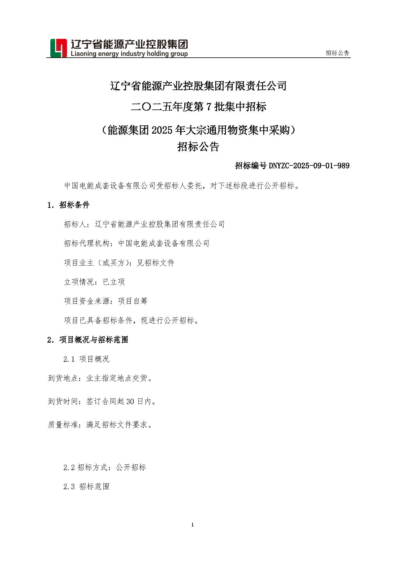 辽宁省能源产业控股集团有限责任公司二〇二五年度第7批集中招标(能源集团2025年大宗通用物资集中采购)招标公告