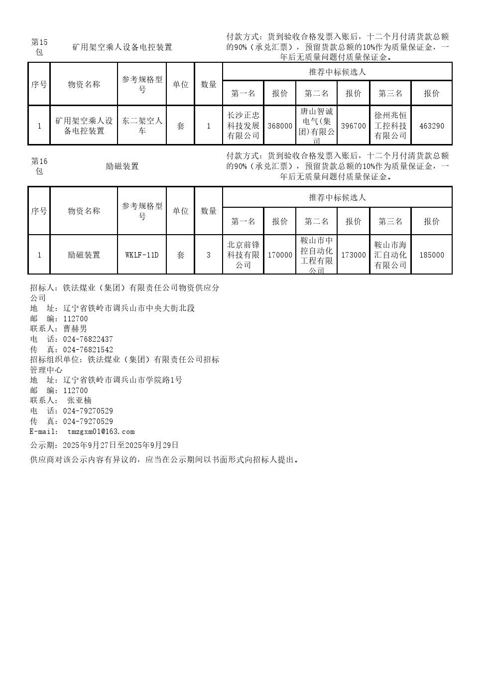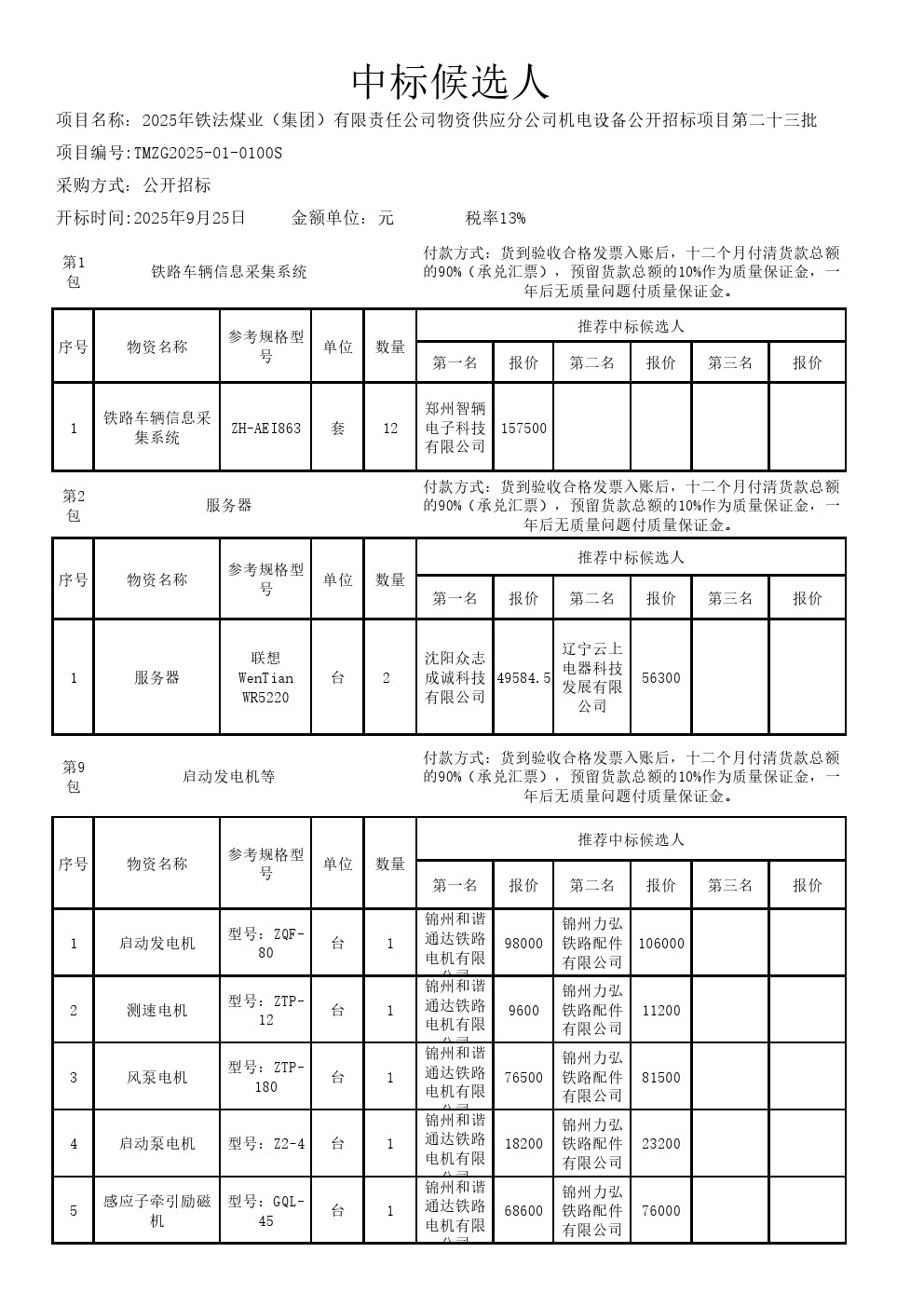 2025年9月25日机电设备公开招标中标候选人公示(0100S)