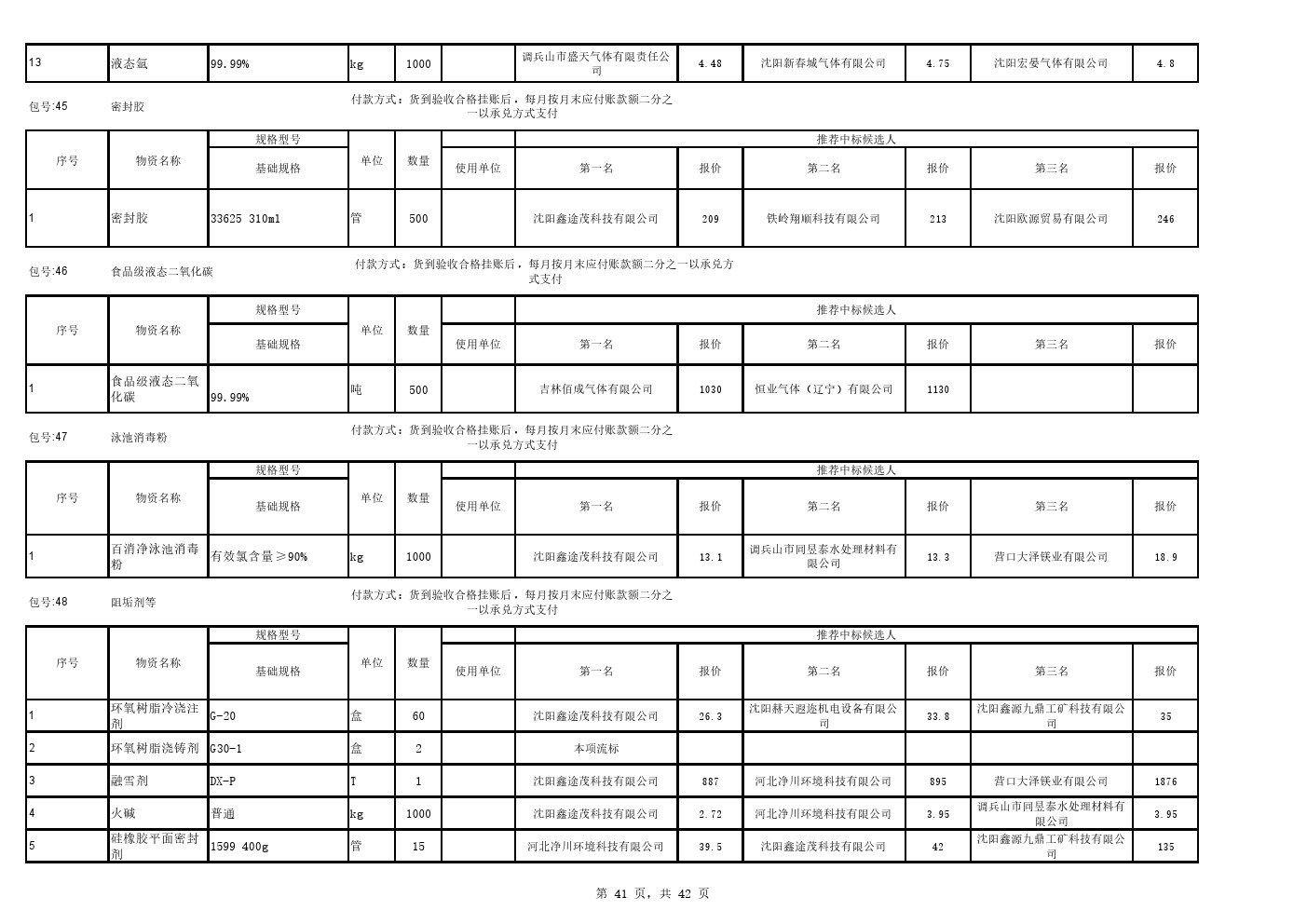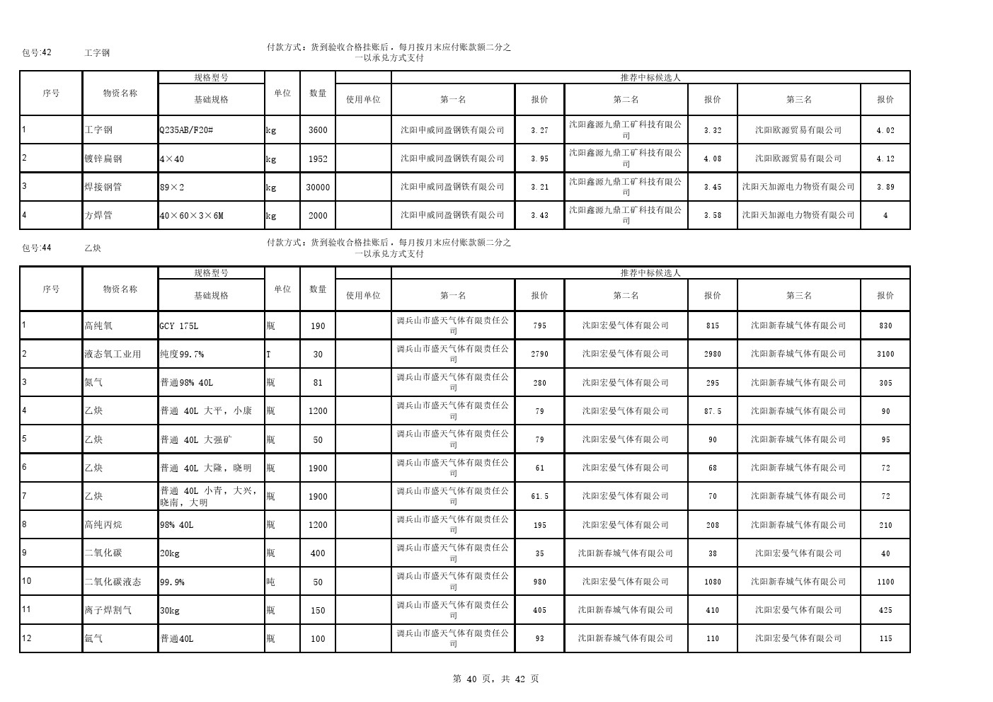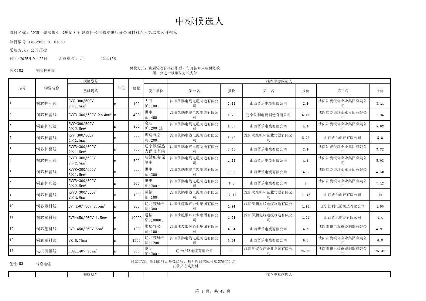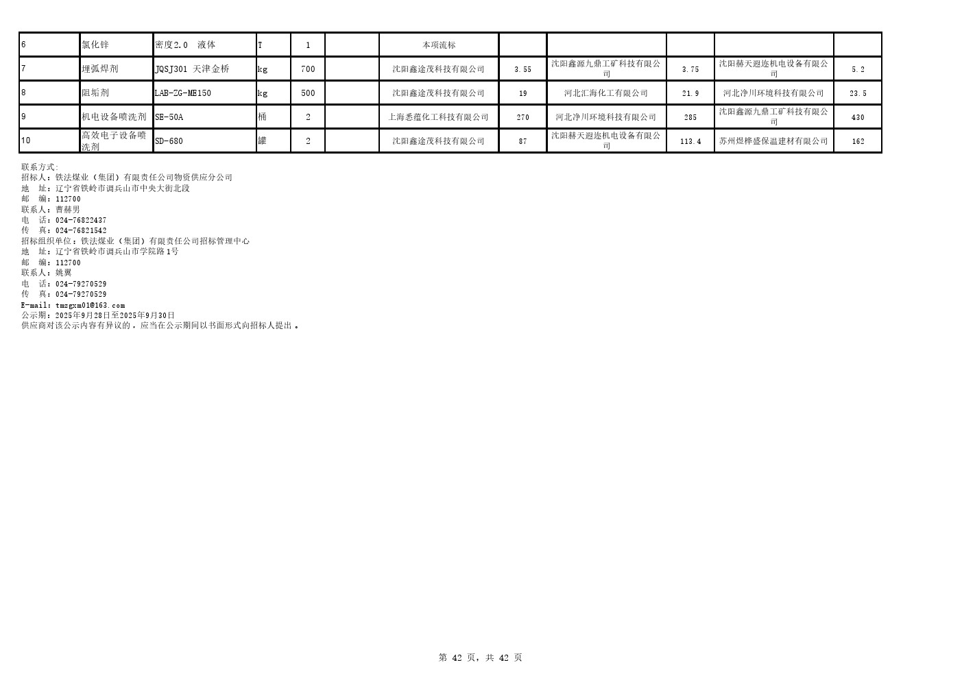2025年9月22日材料公开招标中标候选人公示(0105C)
