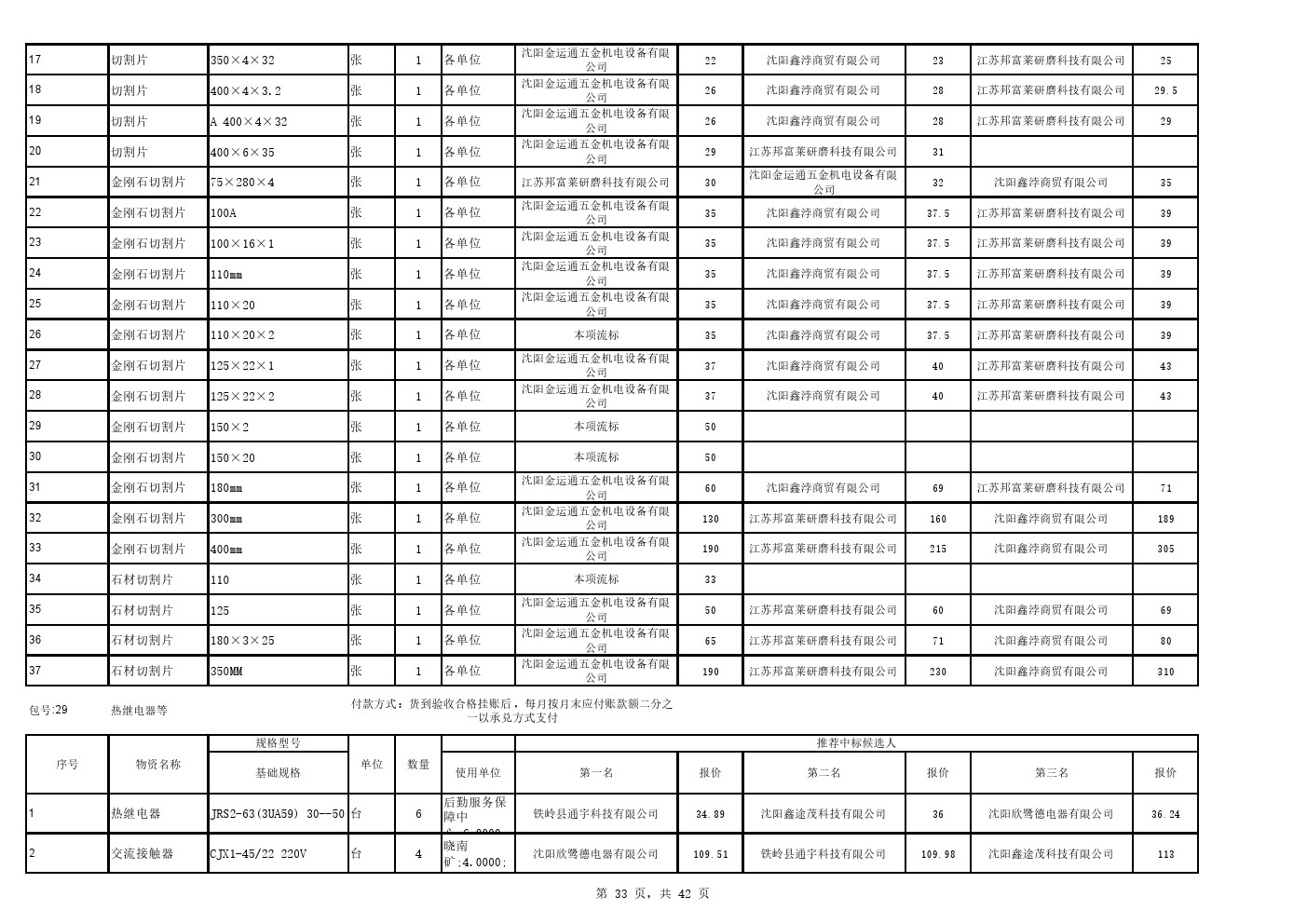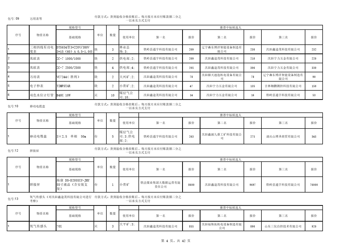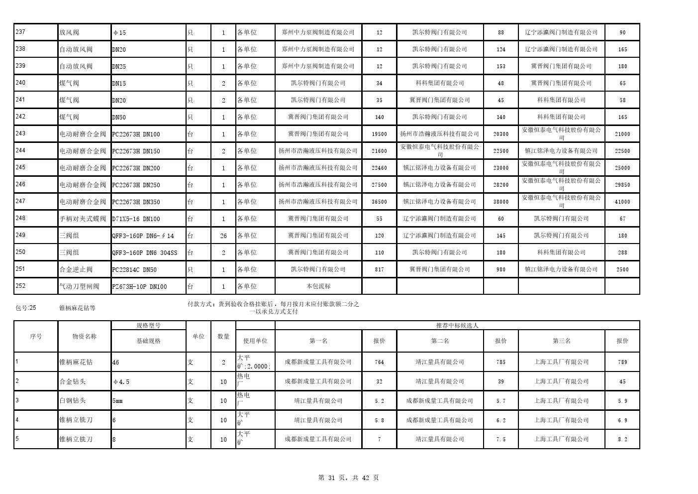 2025年9月22日材料公开招标中标候选人公示(0105C)
