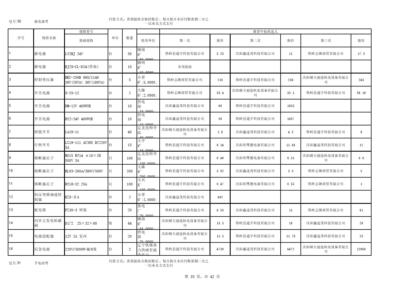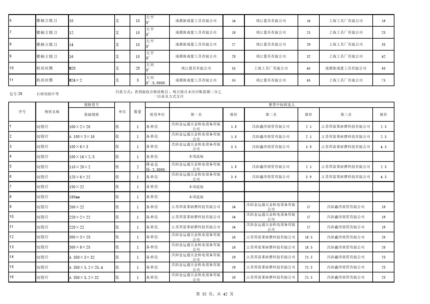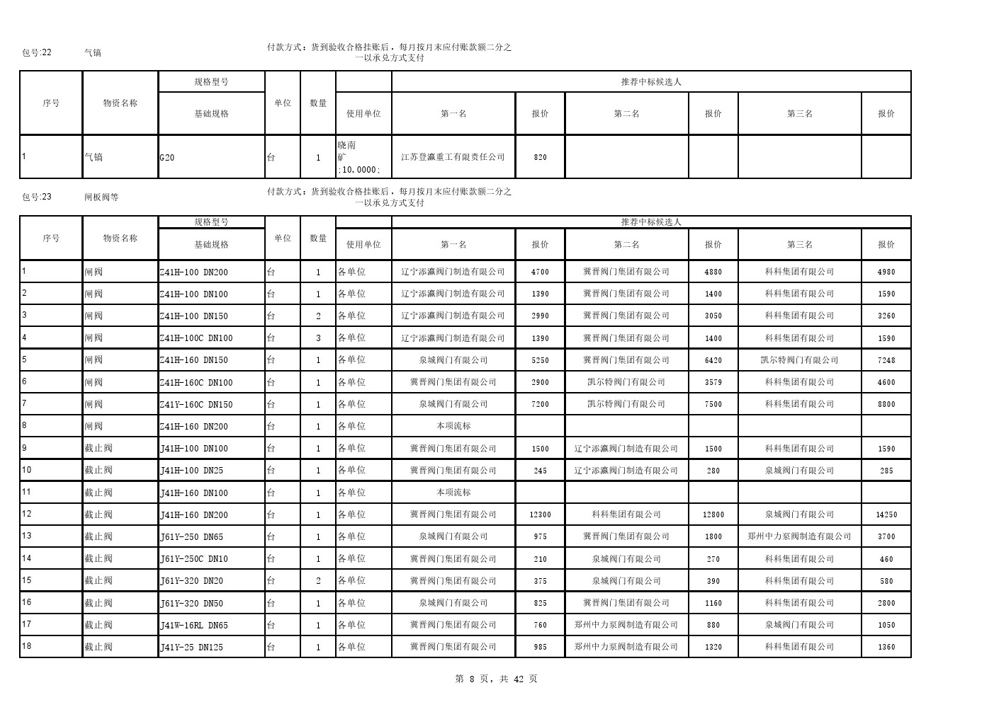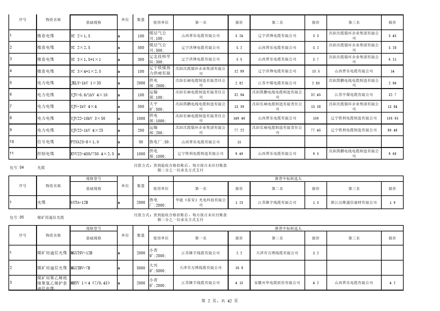 2025年9月22日材料公开招标中标候选人公示(0105C)