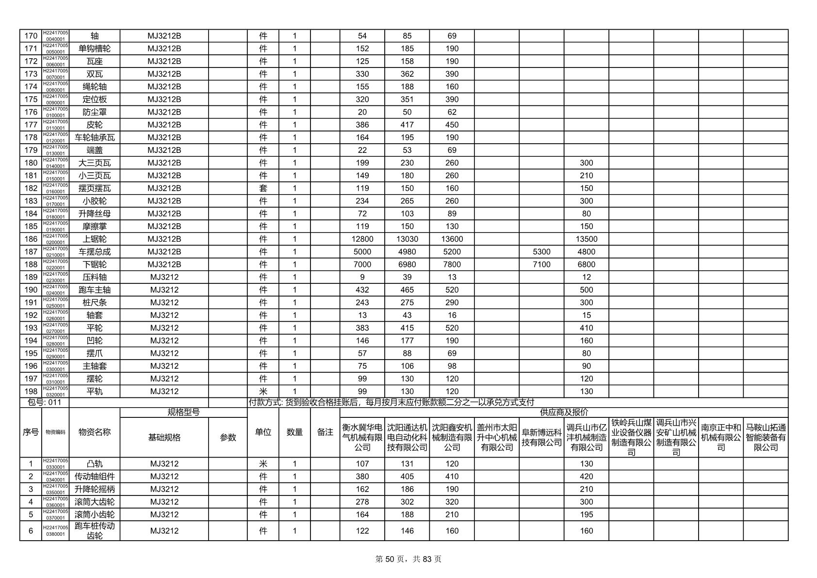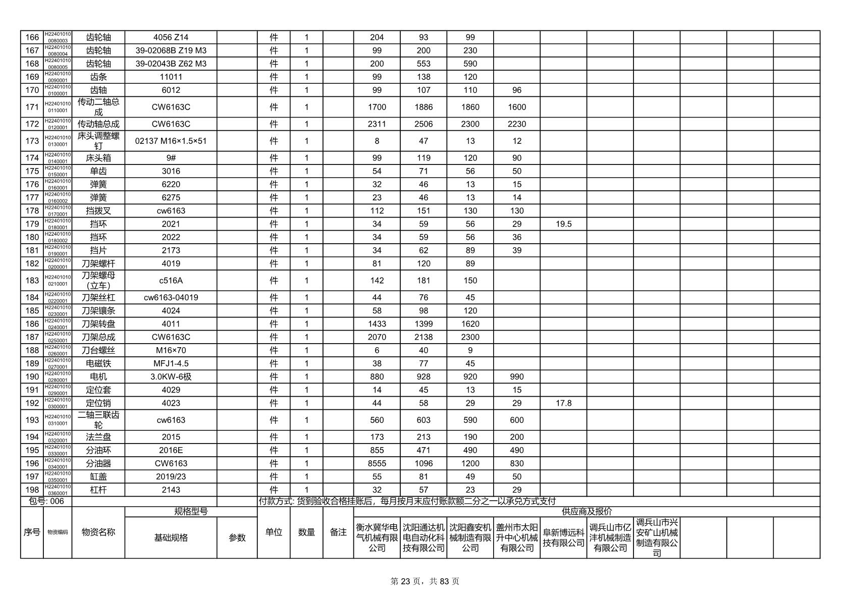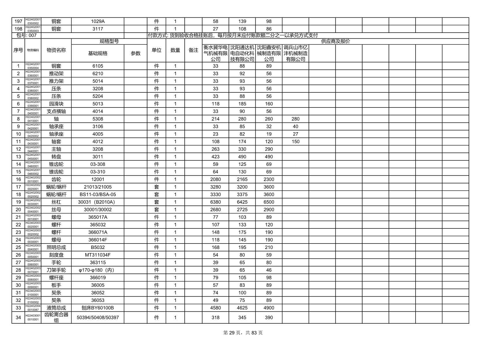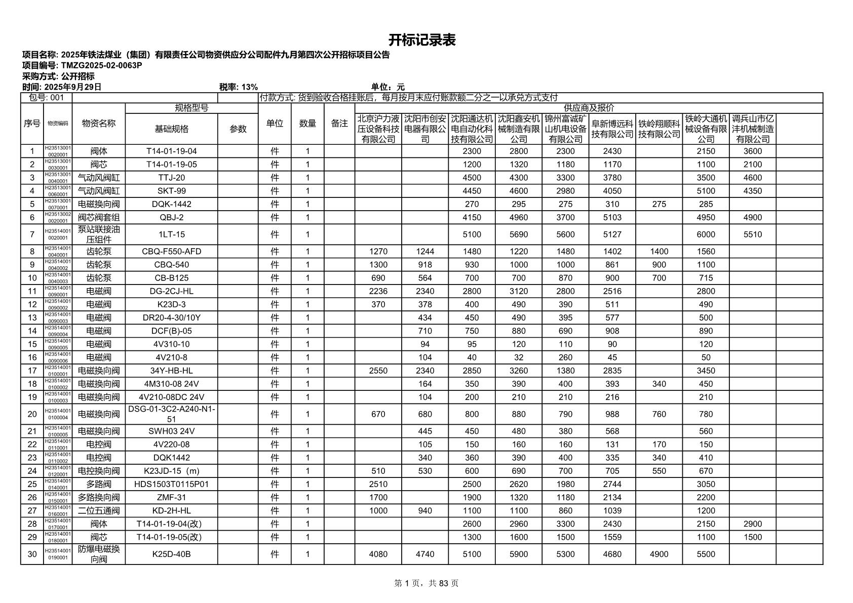 2025年9月29日配件开标记录表(0063P)