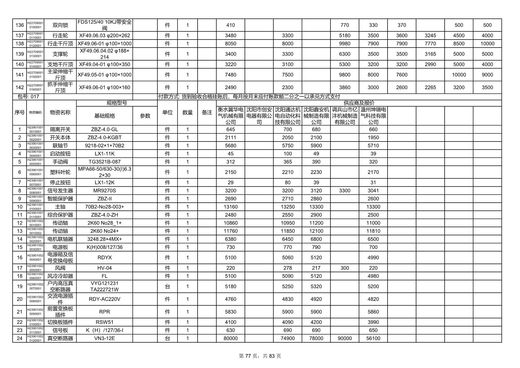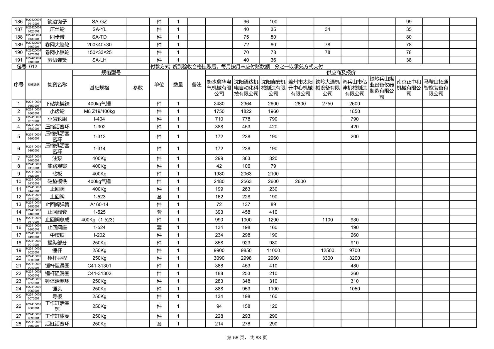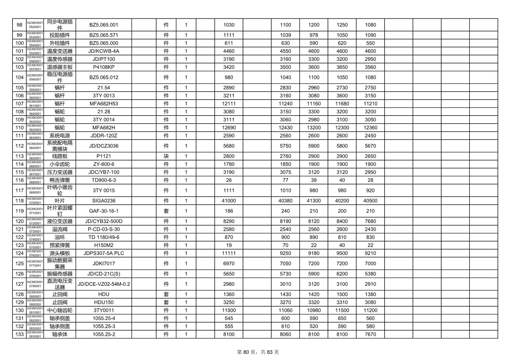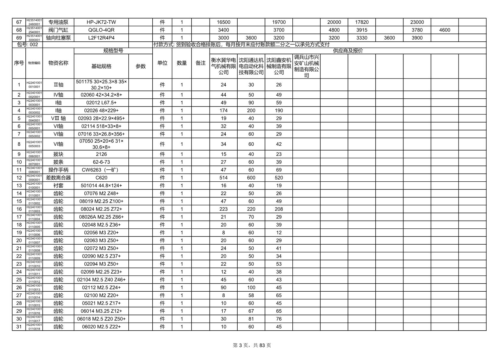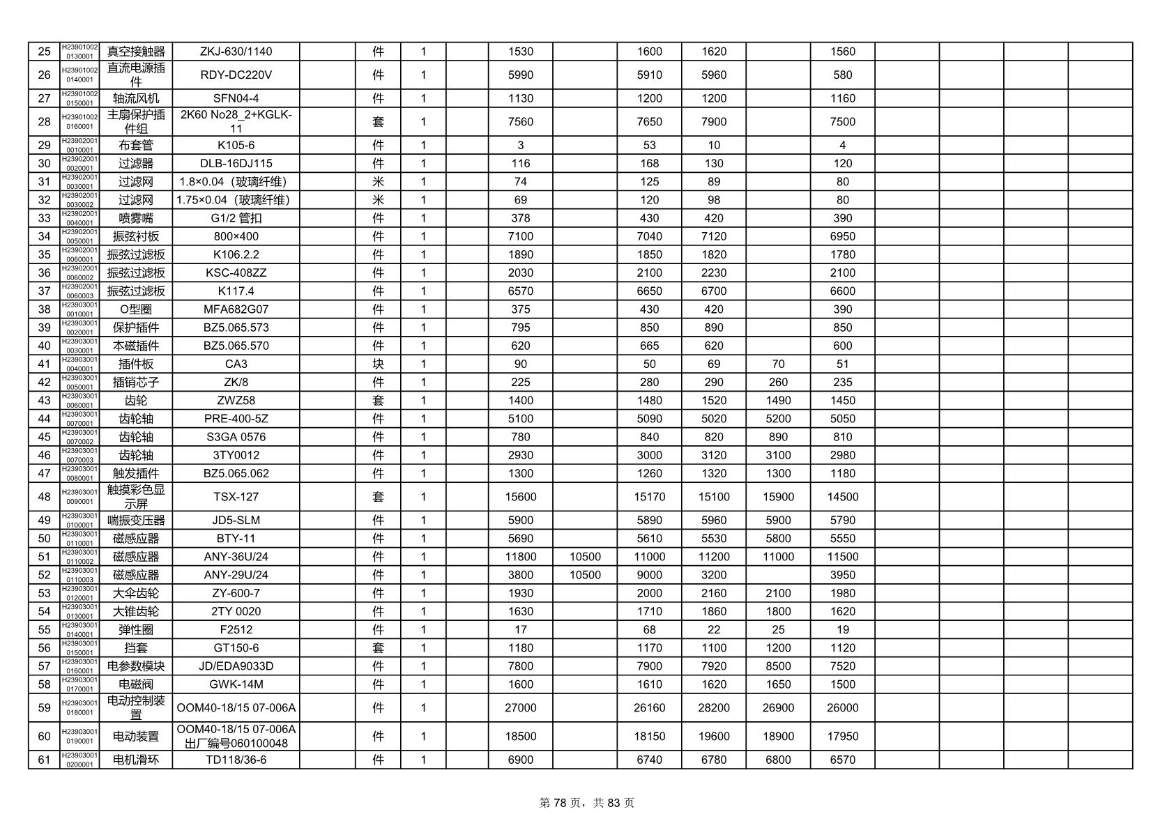 2025年9月29日配件开标记录表(0063P)