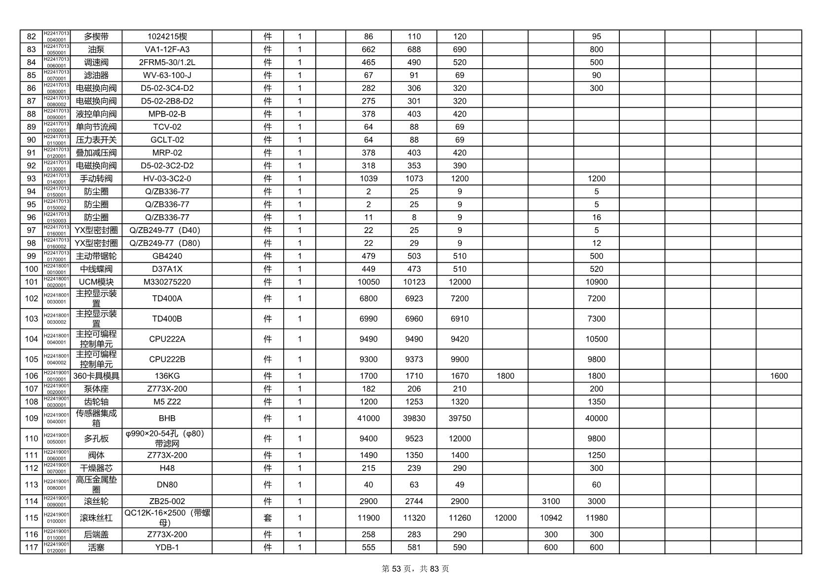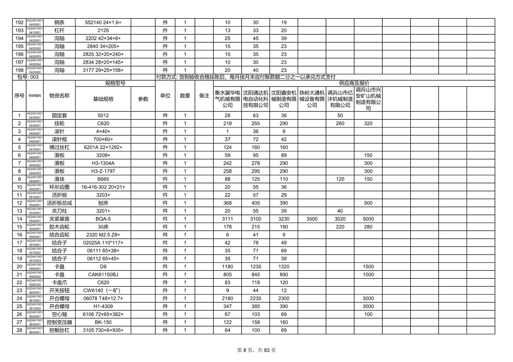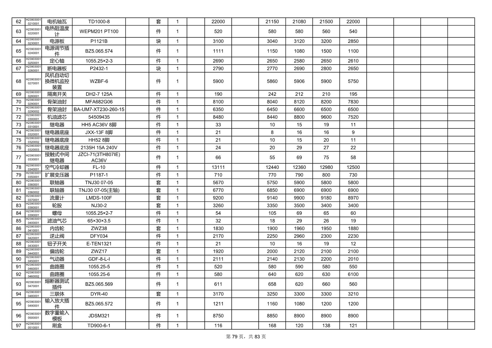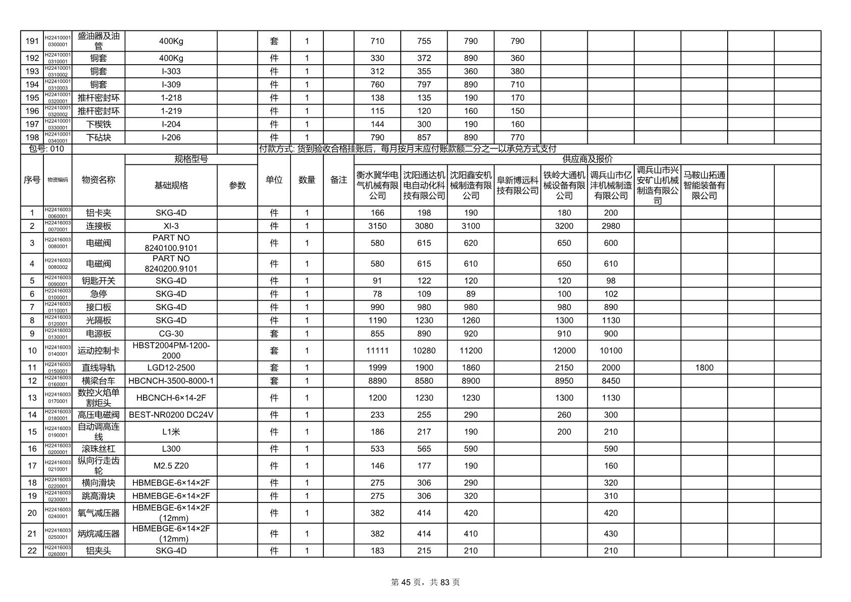 2025年9月29日配件开标记录表(0063P)