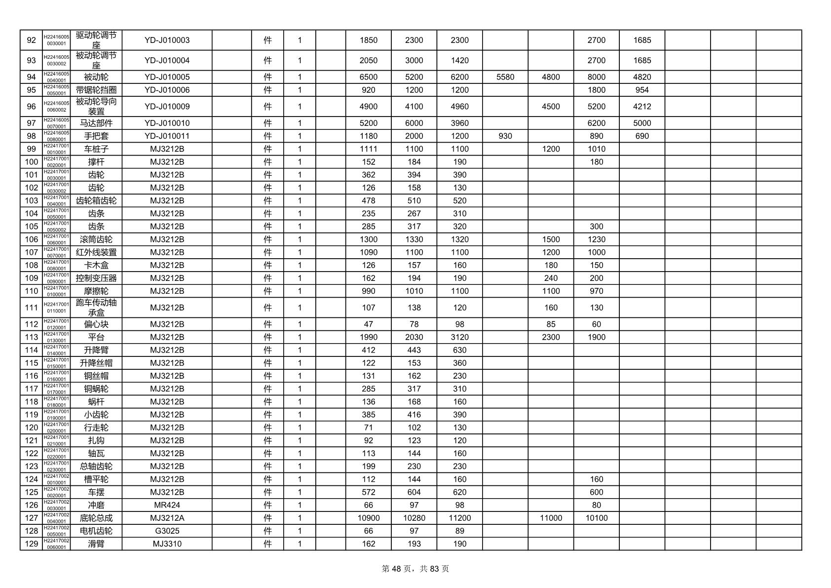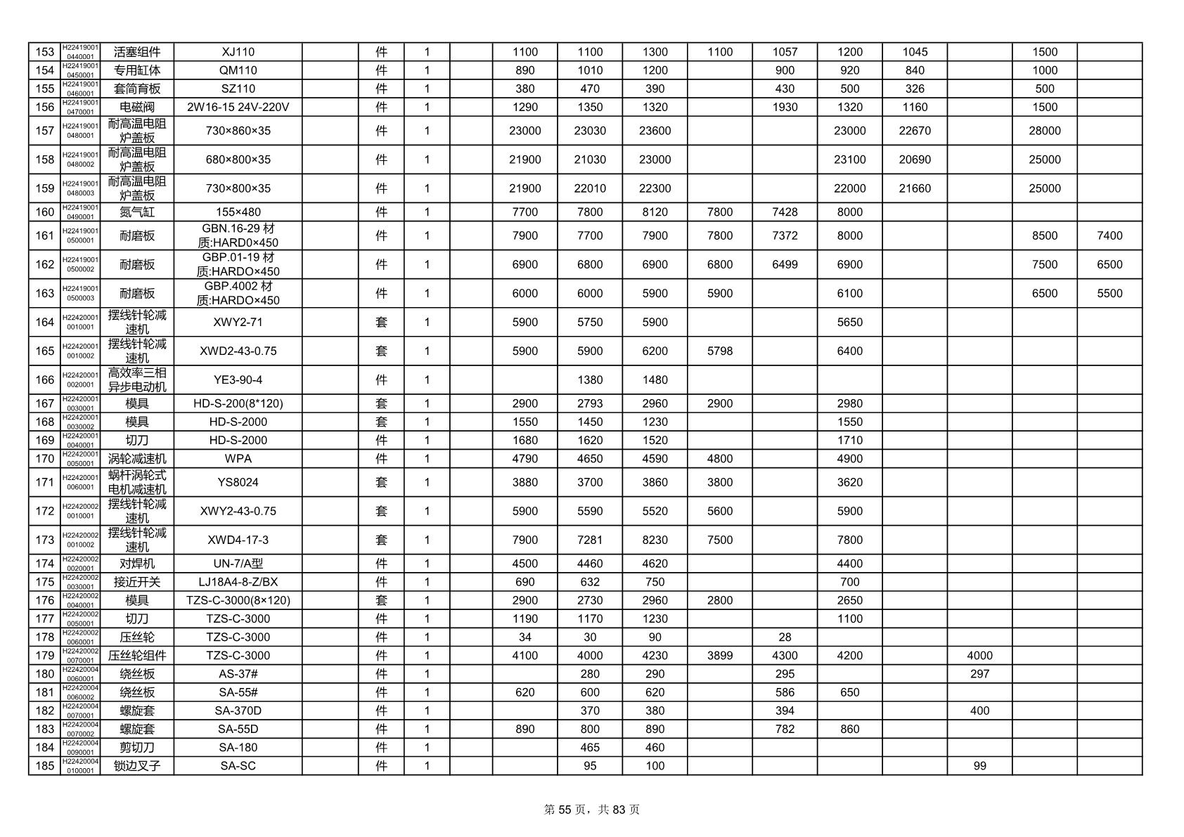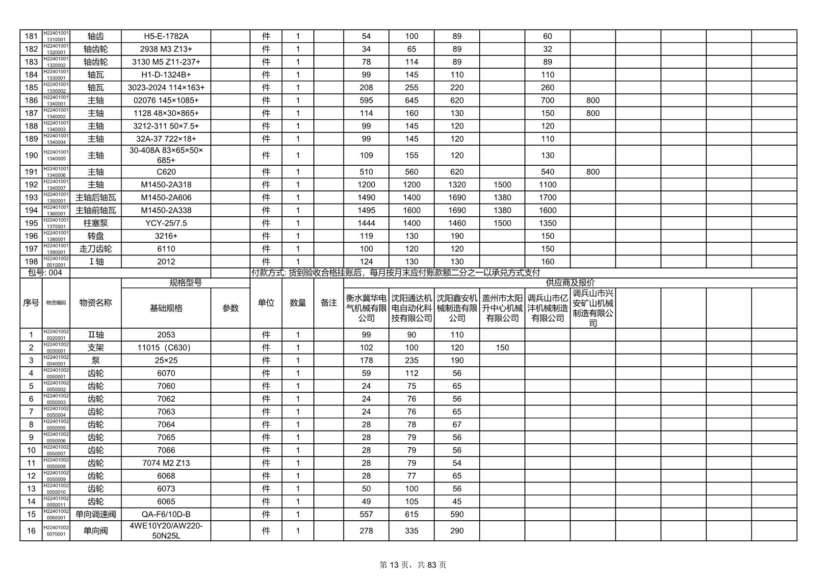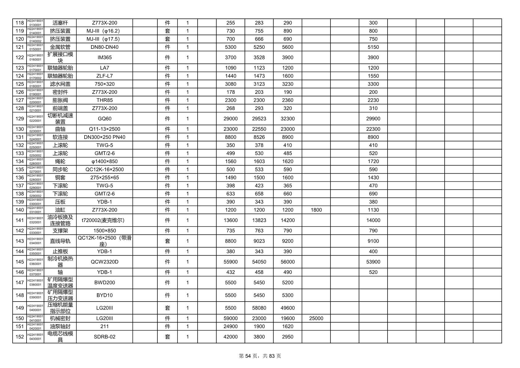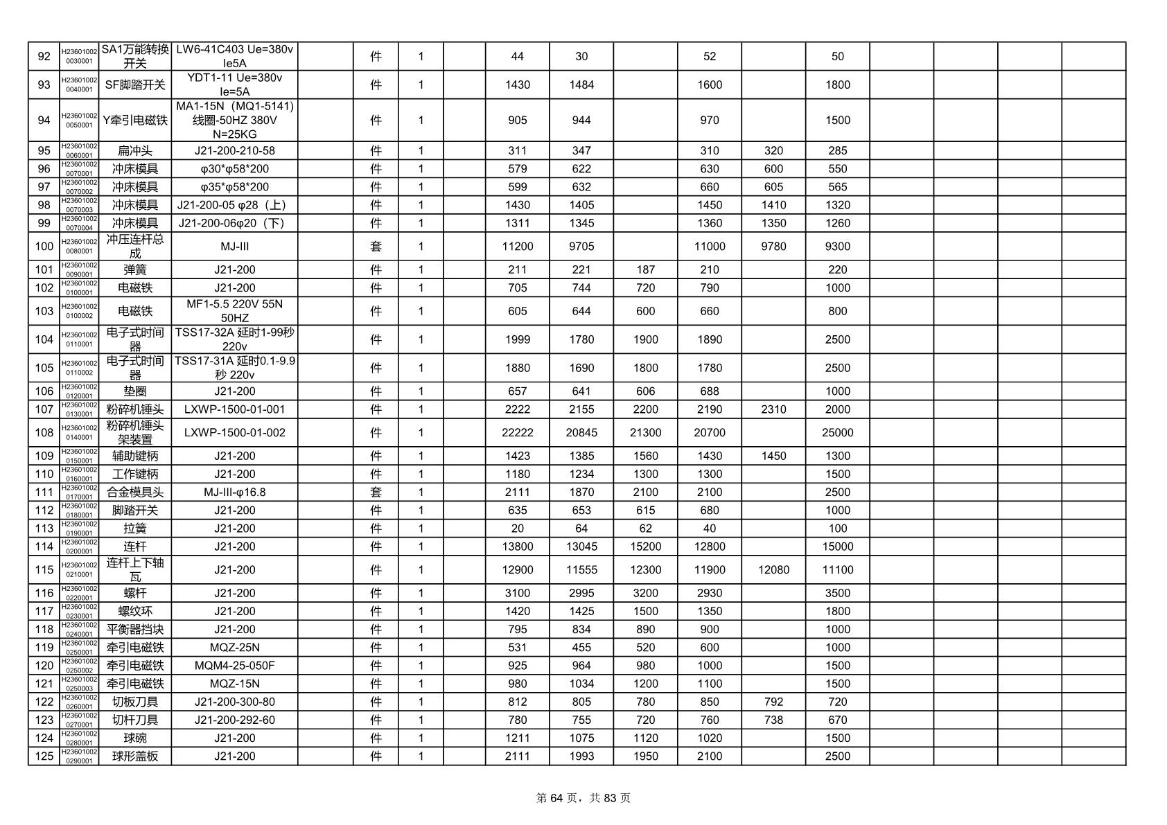 2025年9月29日配件开标记录表(0063P)