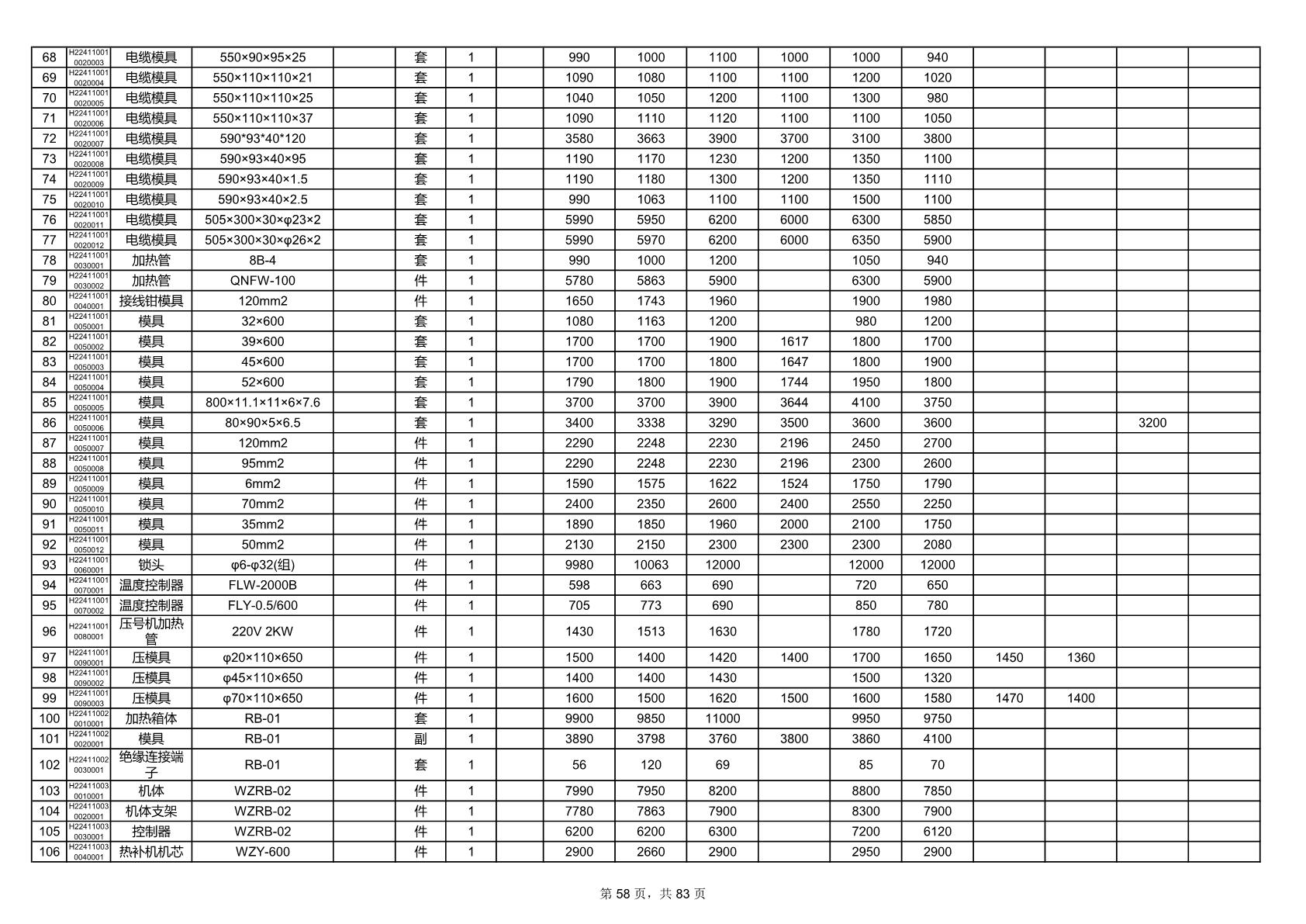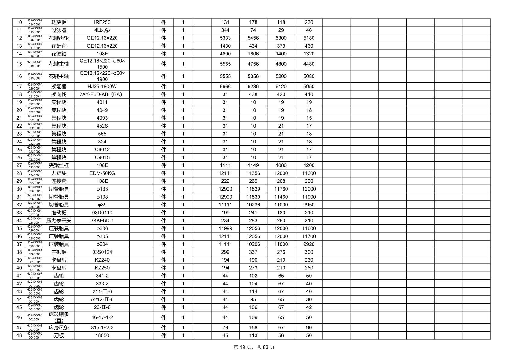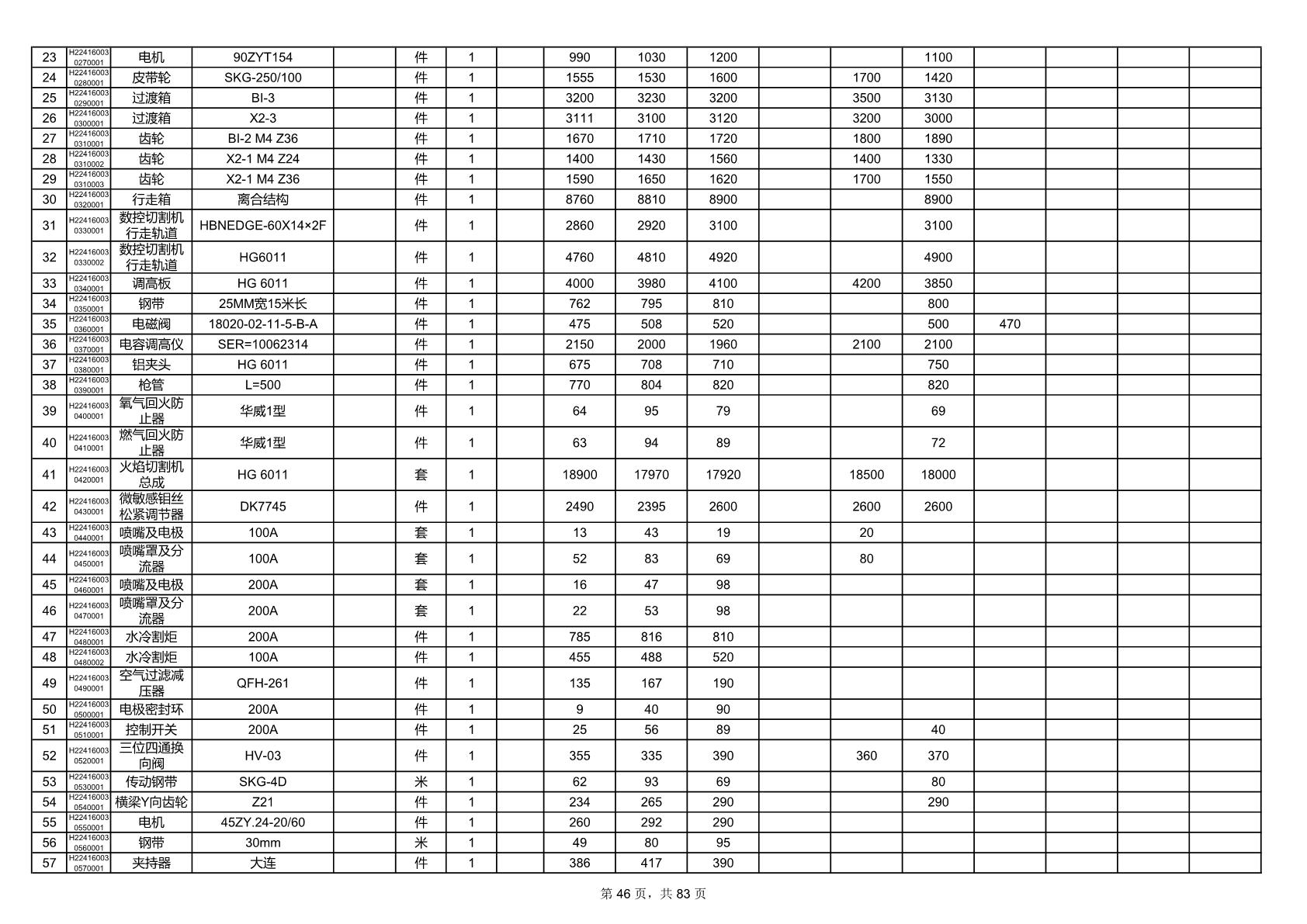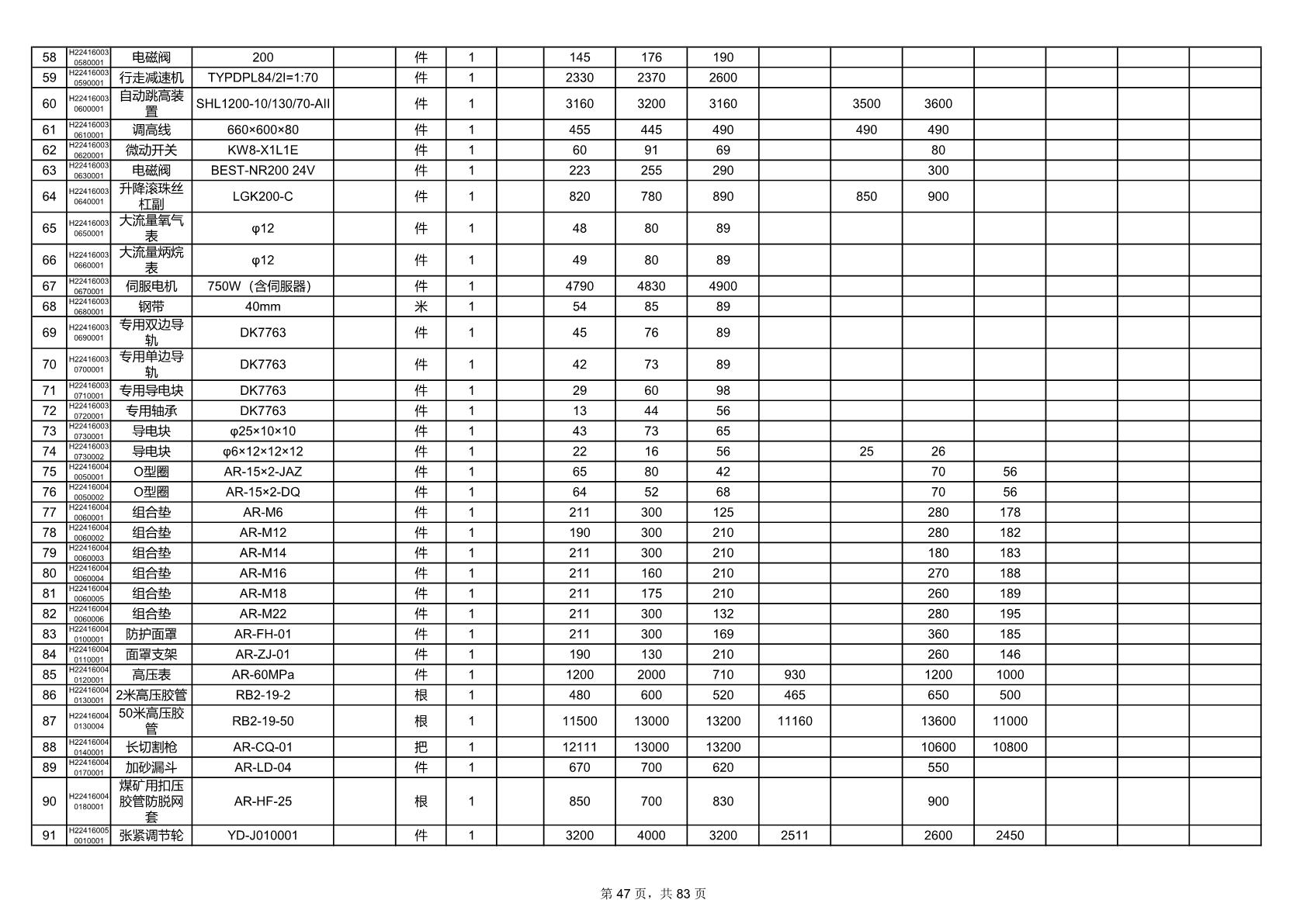 2025年9月29日配件开标记录表(0063P)