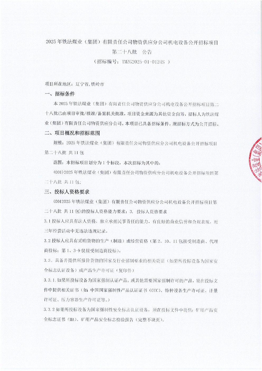 2025年10月22日设备第二十八批公开招标公告(0124S)