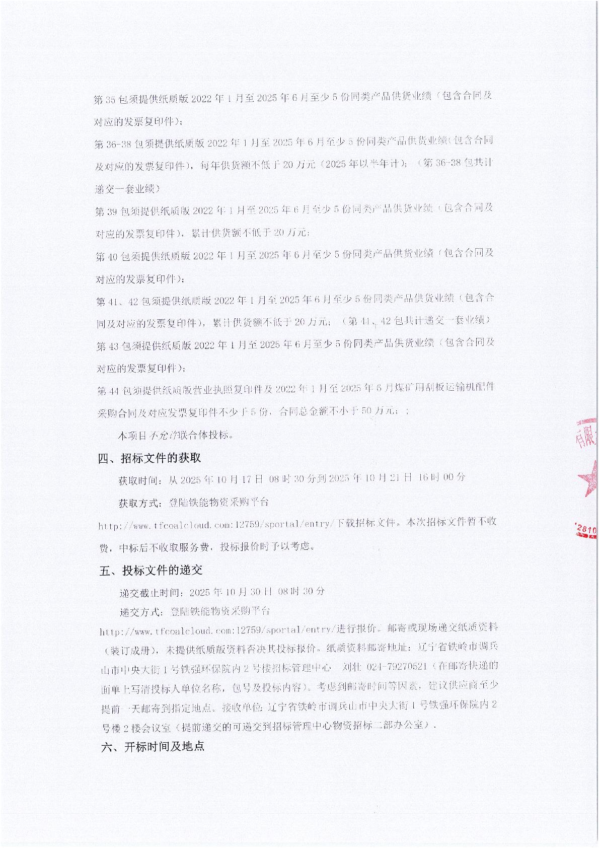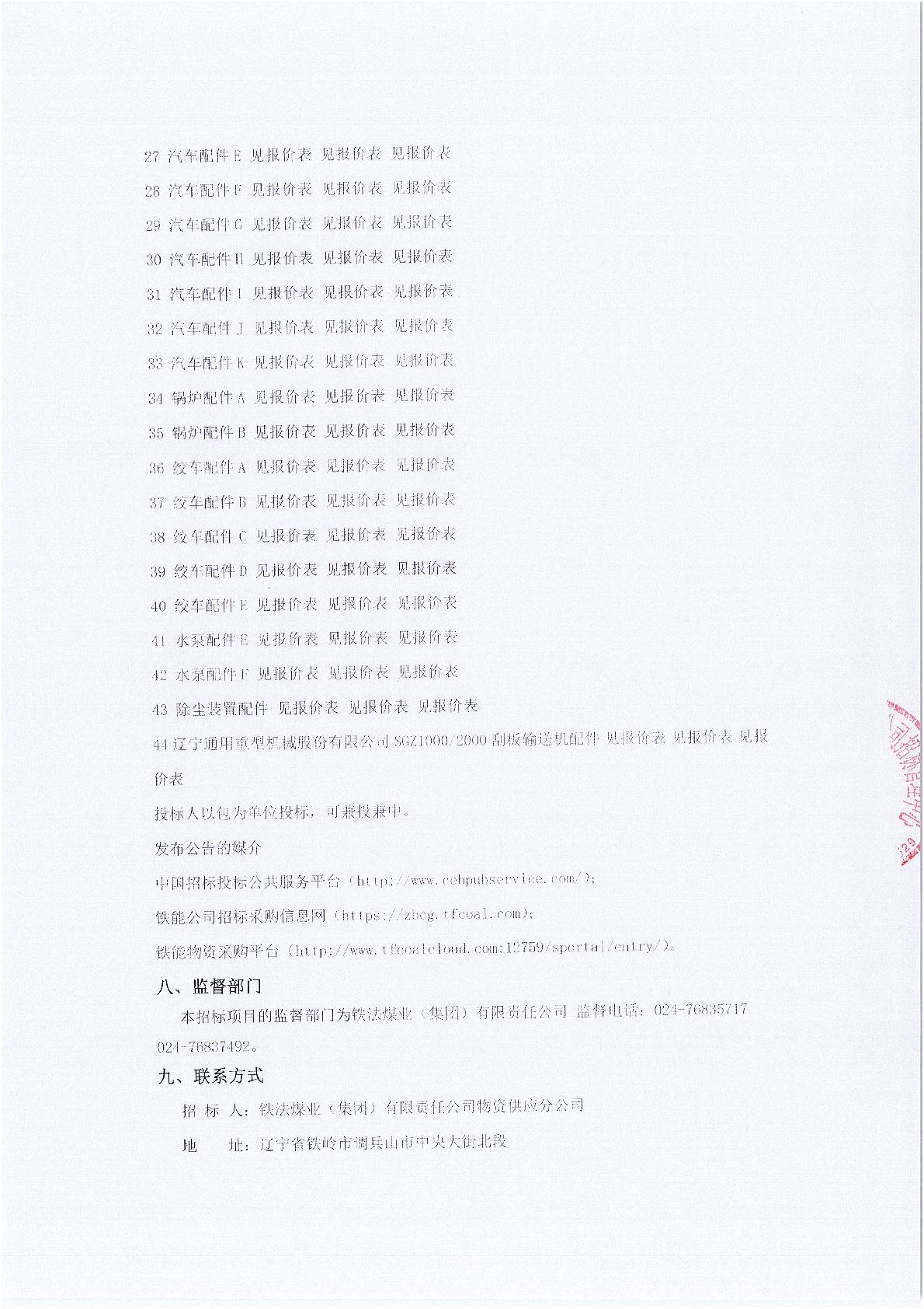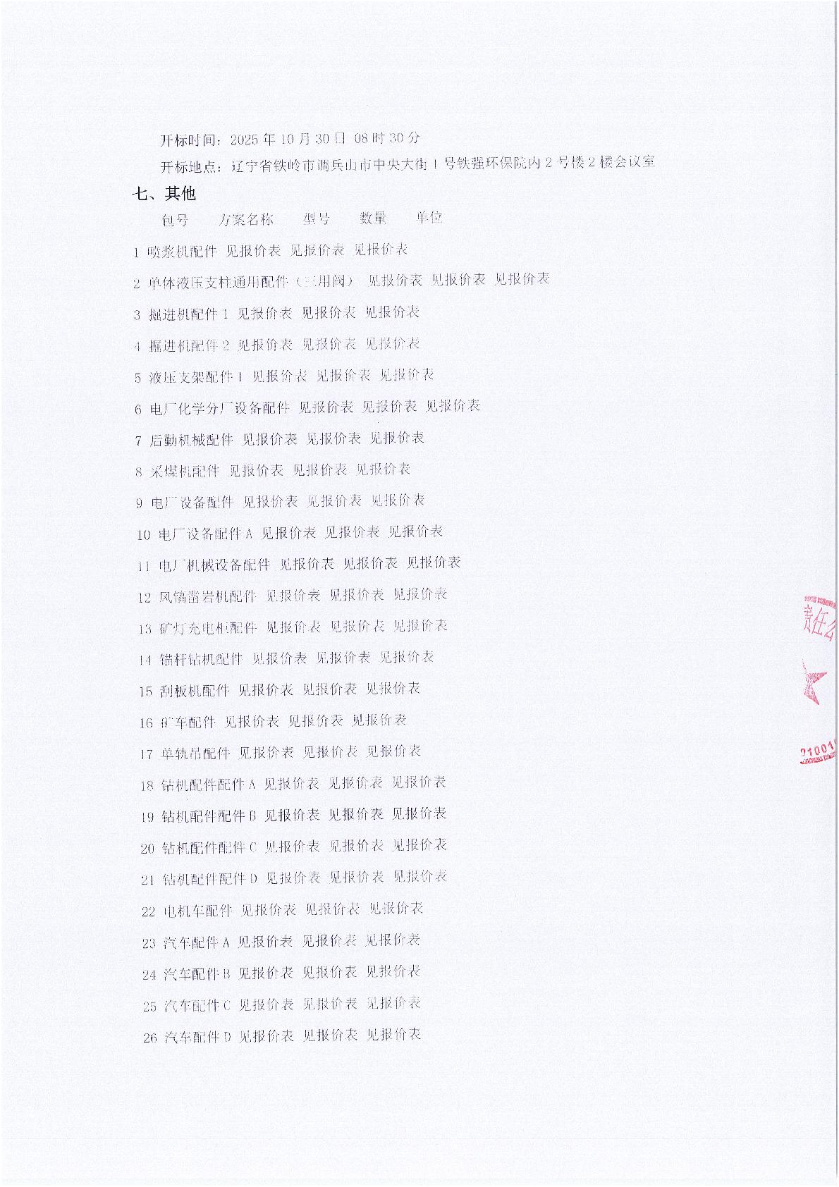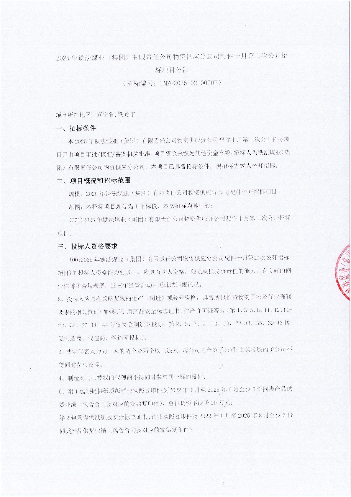2025年10月30日配件公开招标项目公告(0070P)