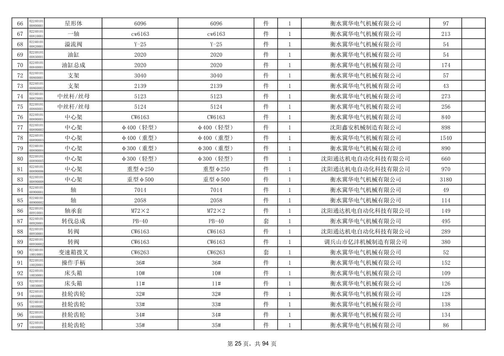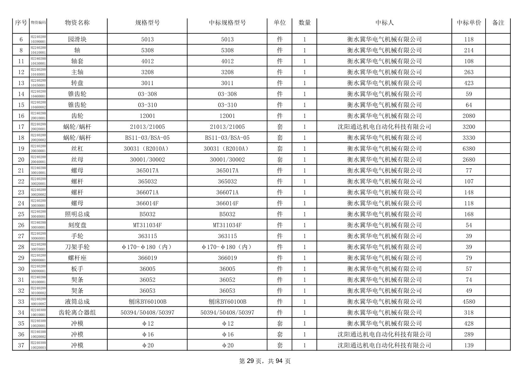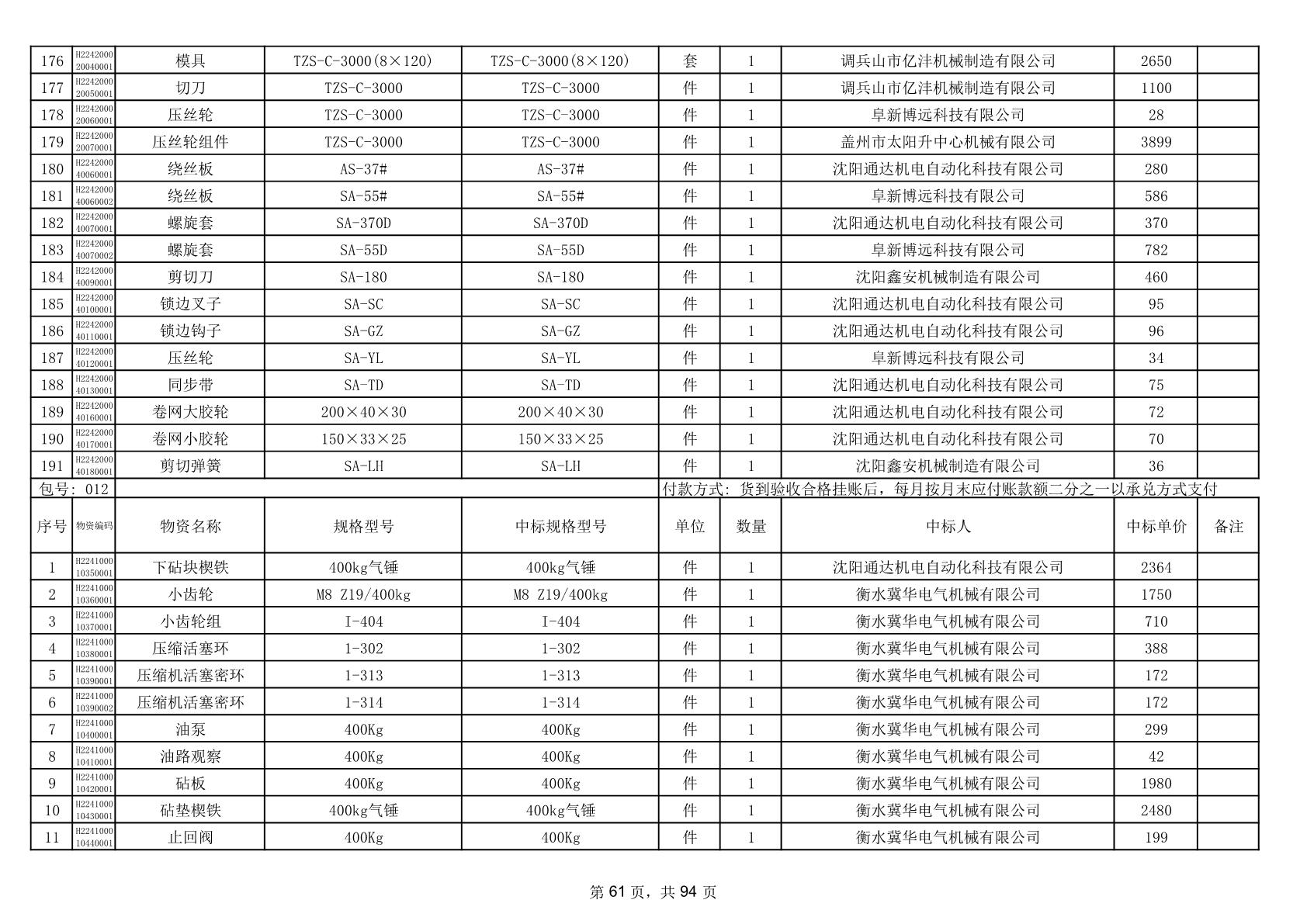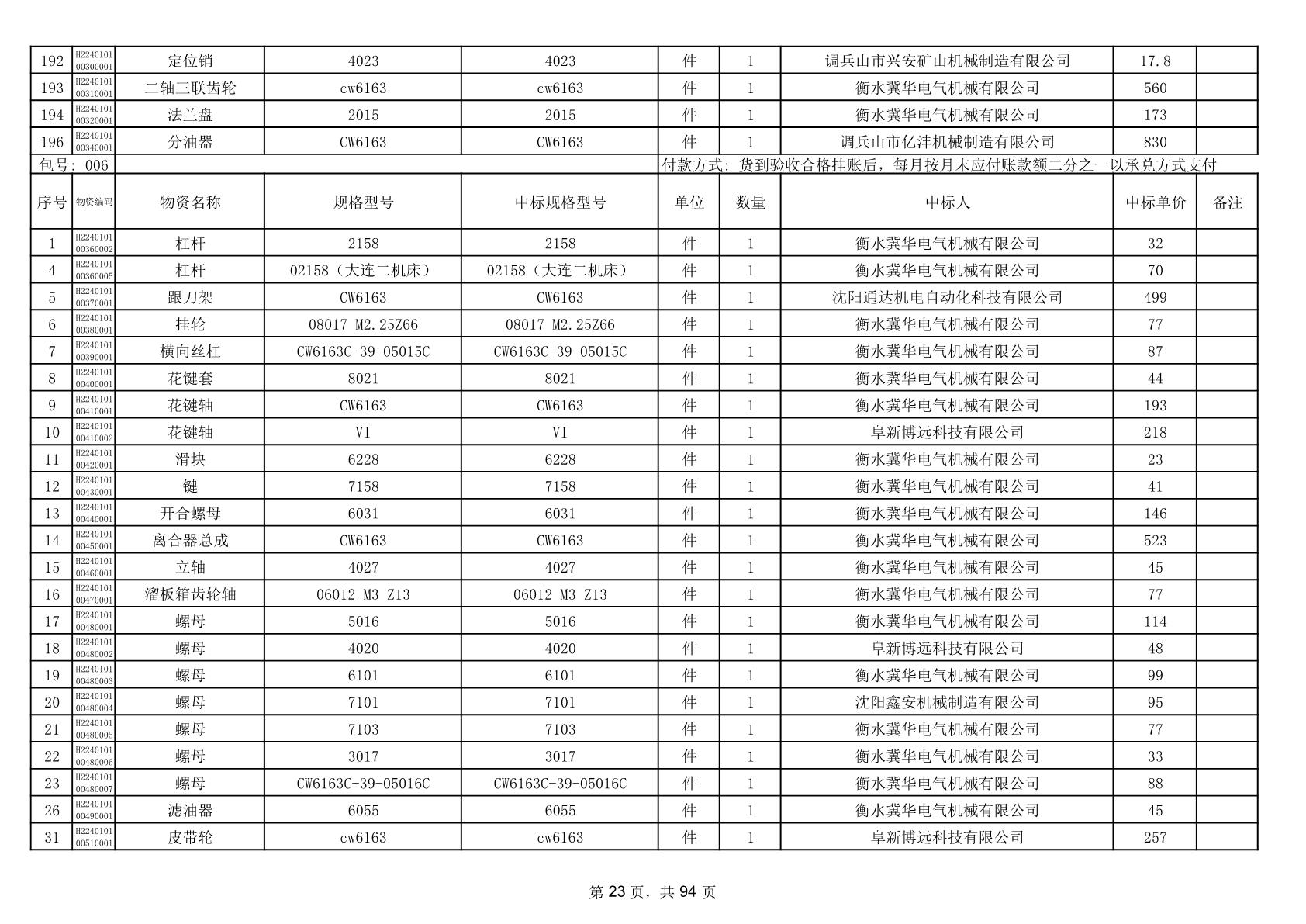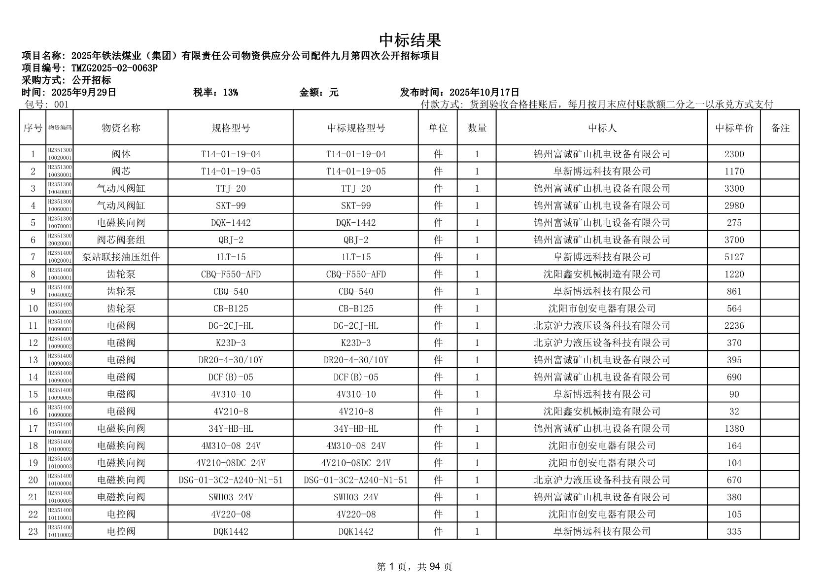 2025年9月29日配件中标结果公告(0063P)