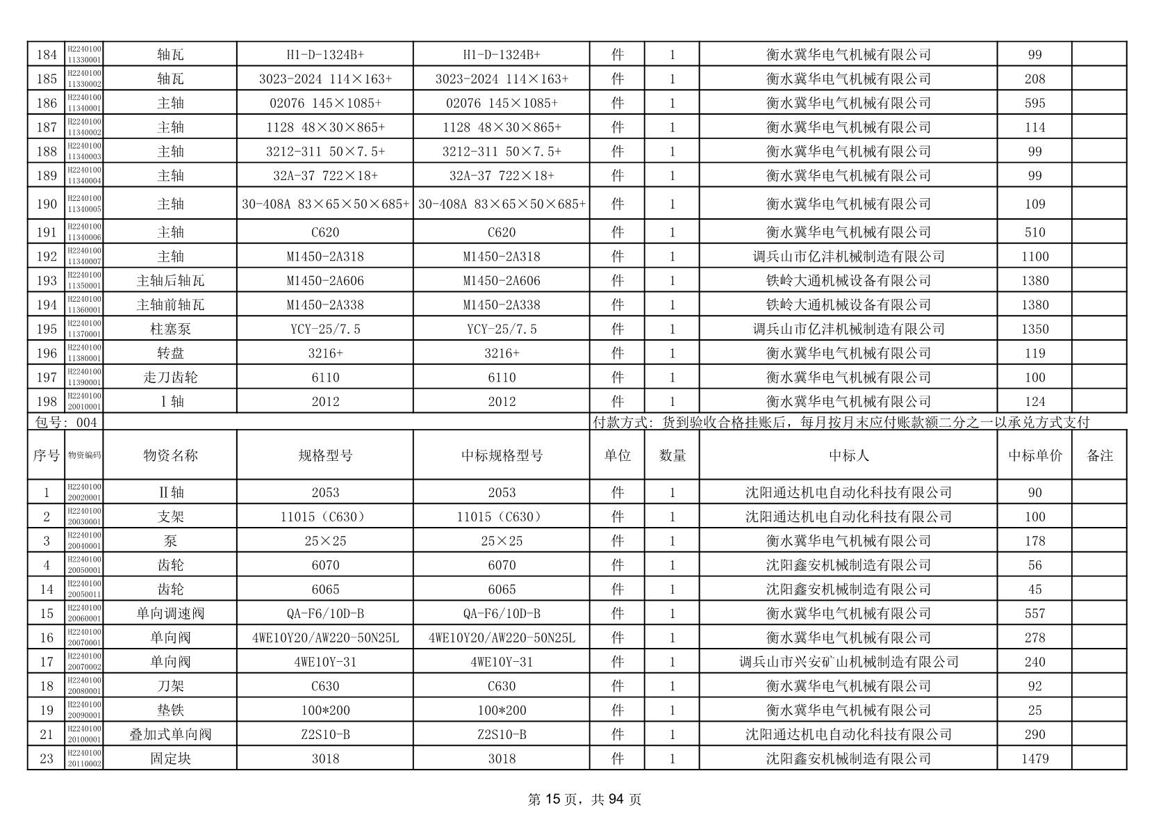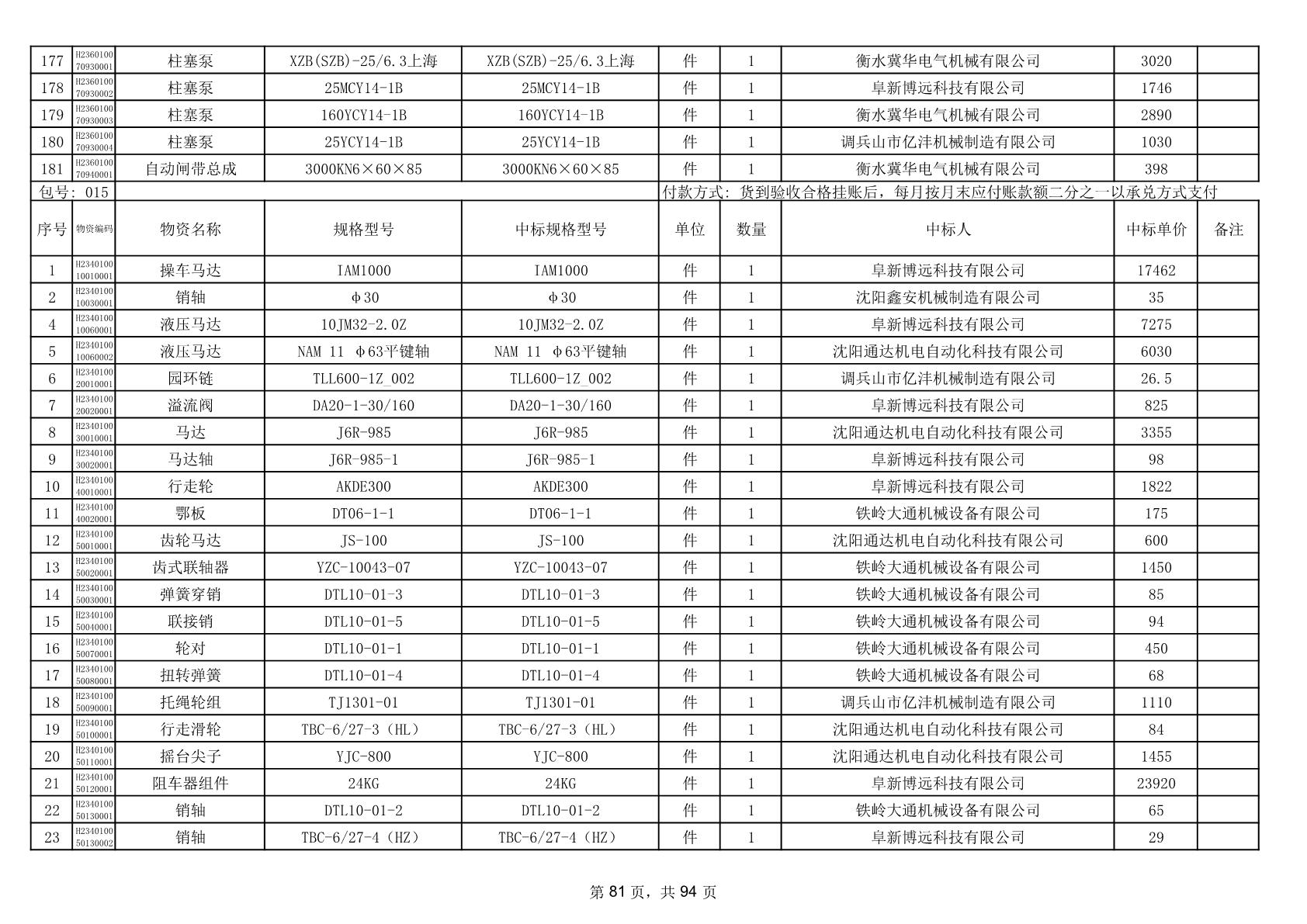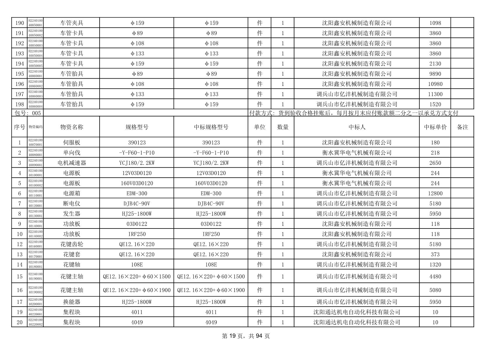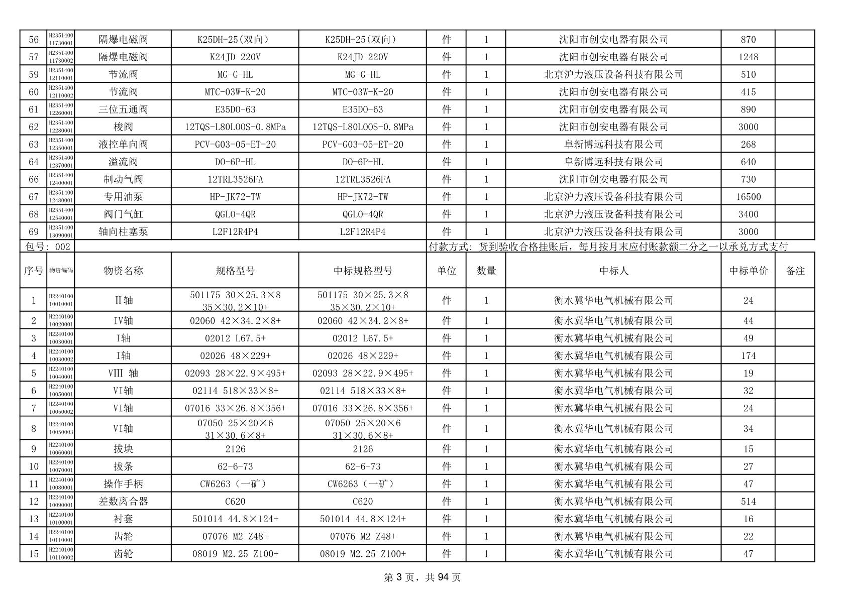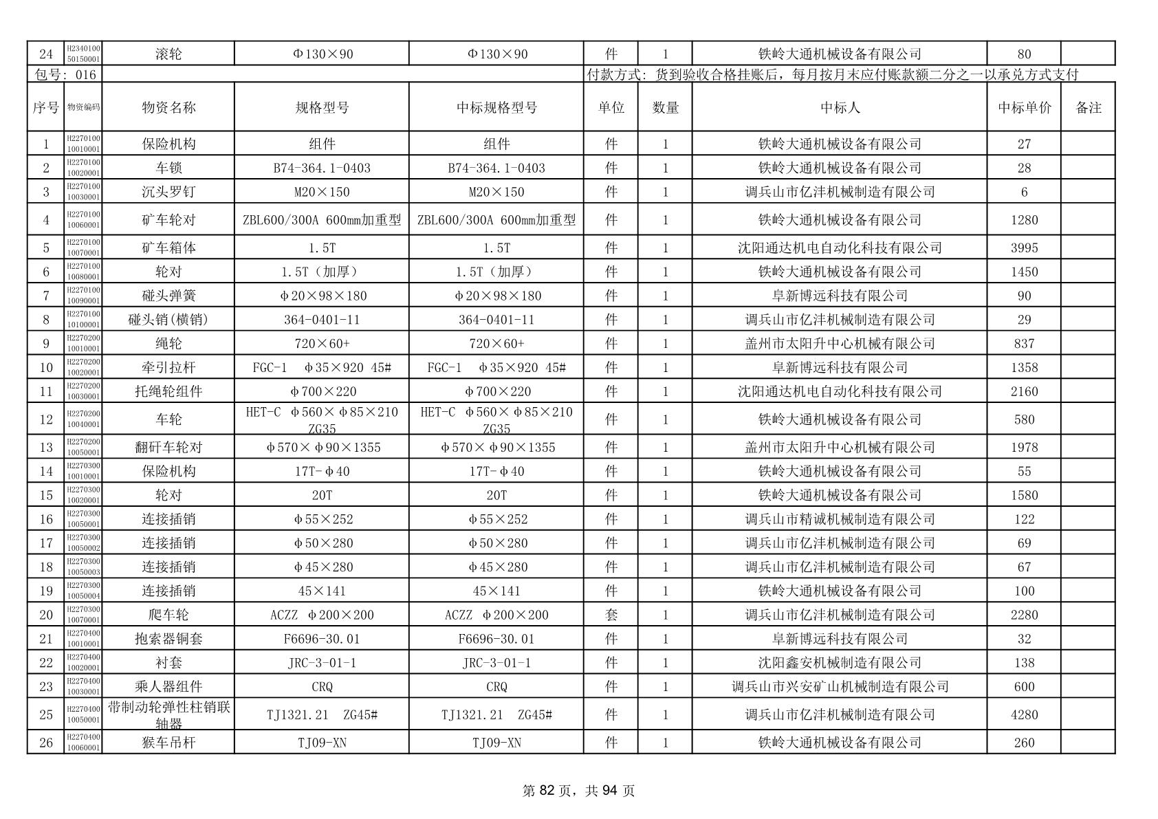 2025年9月29日配件中标结果公告(0063P)