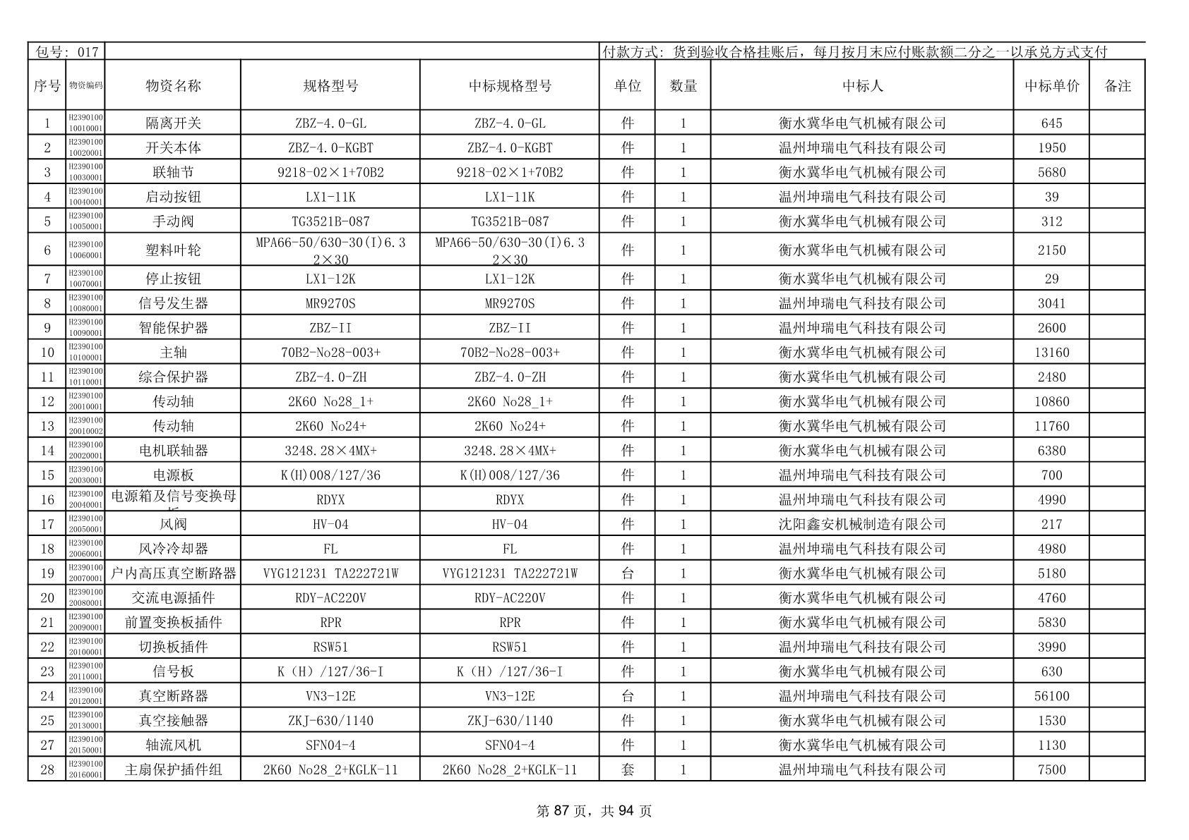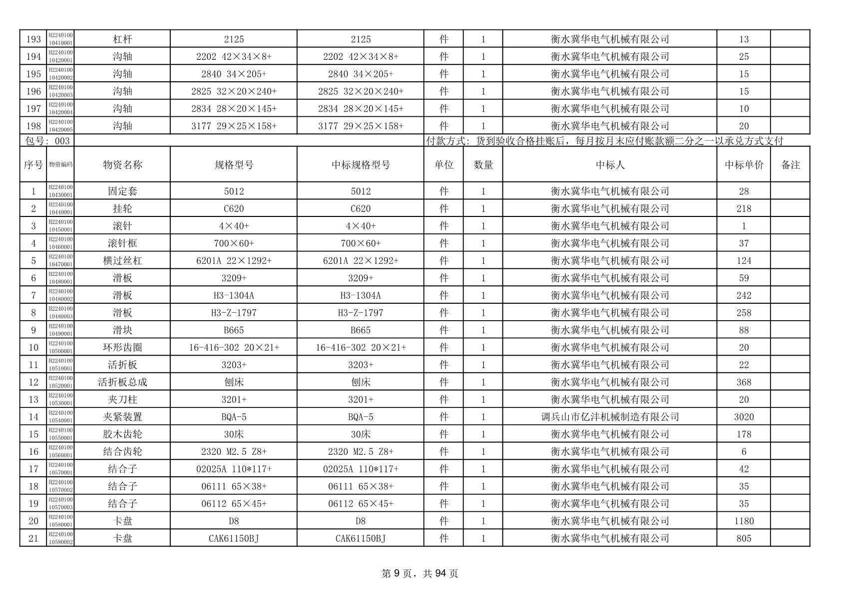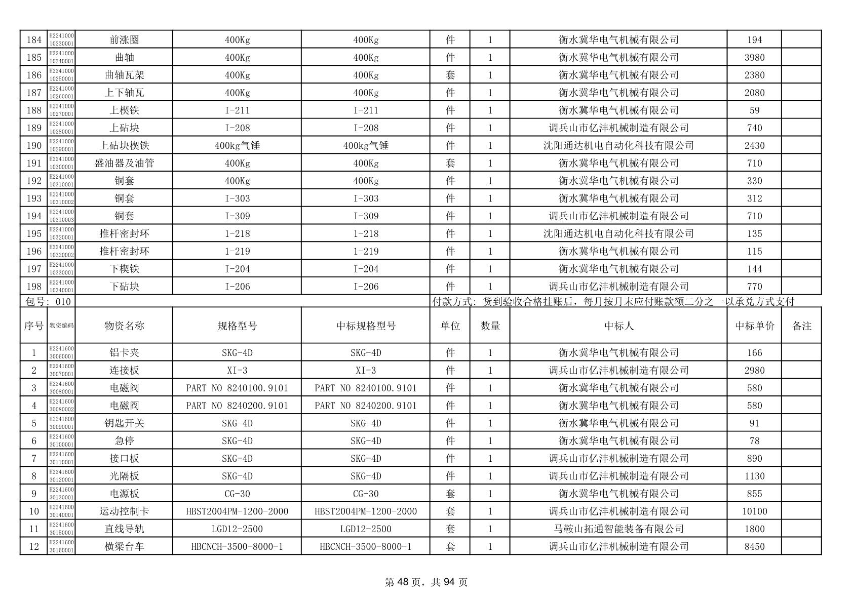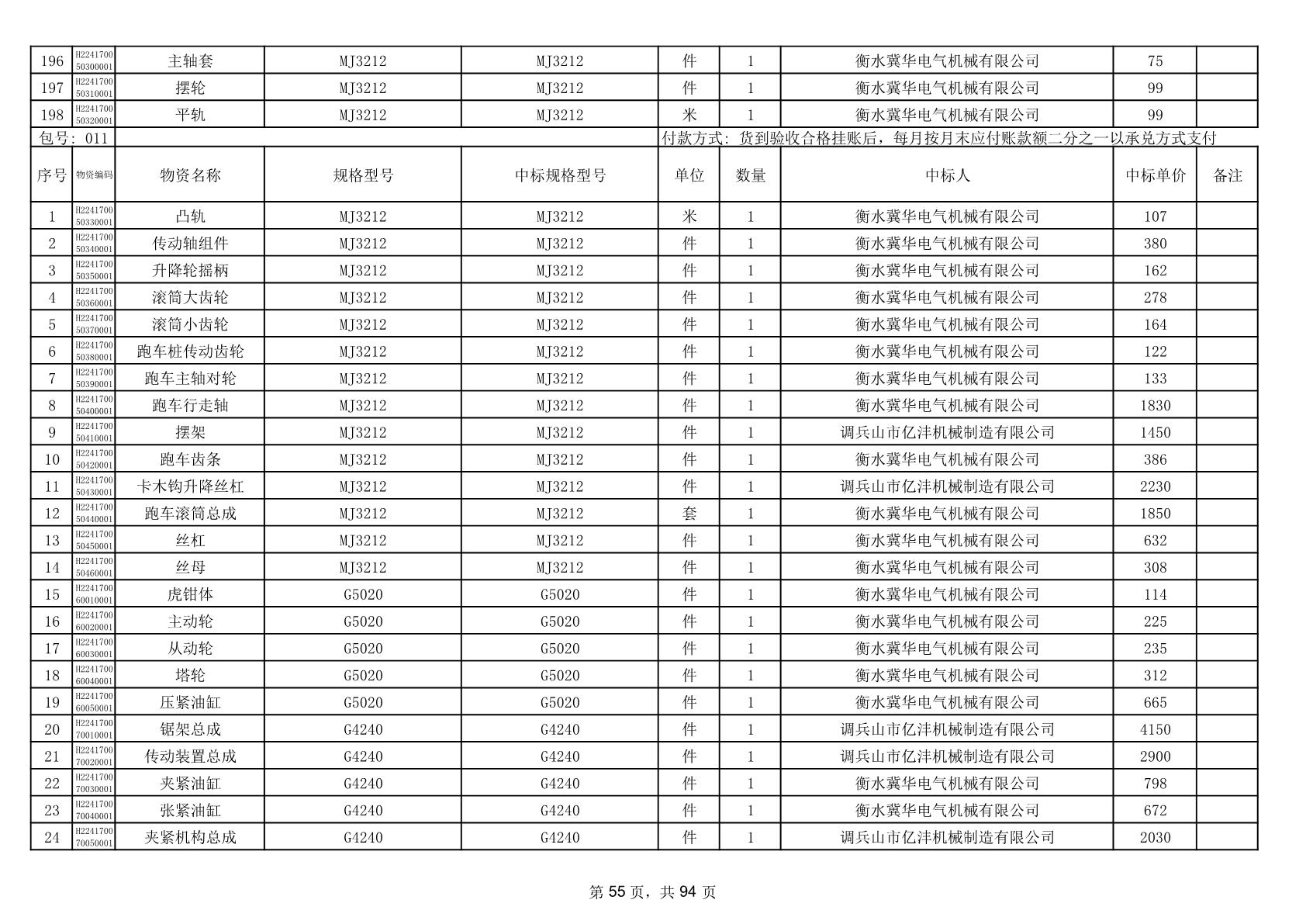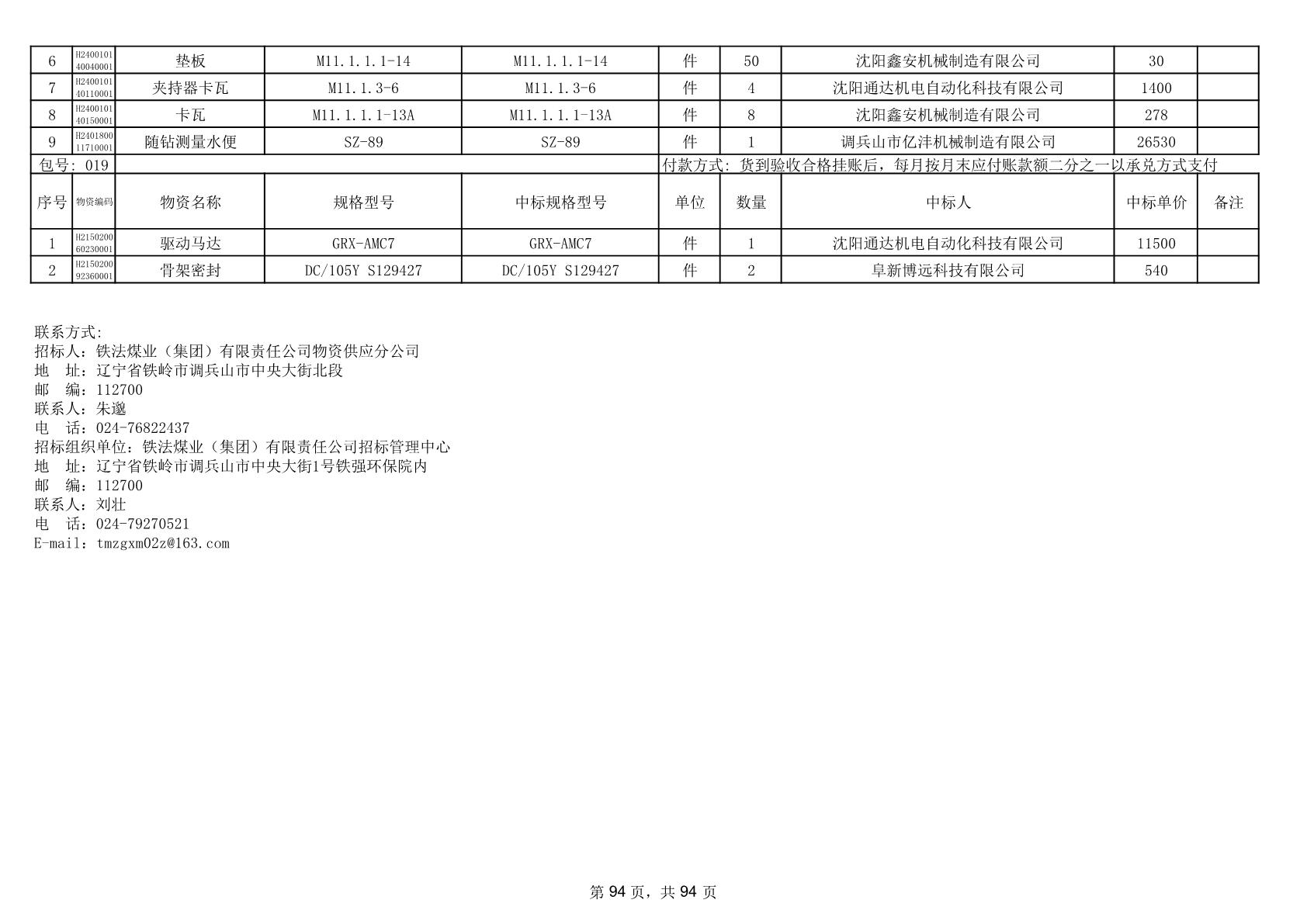 2025年9月29日配件中标结果公告(0063P)