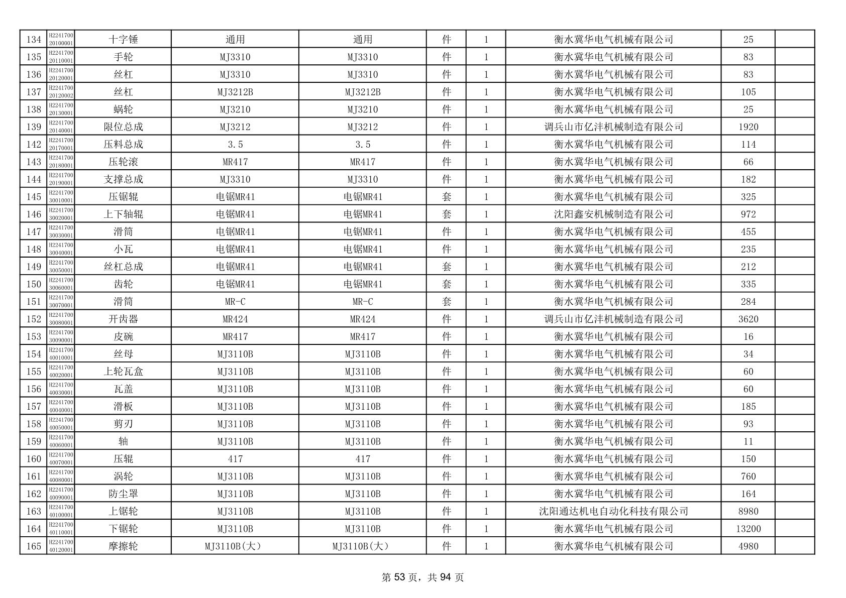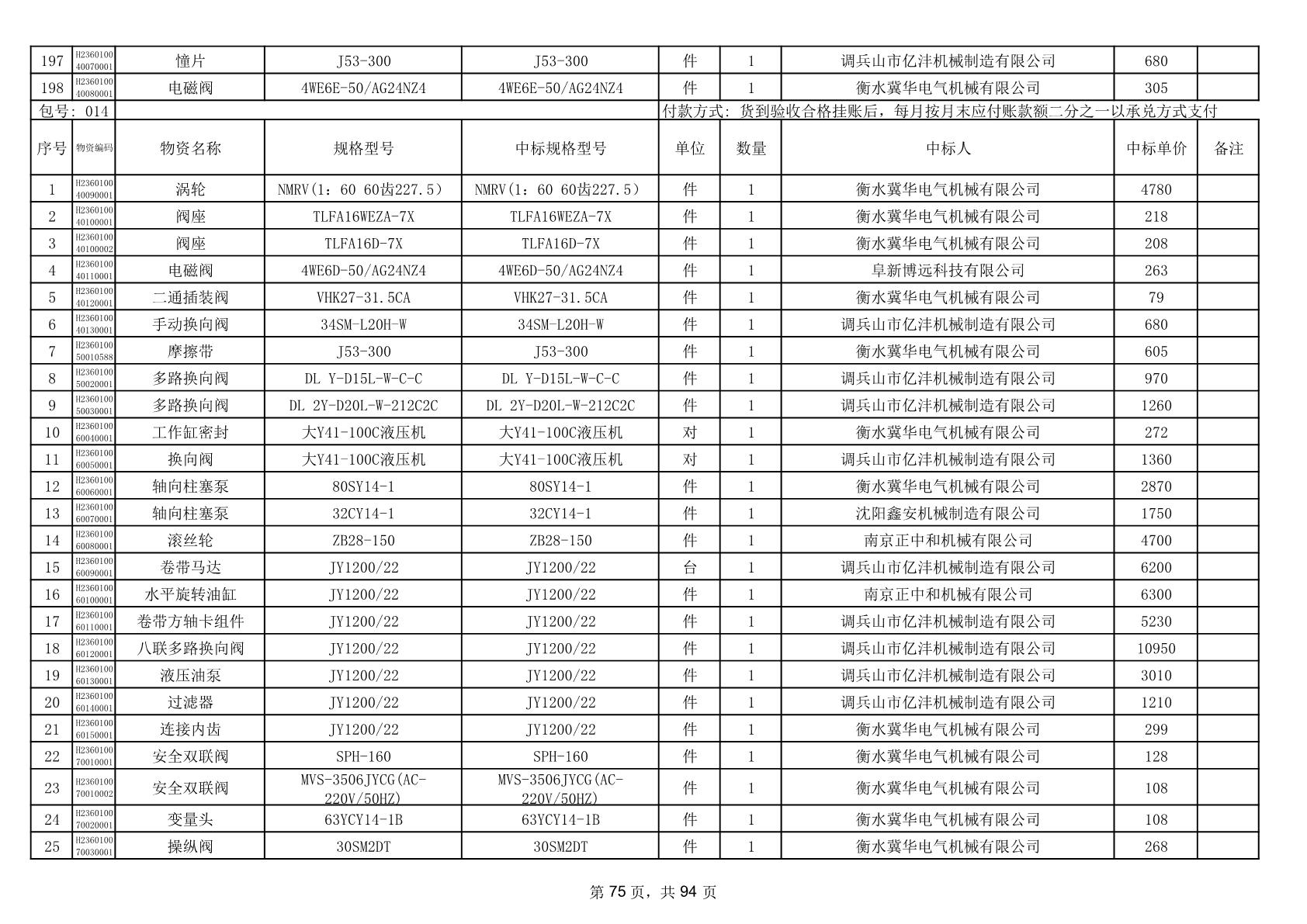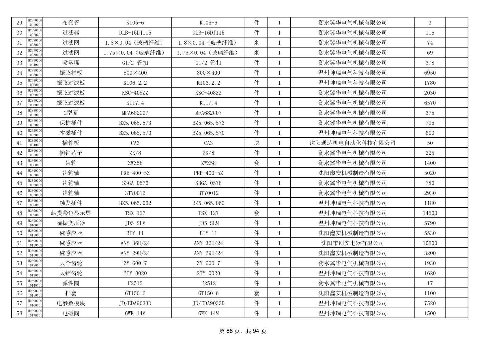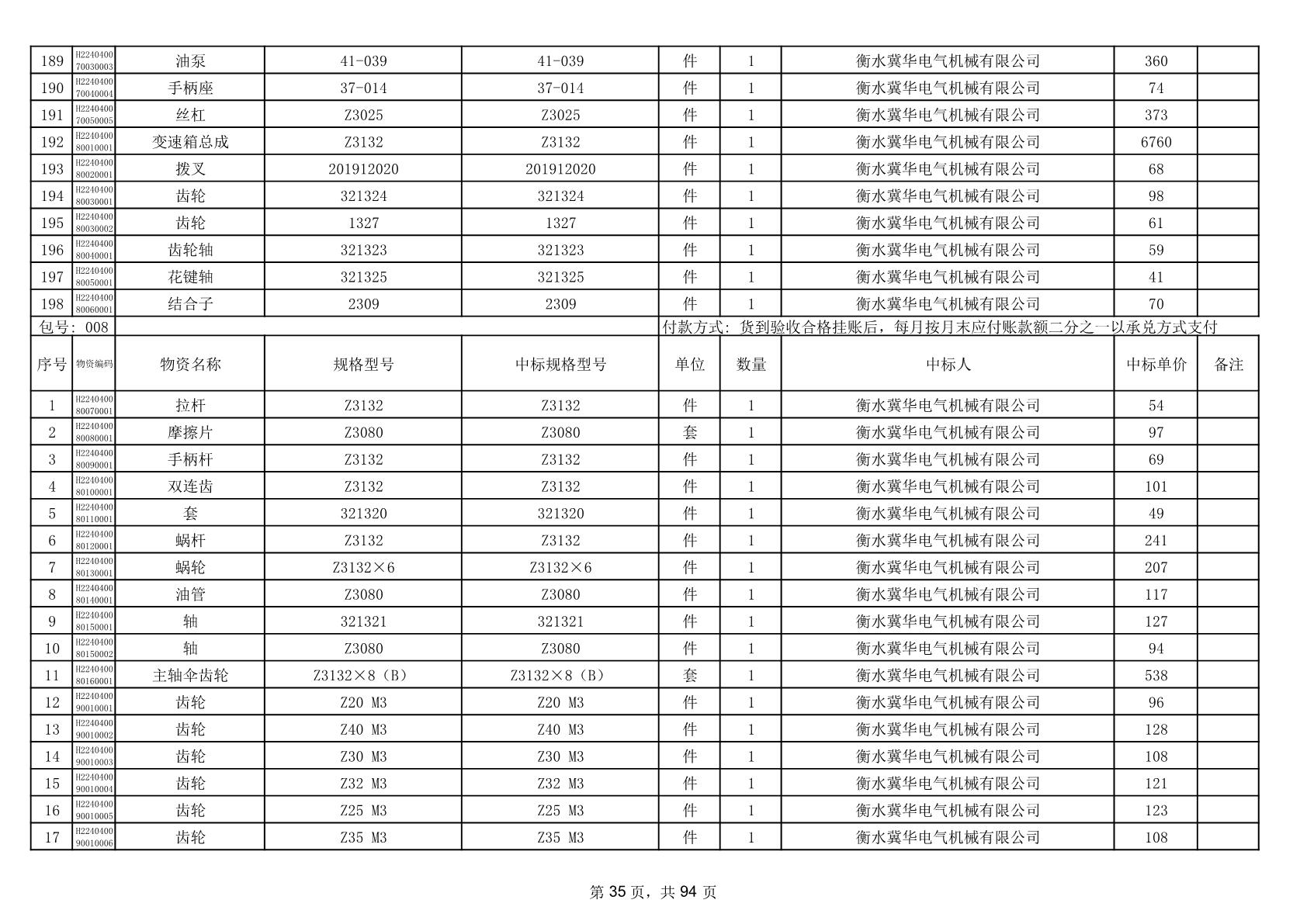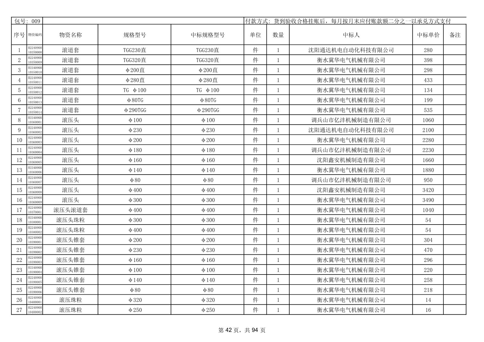 2025年9月29日配件中标结果公告(0063P)