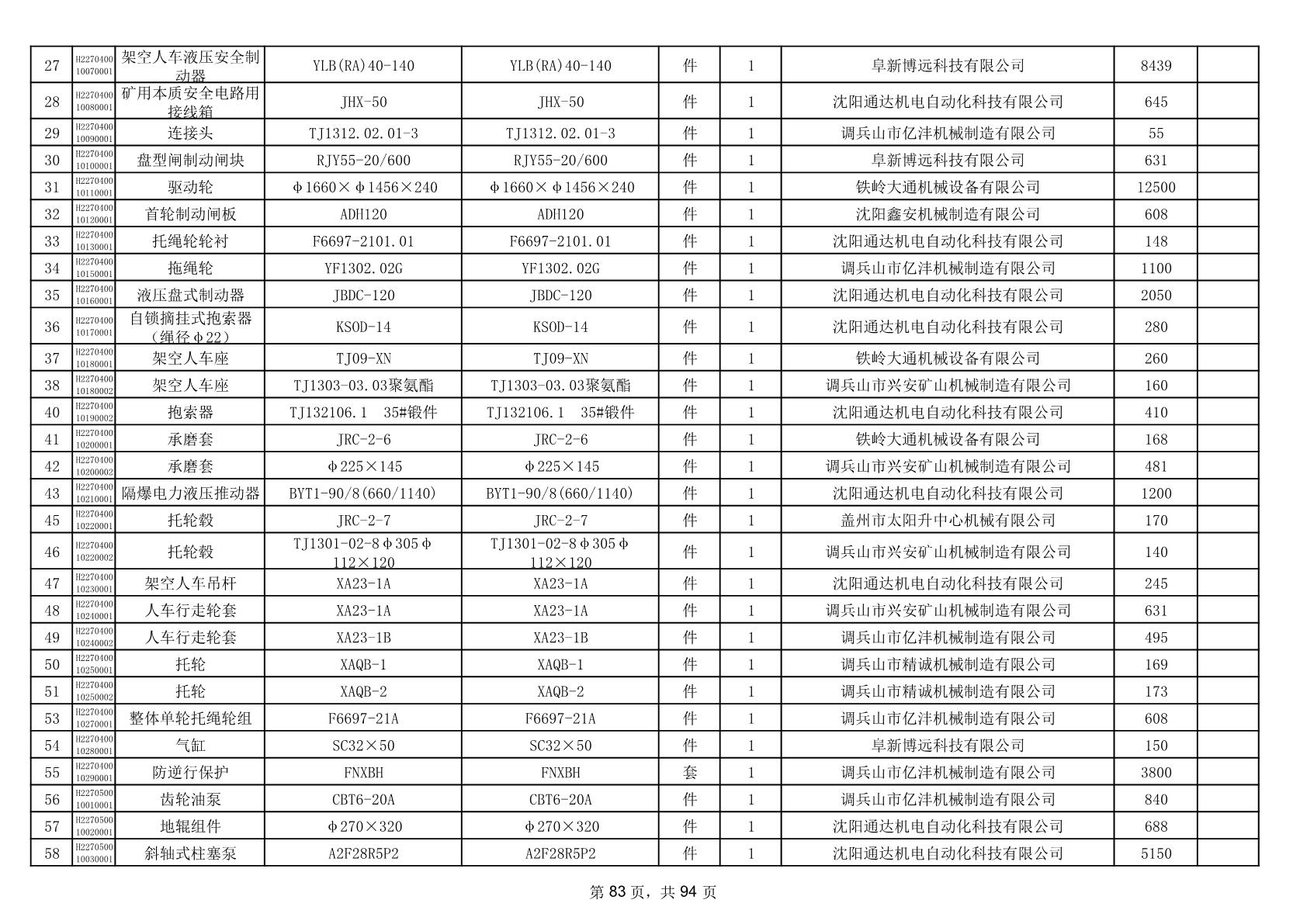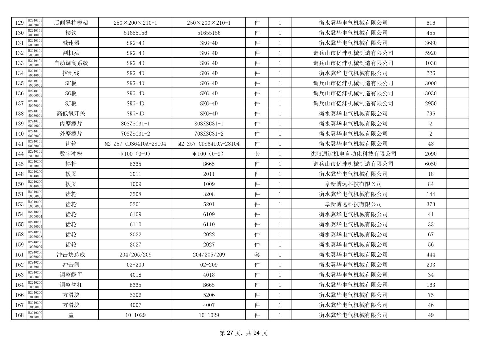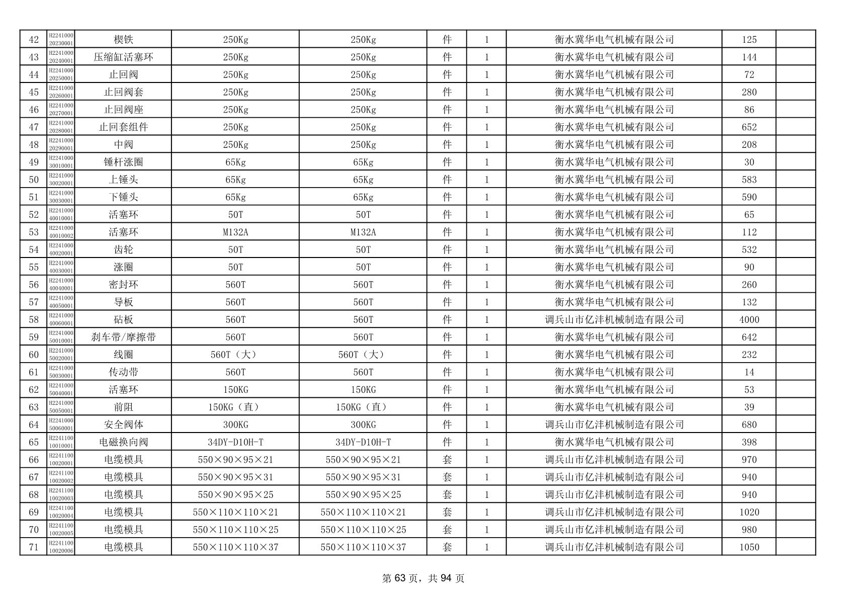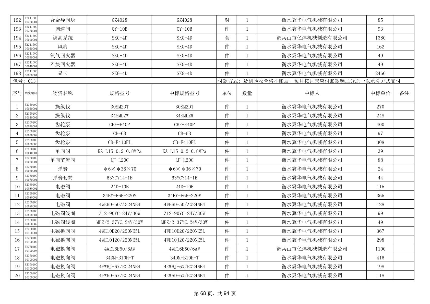 2025年9月29日配件中标结果公告(0063P)