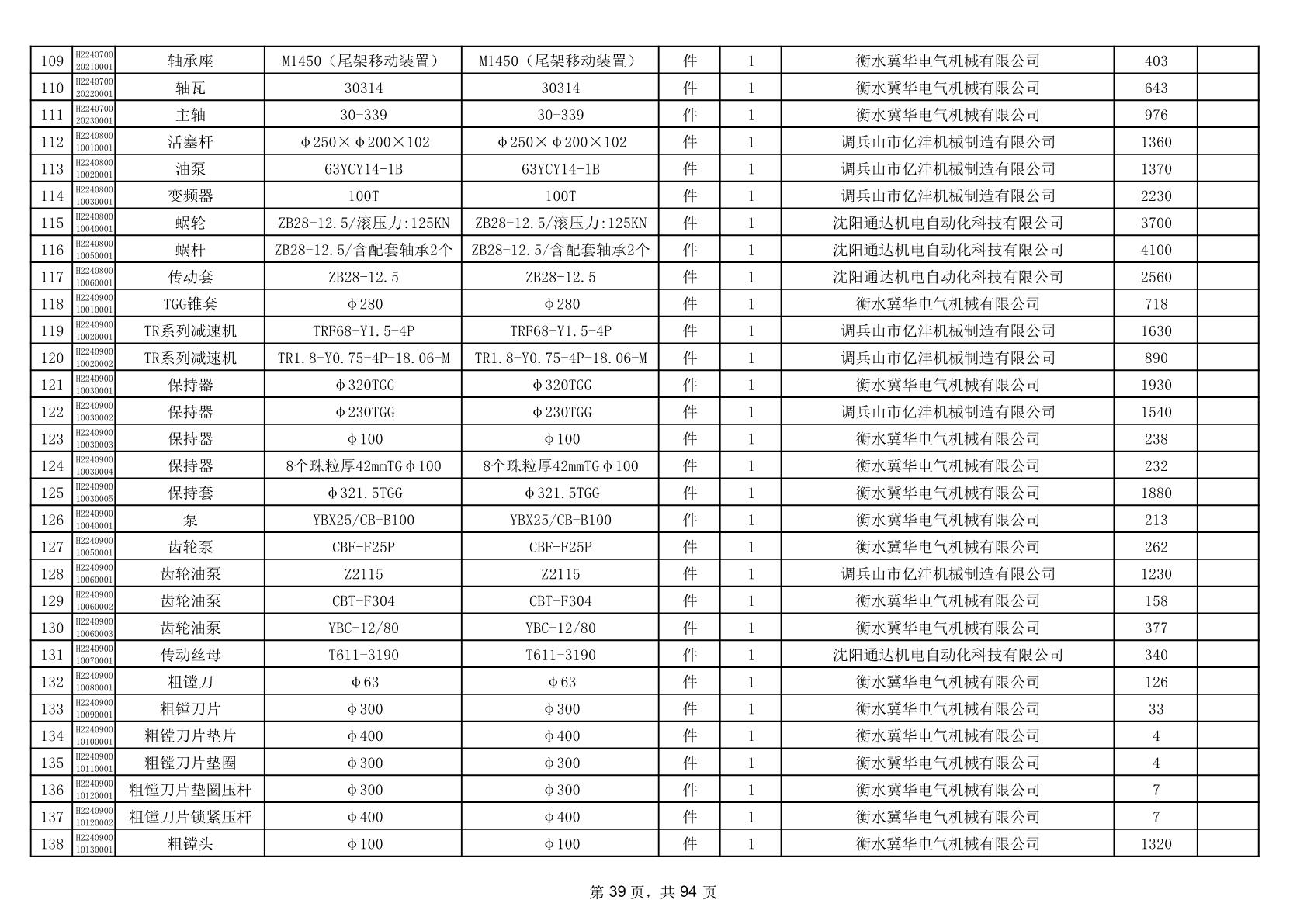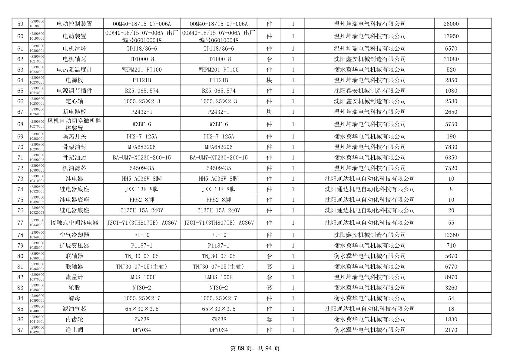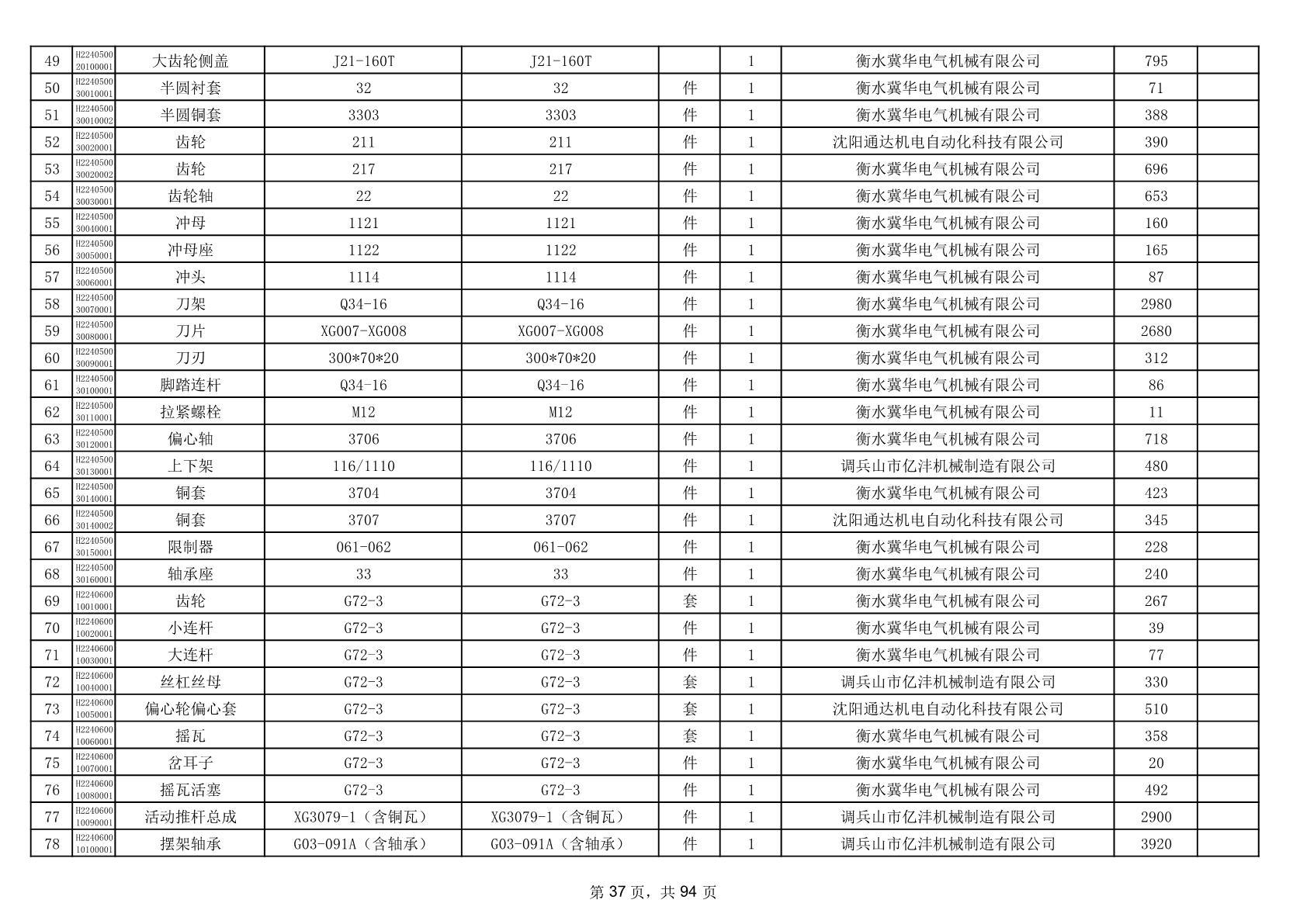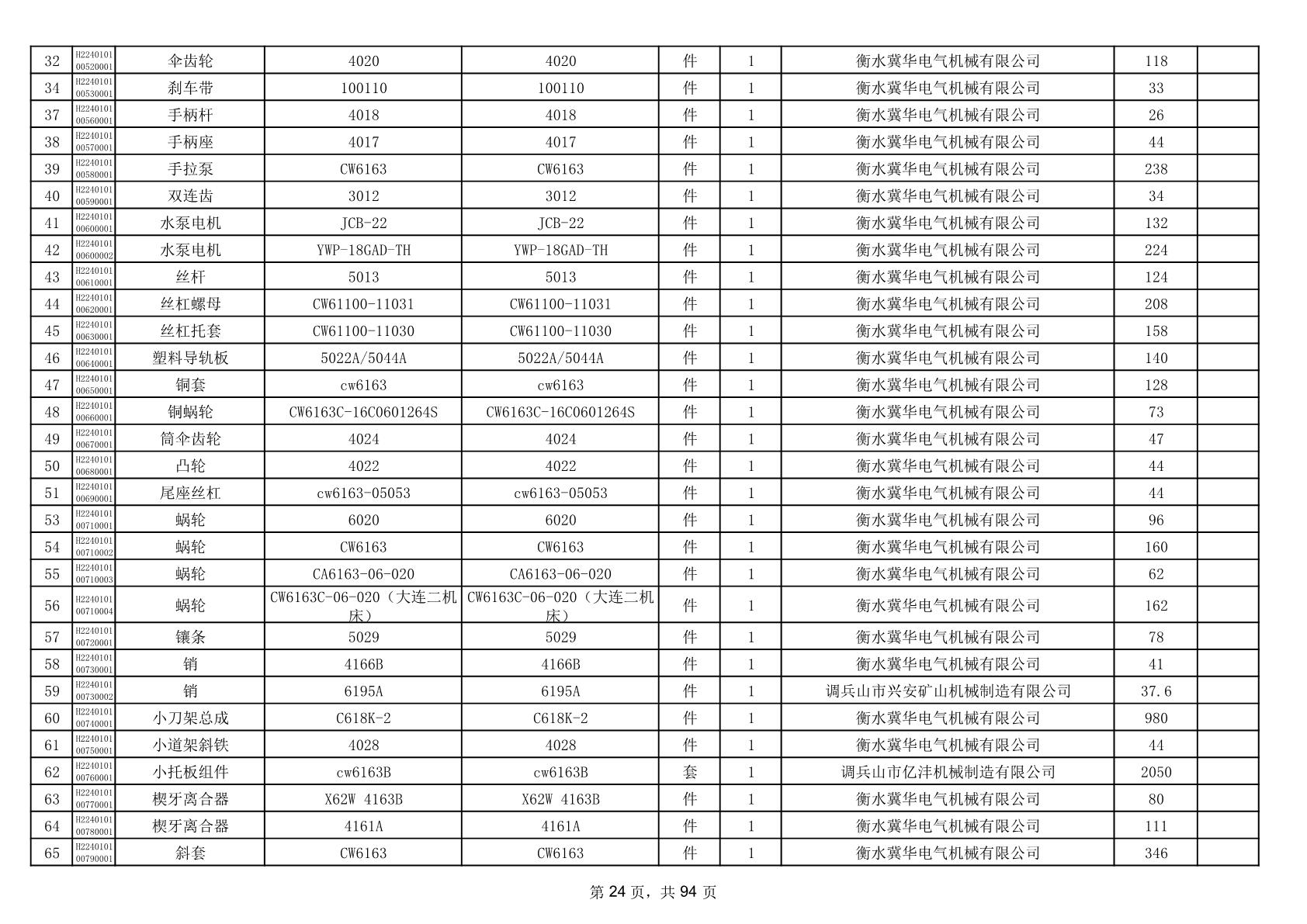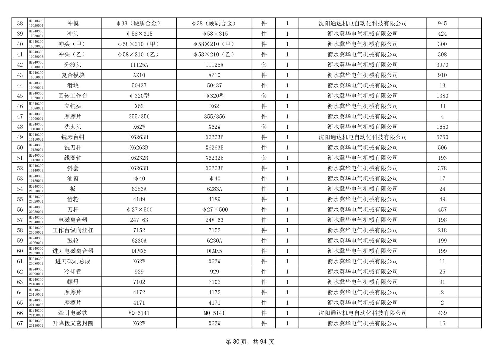 2025年9月29日配件中标结果公告(0063P)