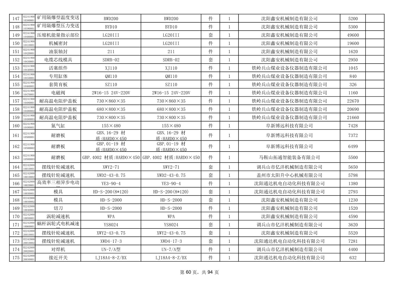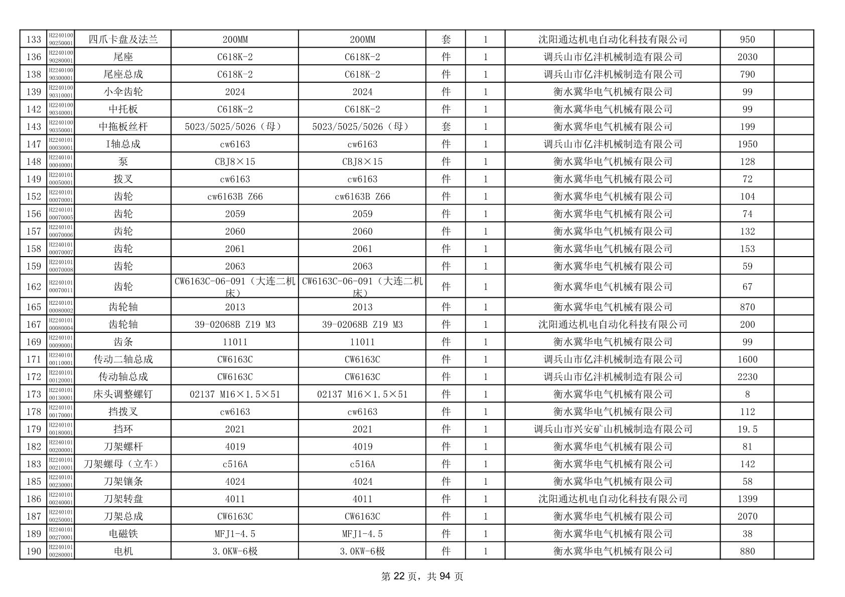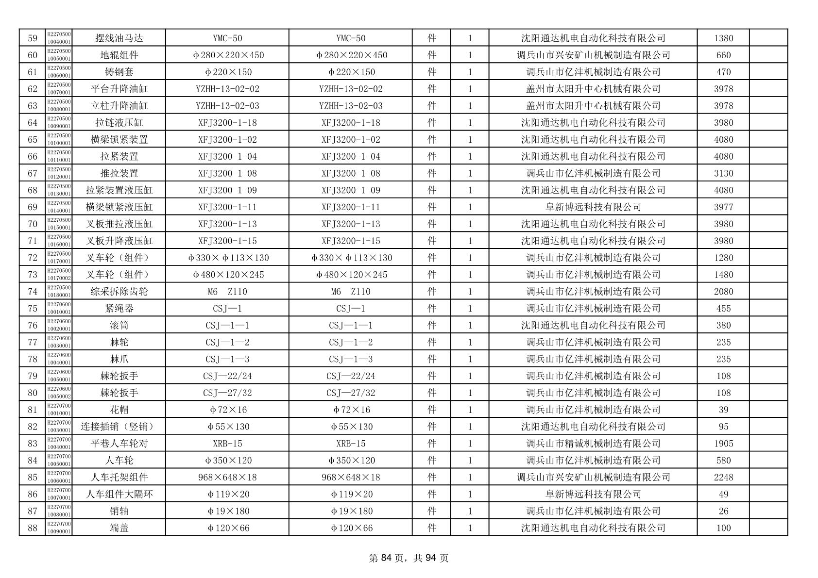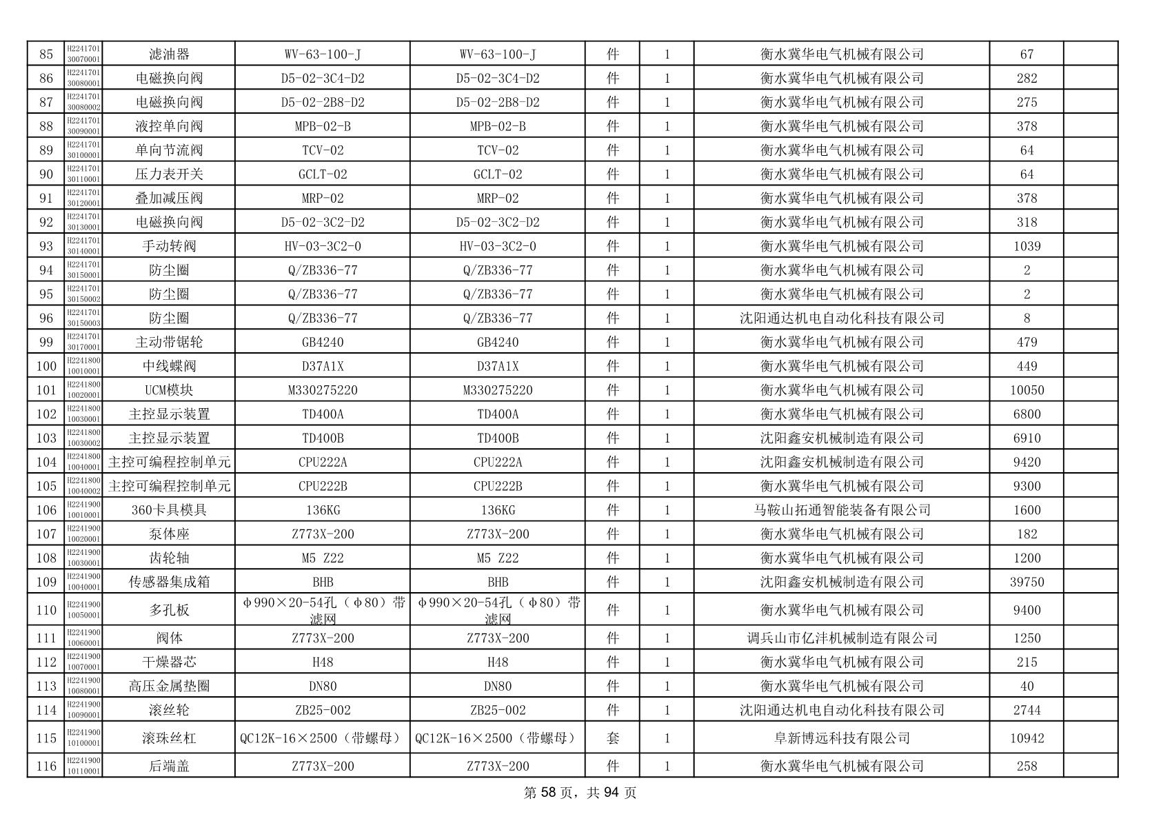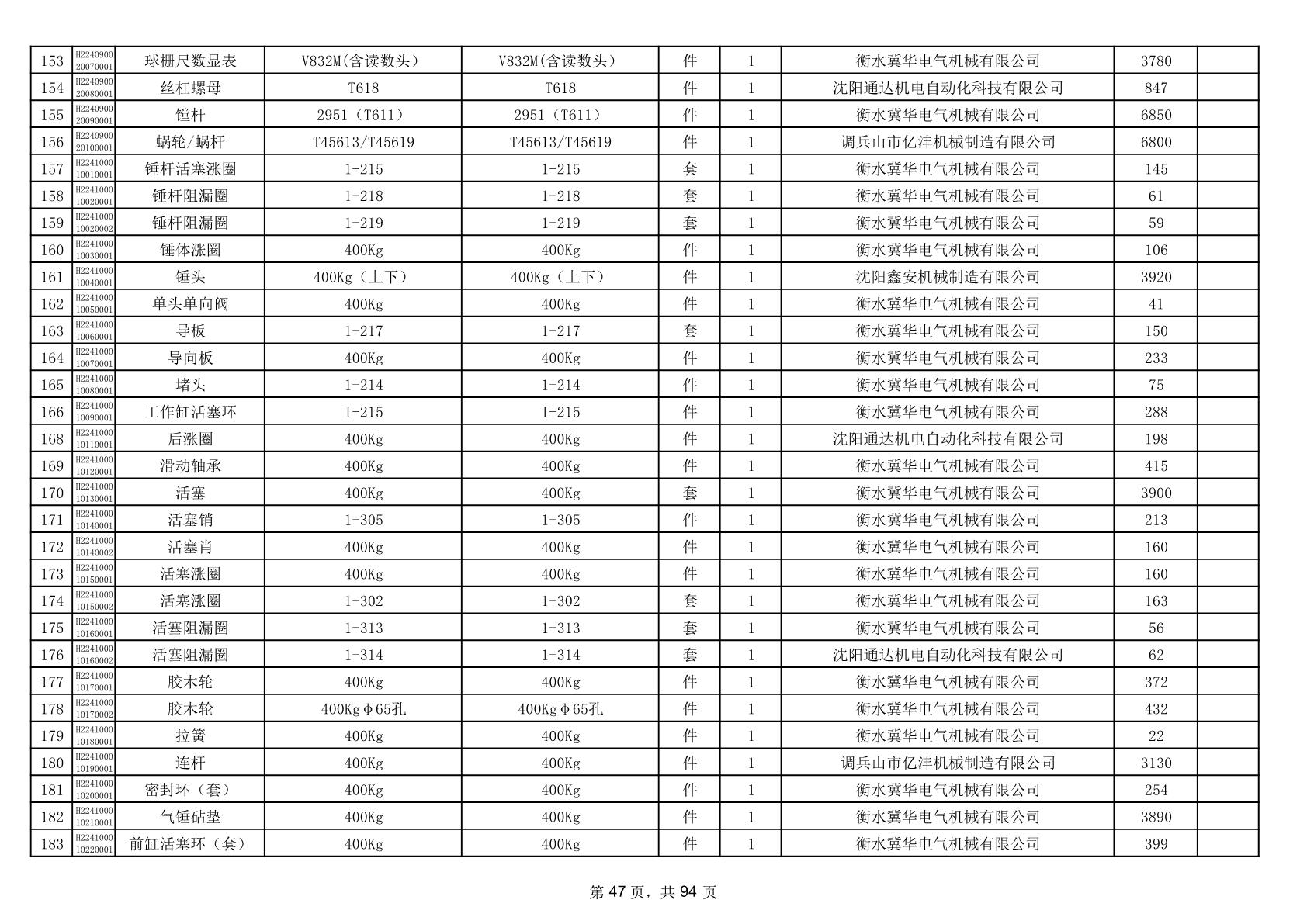2025年9月29日配件中标结果公告(0063P)
