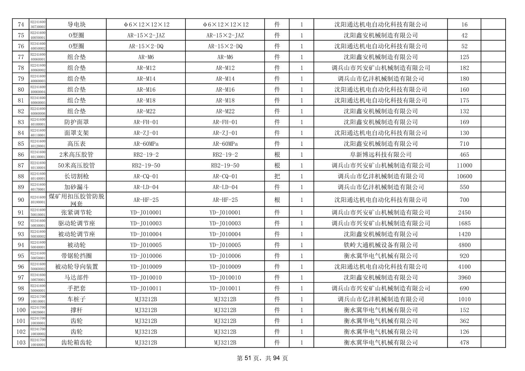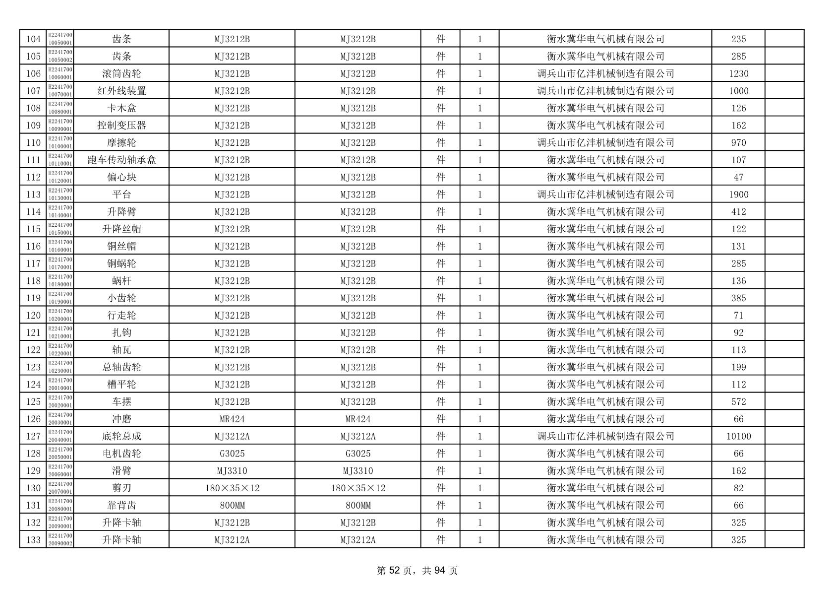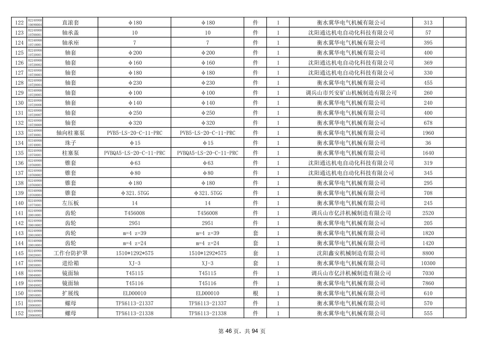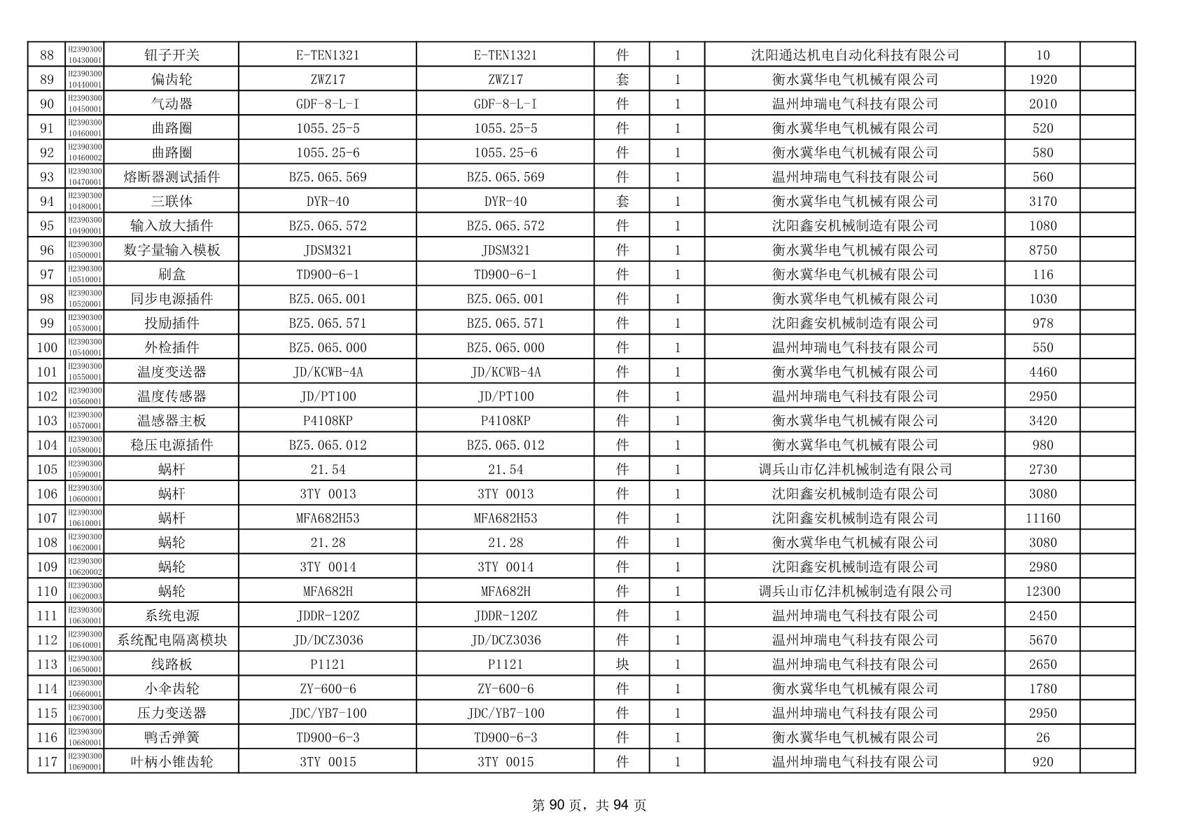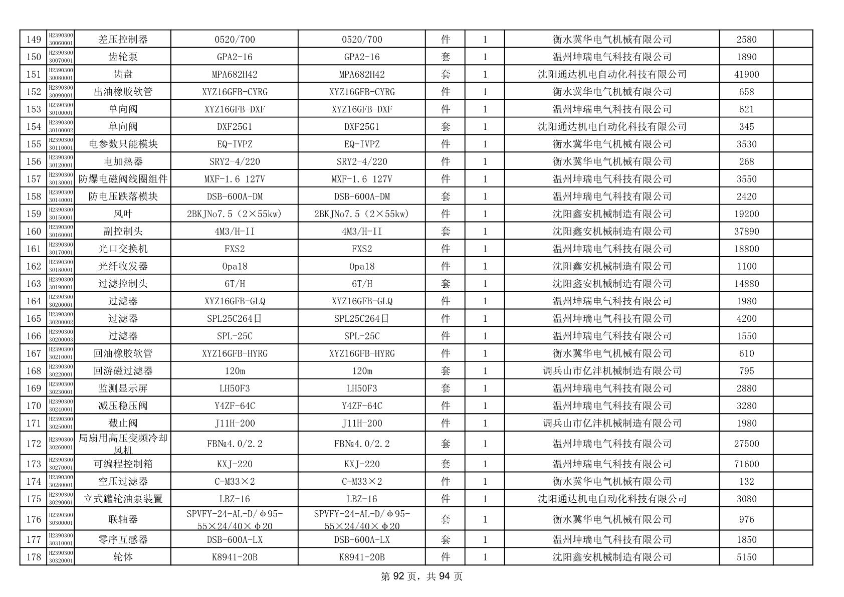 2025年9月29日配件中标结果公告(0063P)