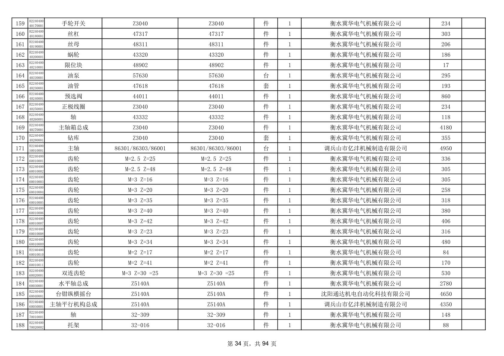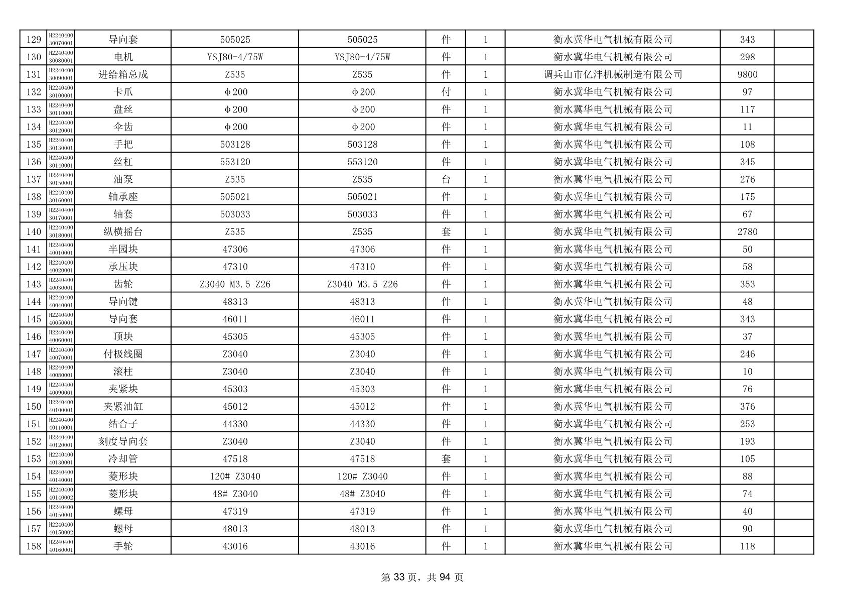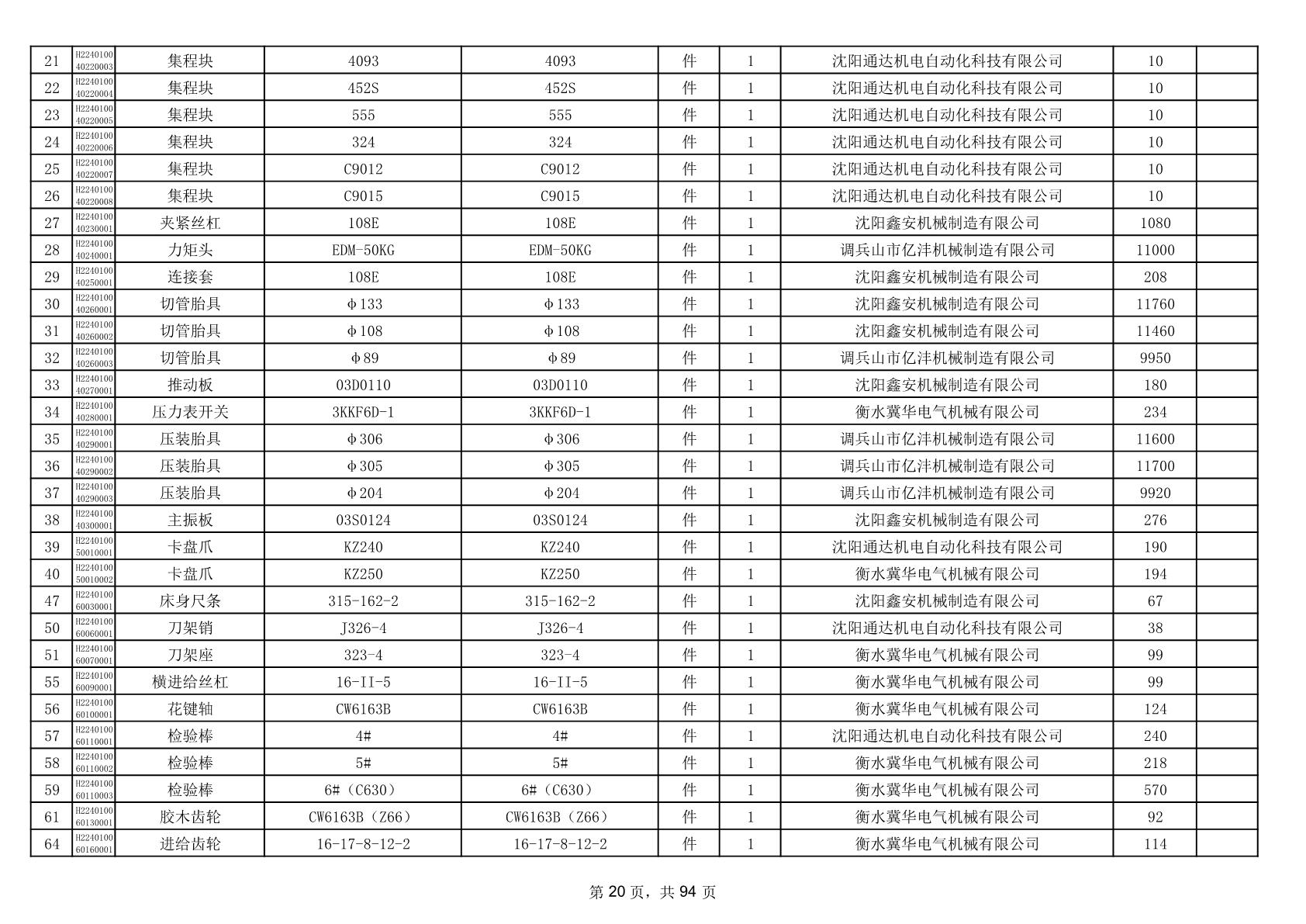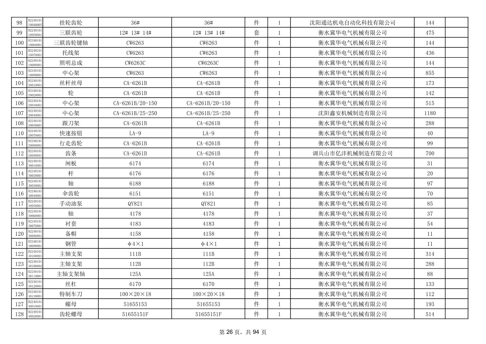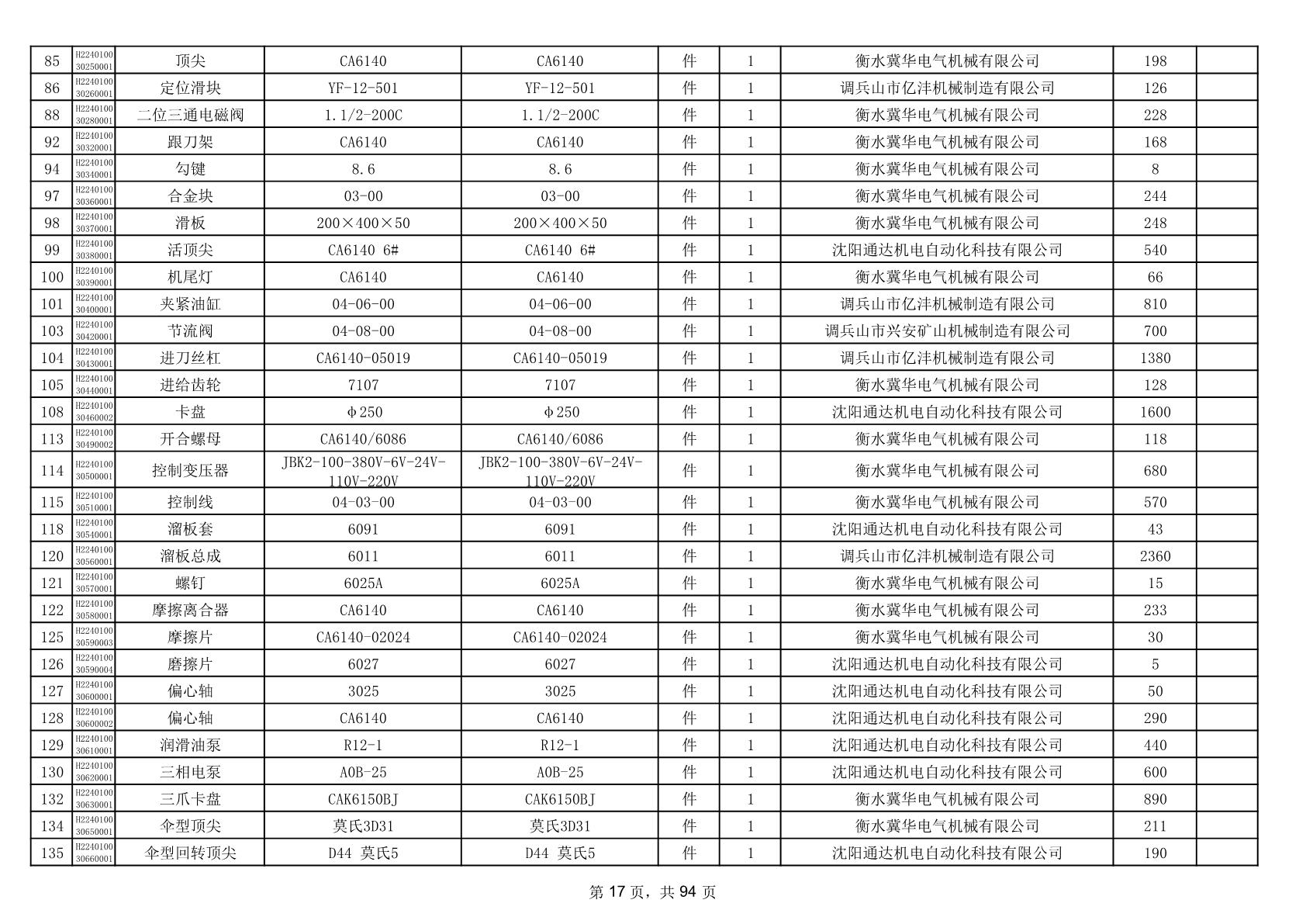 2025年9月29日配件中标结果公告(0063P)