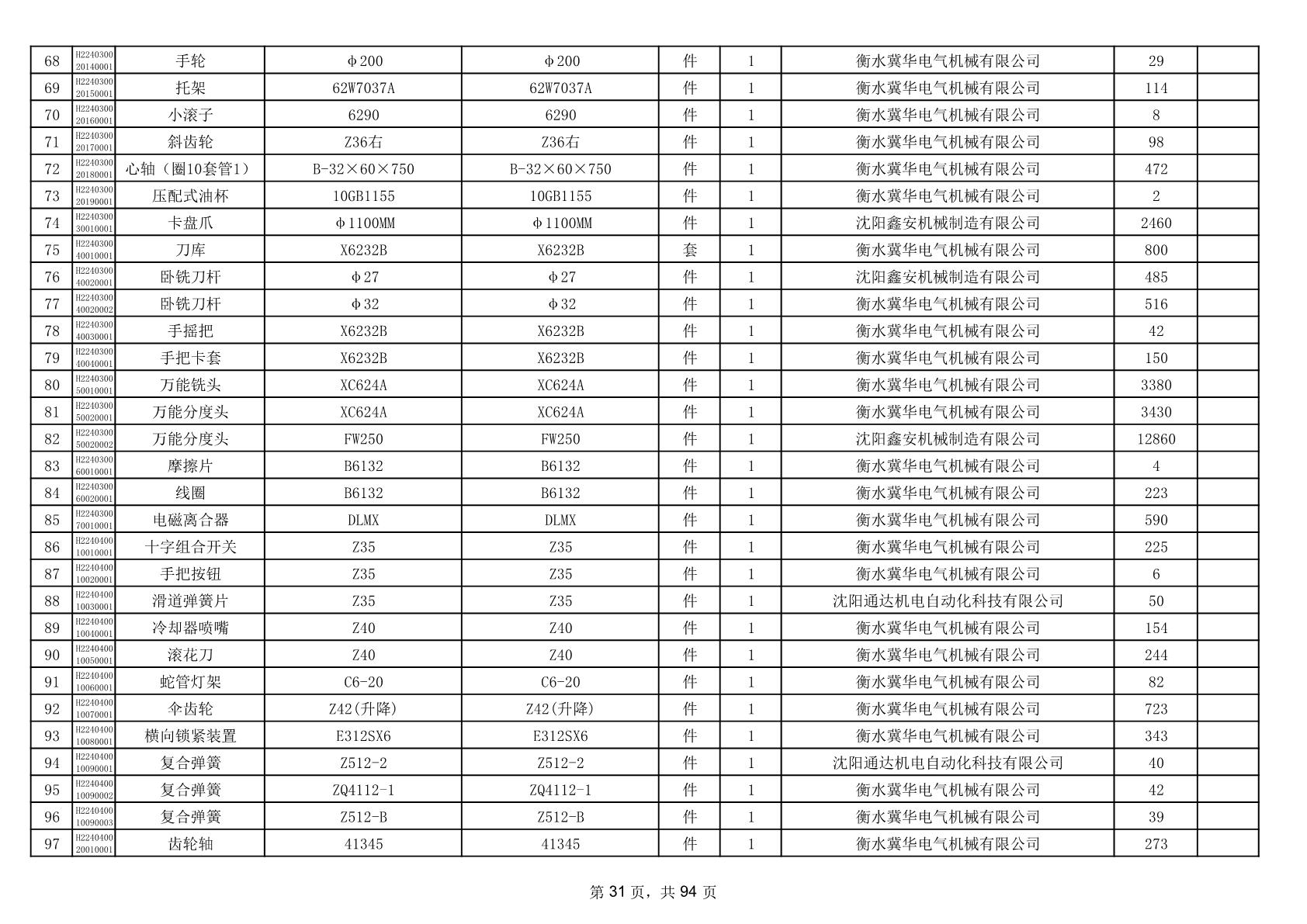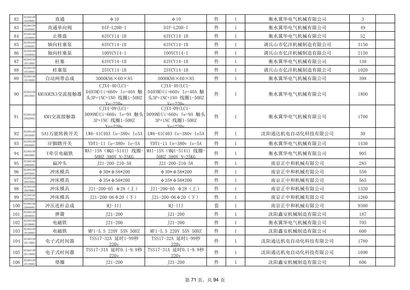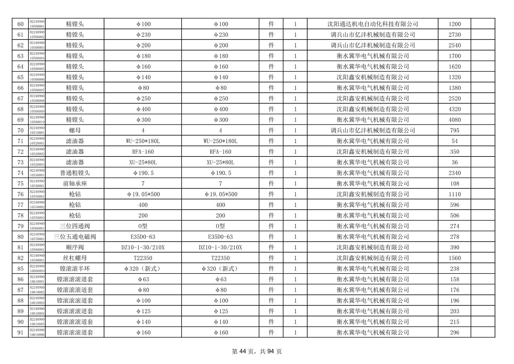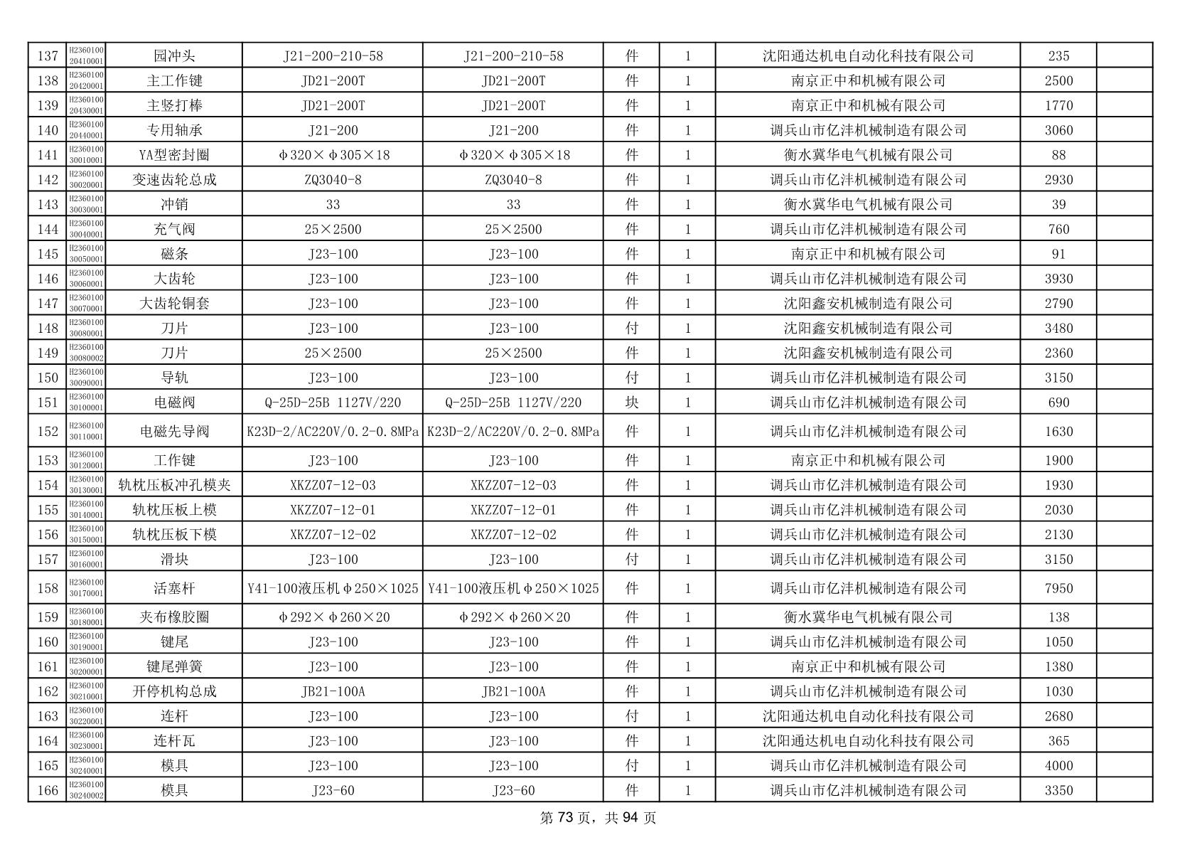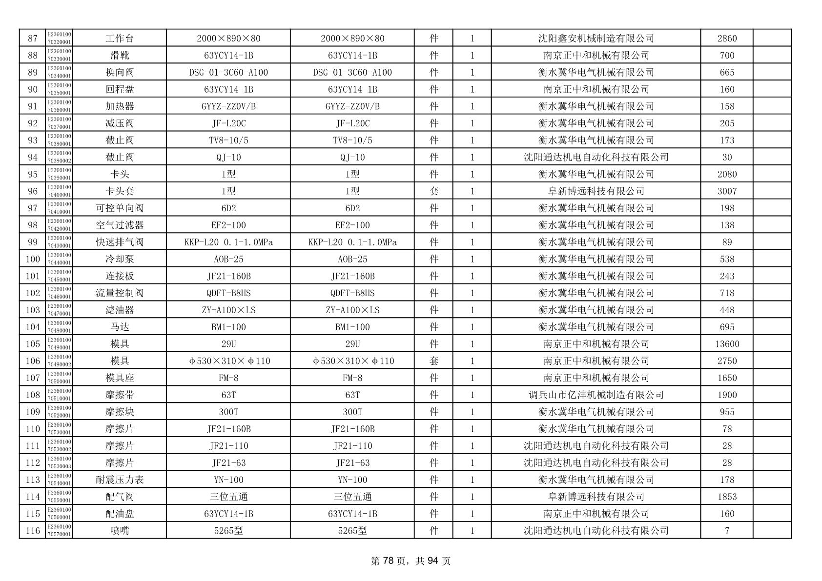 2025年9月29日配件中标结果公告(0063P)