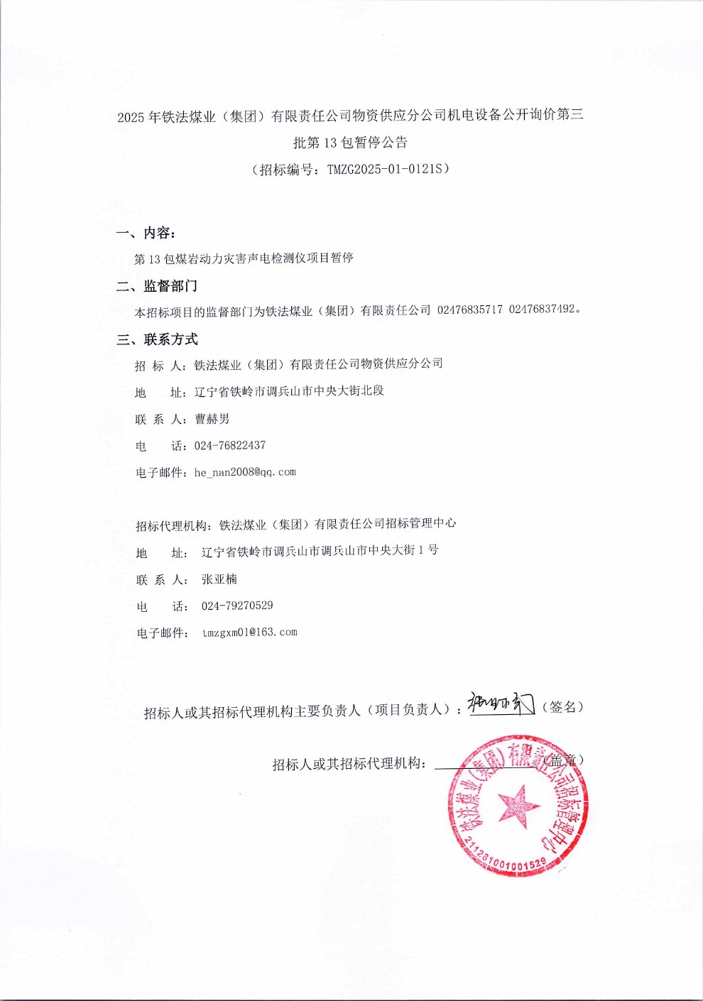 2025年10月23日机电设备公开询价第13包暂停公告(0121S)