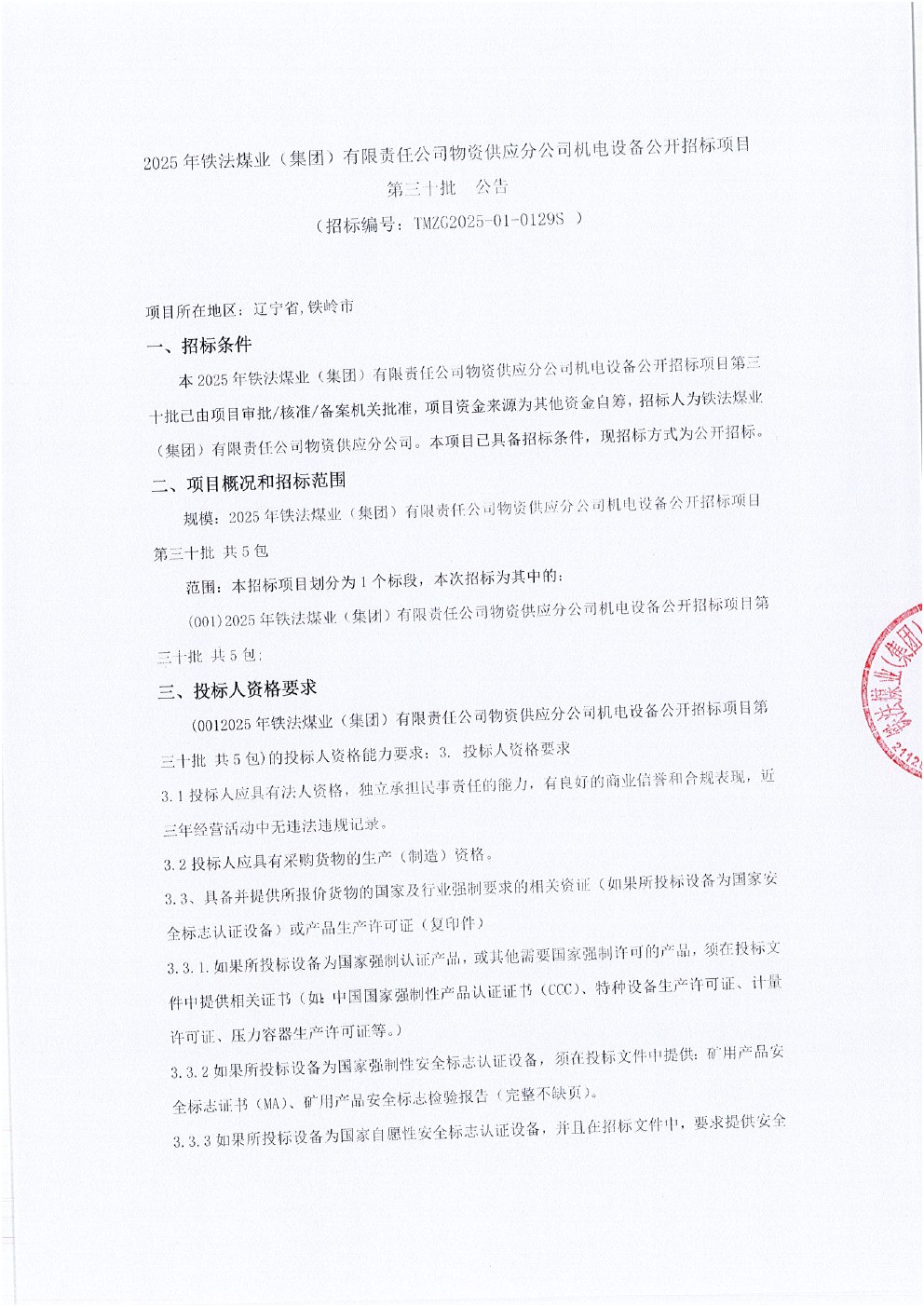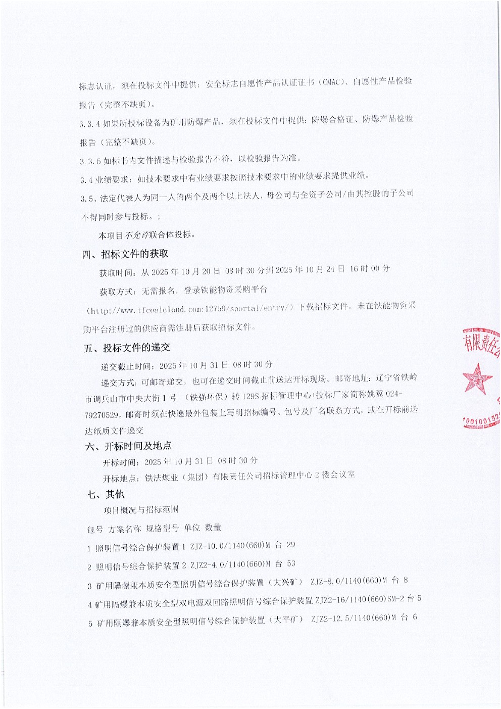 2025年10月31日设备第三十批公开招标公告