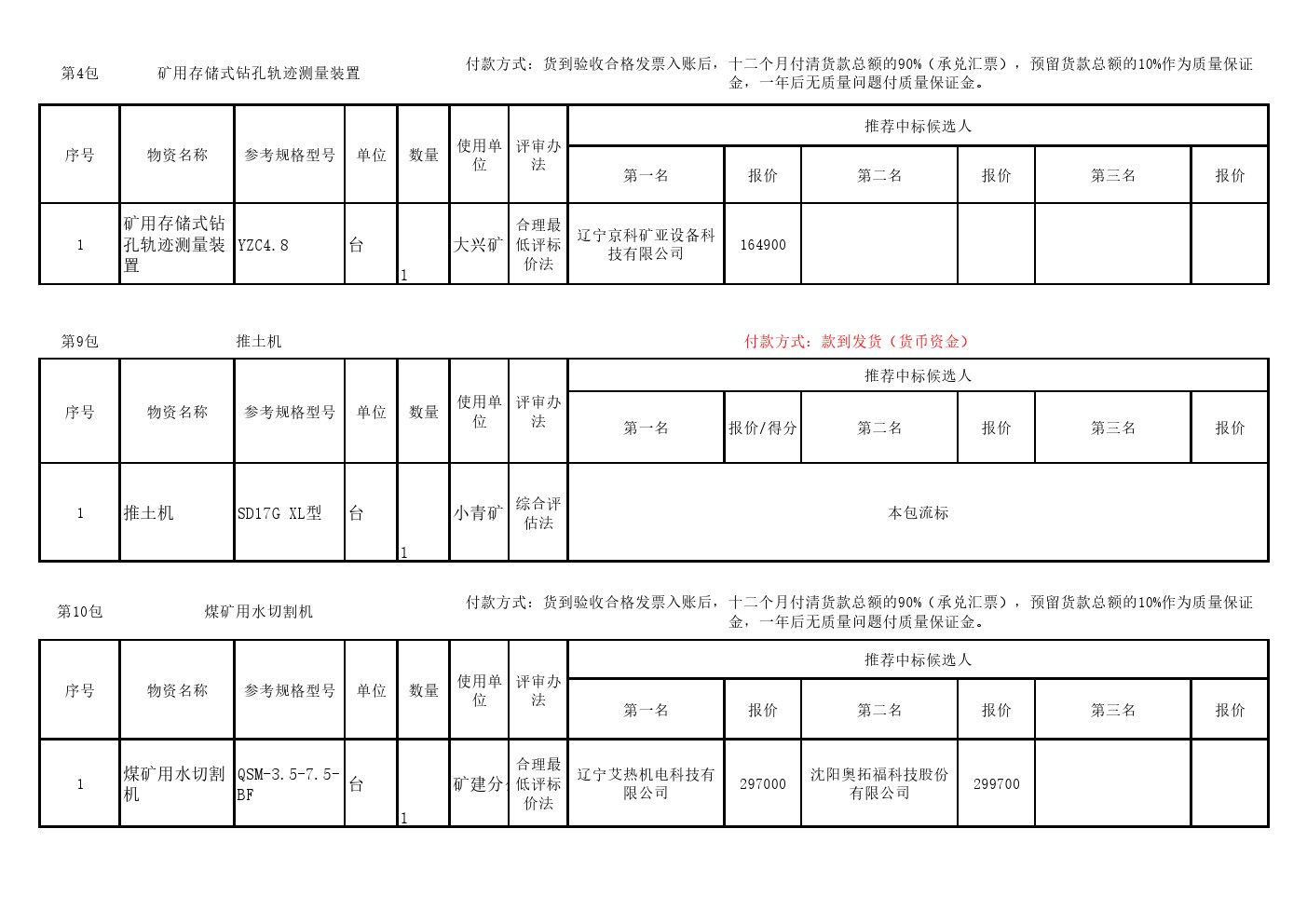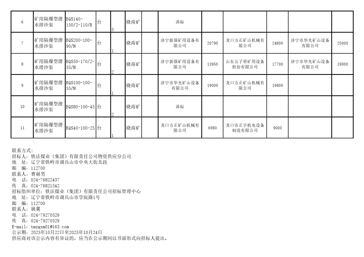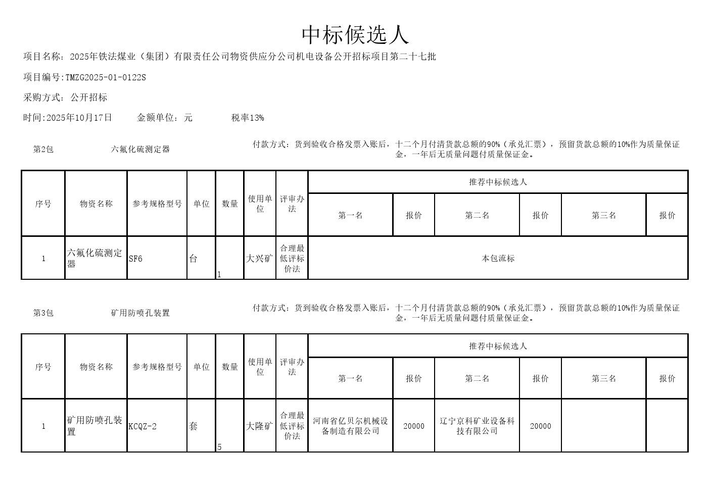 2025年10月17日设备第二十七批公开招标中标候选人公示(0122S)
