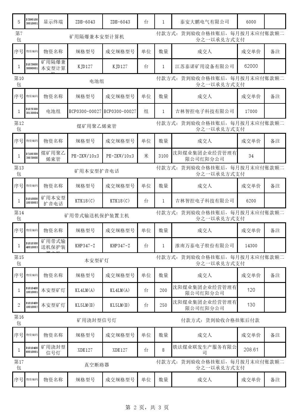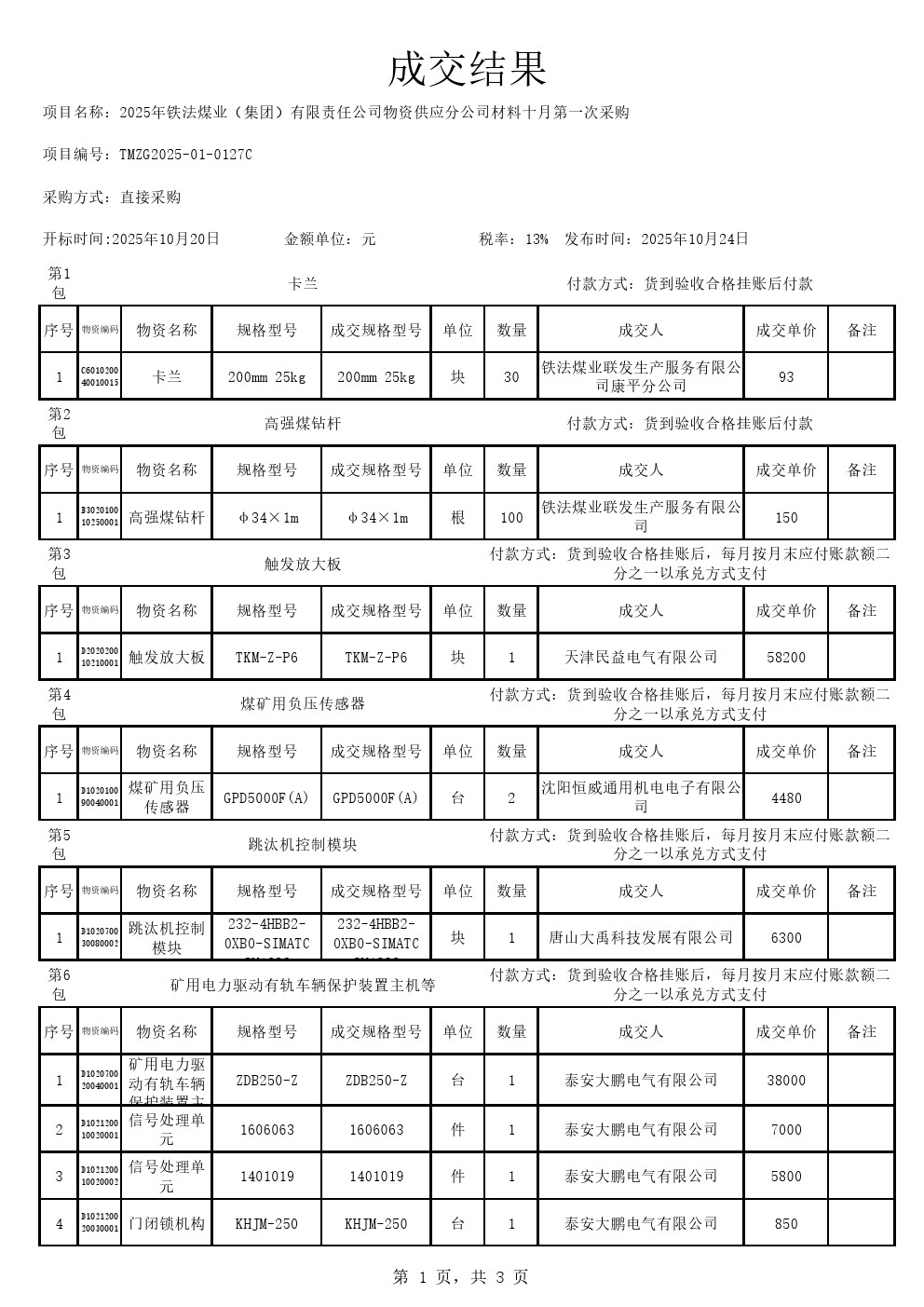 2025年10月20日材料直接采购成交结果公示(0127C)