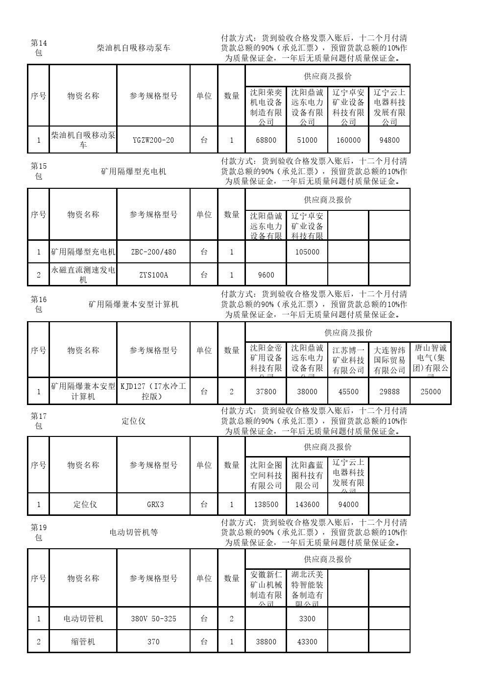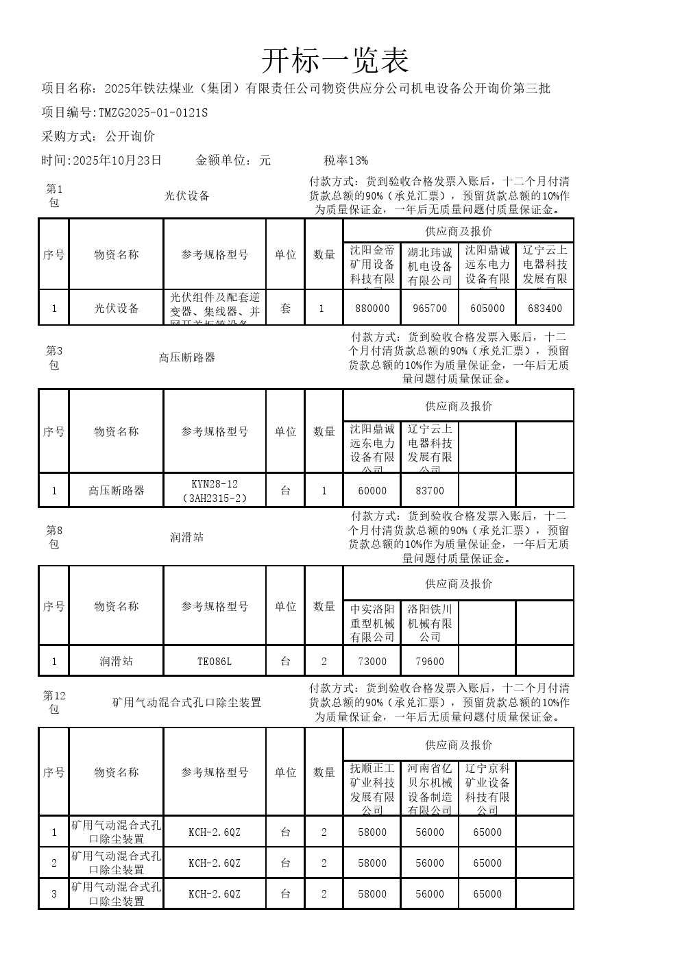 2025年10月23日机电设备公开询价开标一览表(0121S)