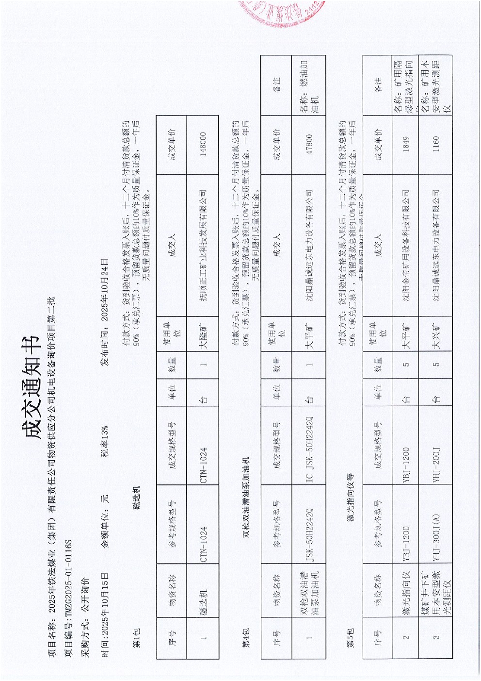 2025年10月15日设备公开询价成交通知书(0116S)1