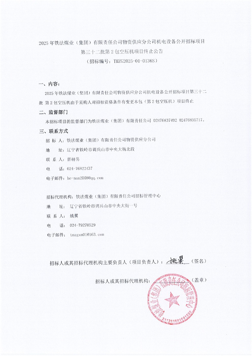 2025年11月5日设备第三十二批公开招标第2包终止公告(0136S)