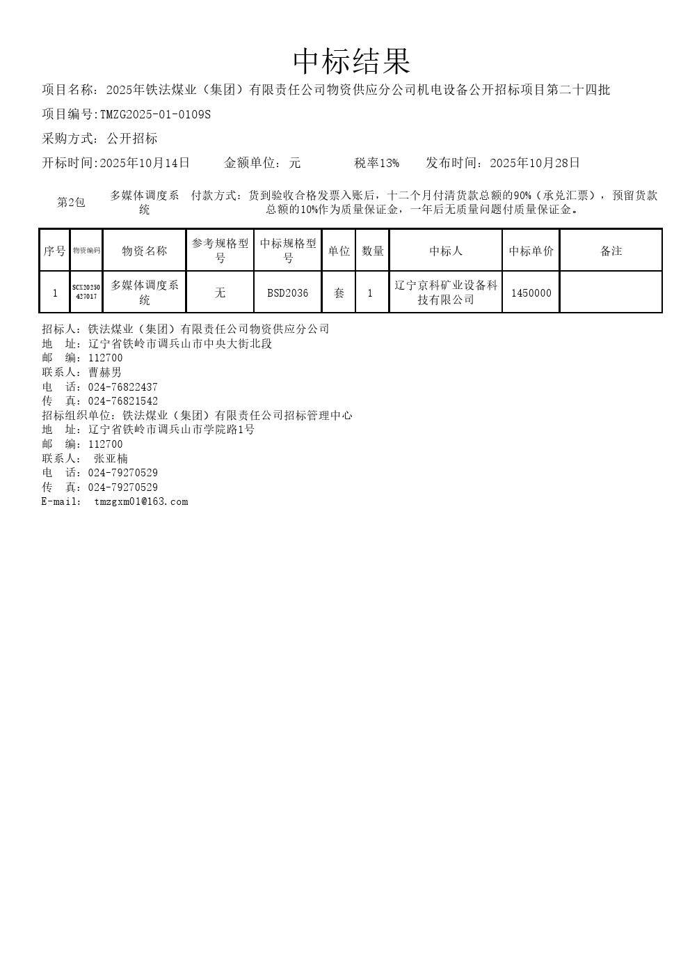 2025年10月14日机电设备公开招标中标结果公示(0109S)-2