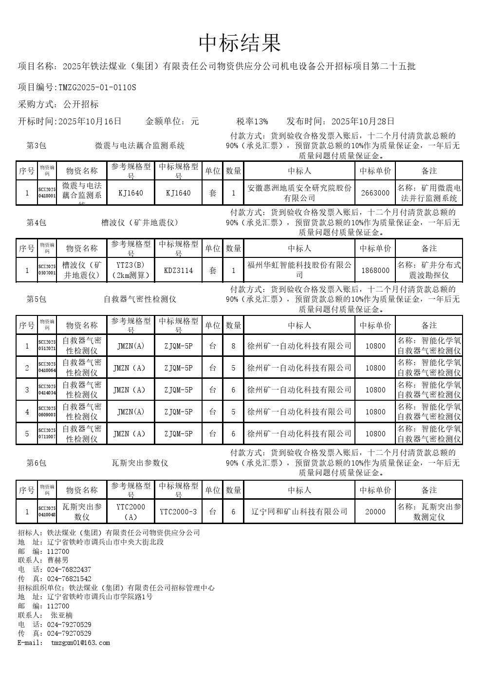 2025年10月16日机电设备公开招标中标结果公示(0110S)-1