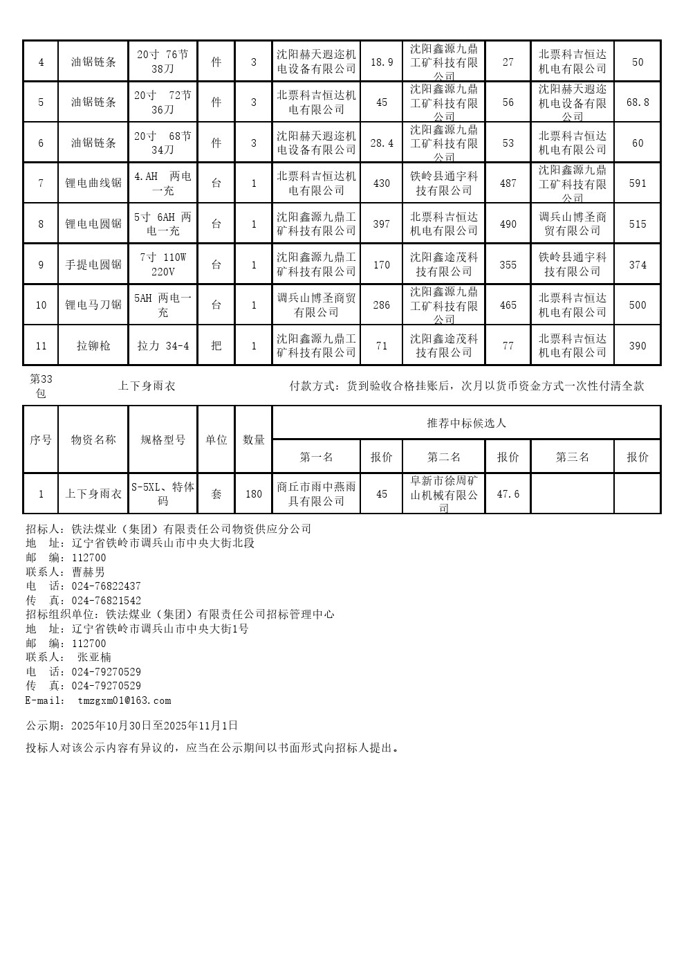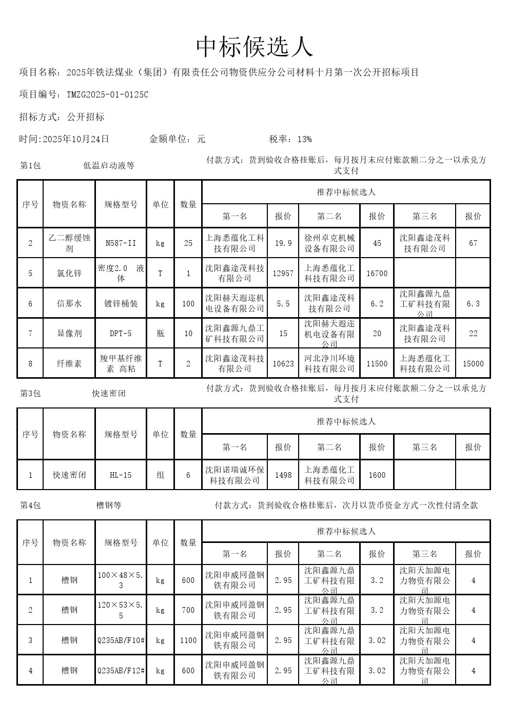 2025年10月24日材料公开招标中标候选人公示(0125C)-2