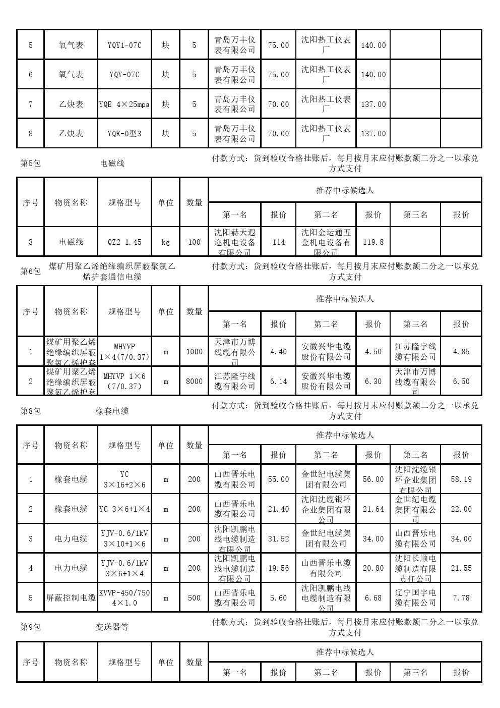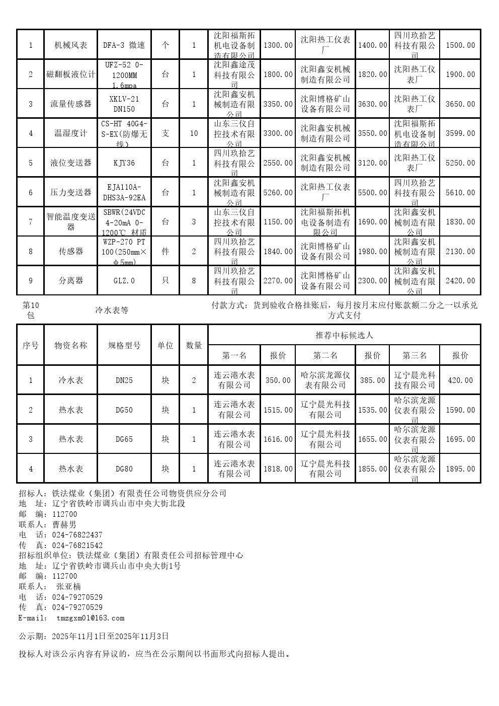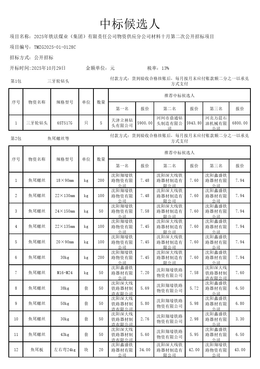 2025年10月29日材料公开招标中标候选人公示(0128C)