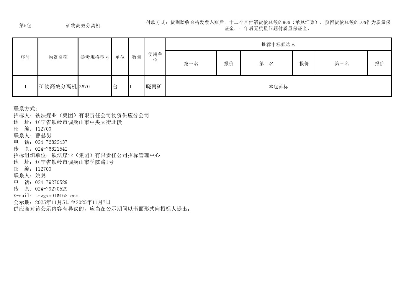 2025年10月28日机电设备公开招标第二十九批中标候选人公示(0126S)